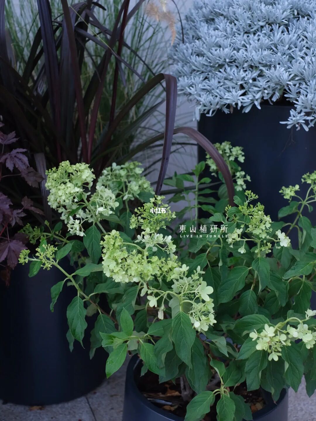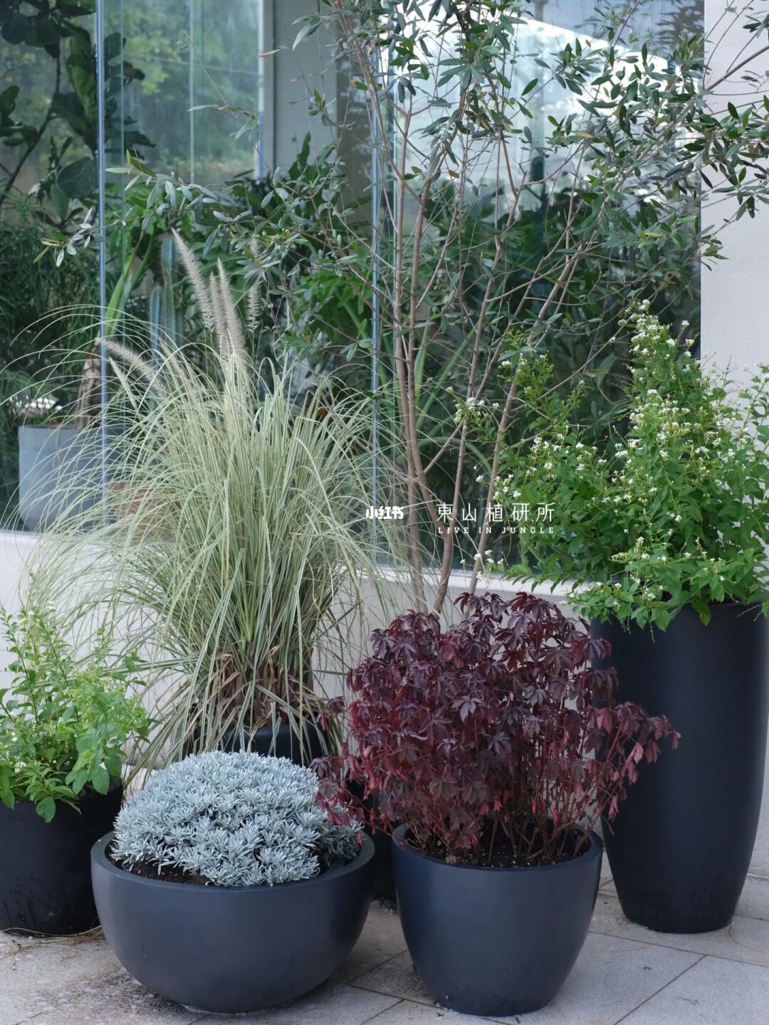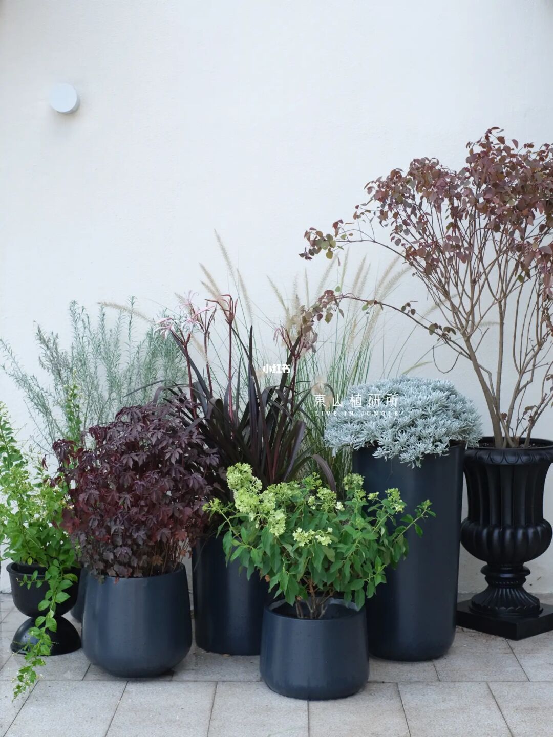 不同盆栽植物之间的对比和互补,无论是色彩、形状、质感还是季节特性,都让这个户外小空间充满了魅力和生气。
