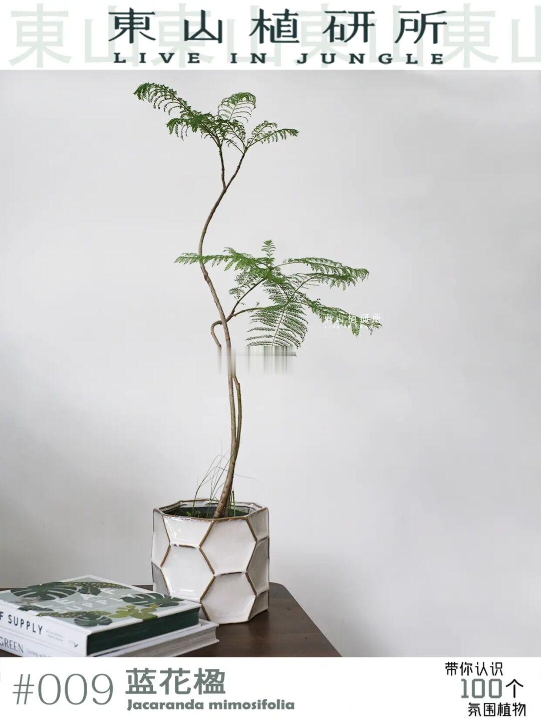 蓝花楹因开花时极致绚烂,宛如蓝色火焰而闻名。它的叶也很有观赏价值:叶细如羽,朦胧清雅,加上舒展的枝条,看起来仙气飘飘,非常有氛围感。所以即使室内养护不能开花,它也是很受欢迎的氛围感绿植。
