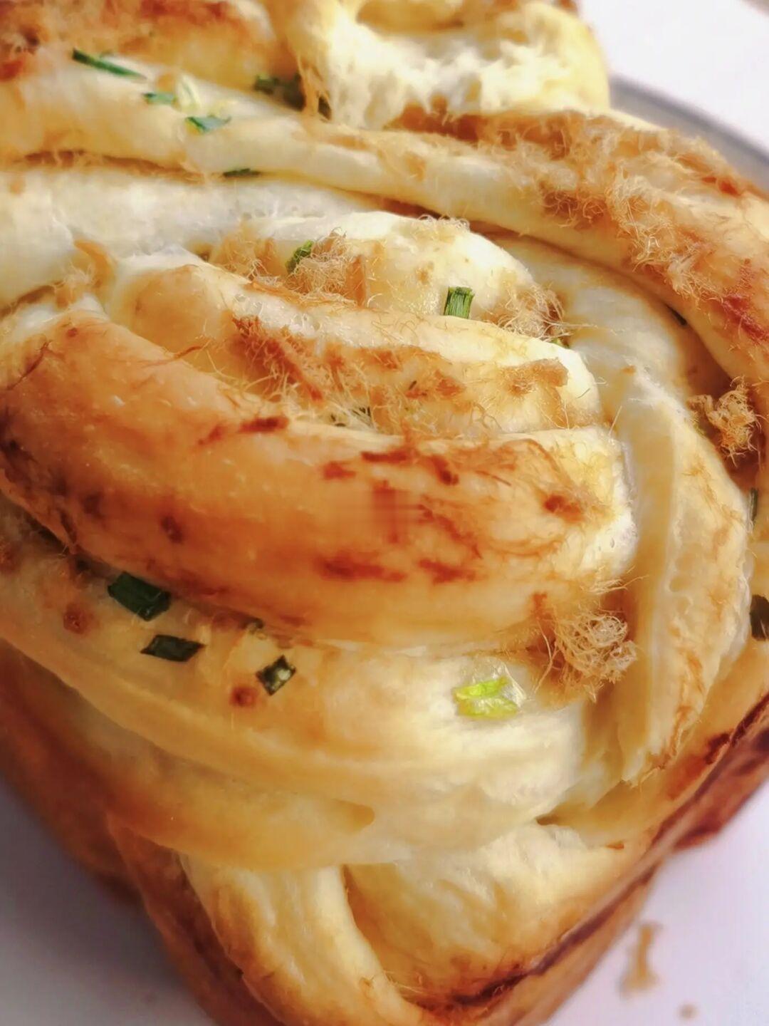 这款经典的香葱肉松吐司,在我的下厨房菜谱里得到了9.1分的高分,众多厨友都喜欢这个,已经跟做3年了。不用冷藏不用水合,只是取出整个型,用面包机做非常方便,揉面时正好准备好肉松馅,非常高效,在烘烤的时候,整个房间散发着肉松的香气,小心慎做,因为会上瘾的。