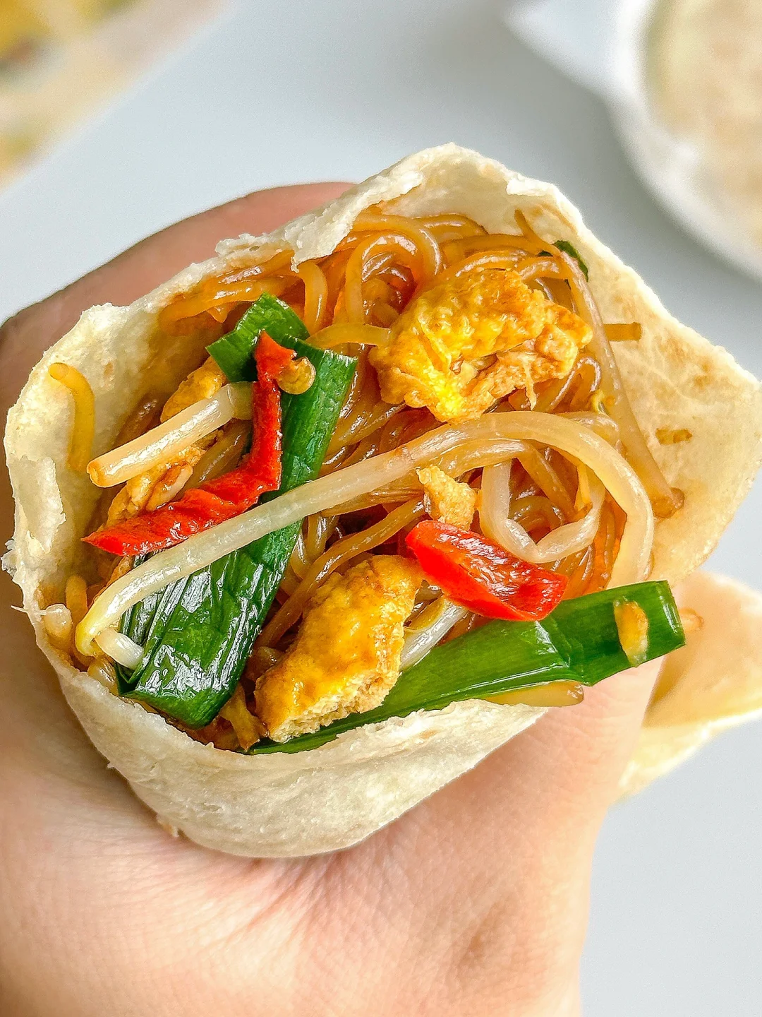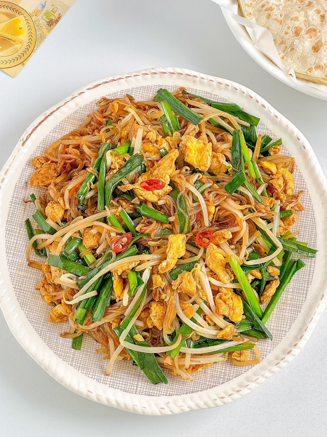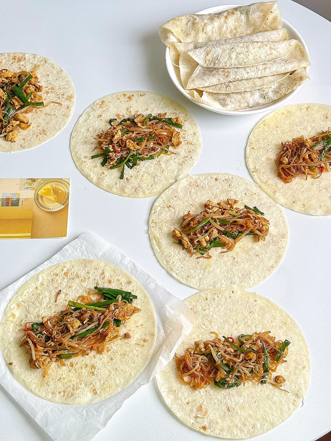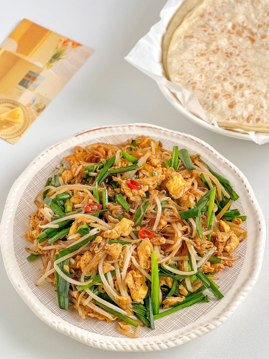 从小吃到大的炒合菜!不管是配饭还是卷饼都巨好吃!卷起来一口一口吃得好满足~😋 ㅤ 🌟准备食材🌟 绿豆芽 韭菜 粉丝1捆 鸡蛋2颗 大蒜 小米椒 春饼皮 🌟做法🌟 1️⃣春饼皮蒸3分钟备用 2️⃣粉丝开水泡软捞出过凉水,锅中加油炒熟鸡蛋盛出 3️⃣锅中下蒜、小米椒炒香,放入豆芽炒软,放入粉丝,➕2勺生抽➕1勺老抽➕少于盐味精翻炒均匀,加入韭菜和鸡蛋炒匀即可出锅 ㅤ 炒好的菜拿来卷饼就可以开吃啦!!春饼皮不仅可以包合菜,还可以包土豆丝、京酱肉丝都很好吃哦~🥰