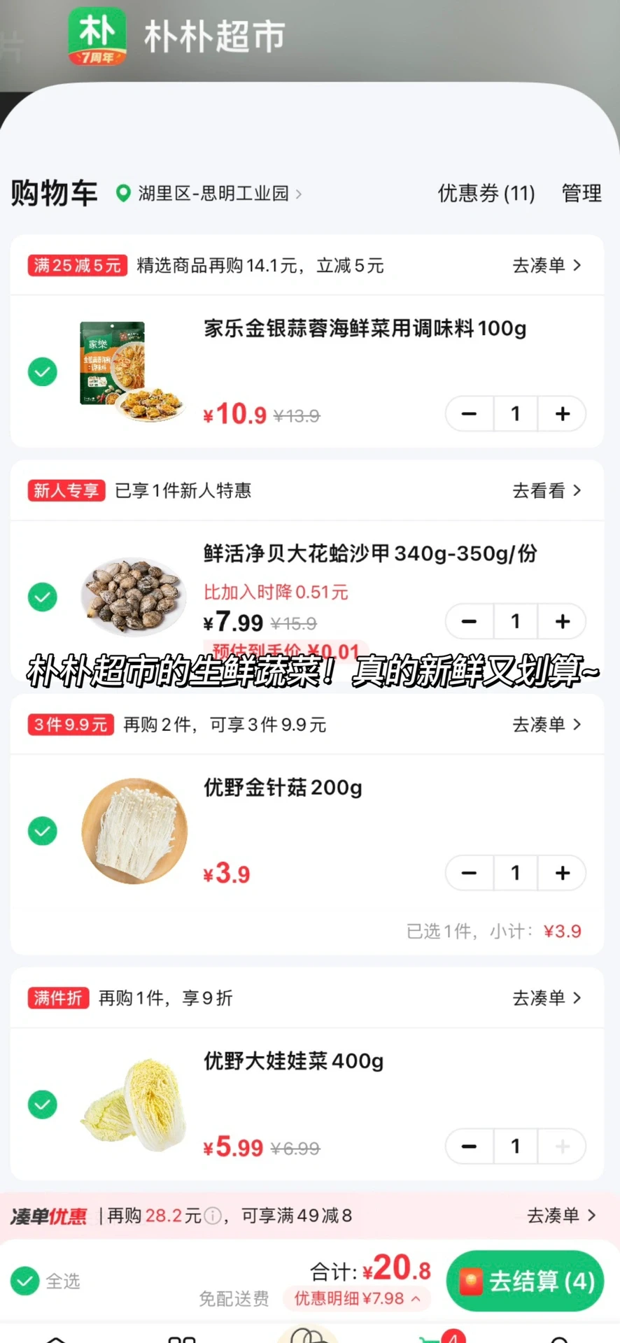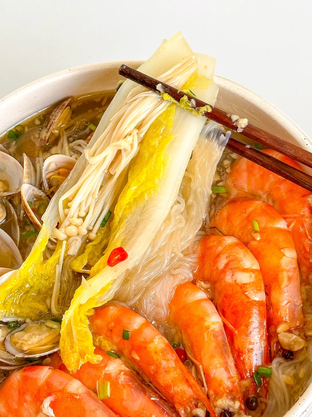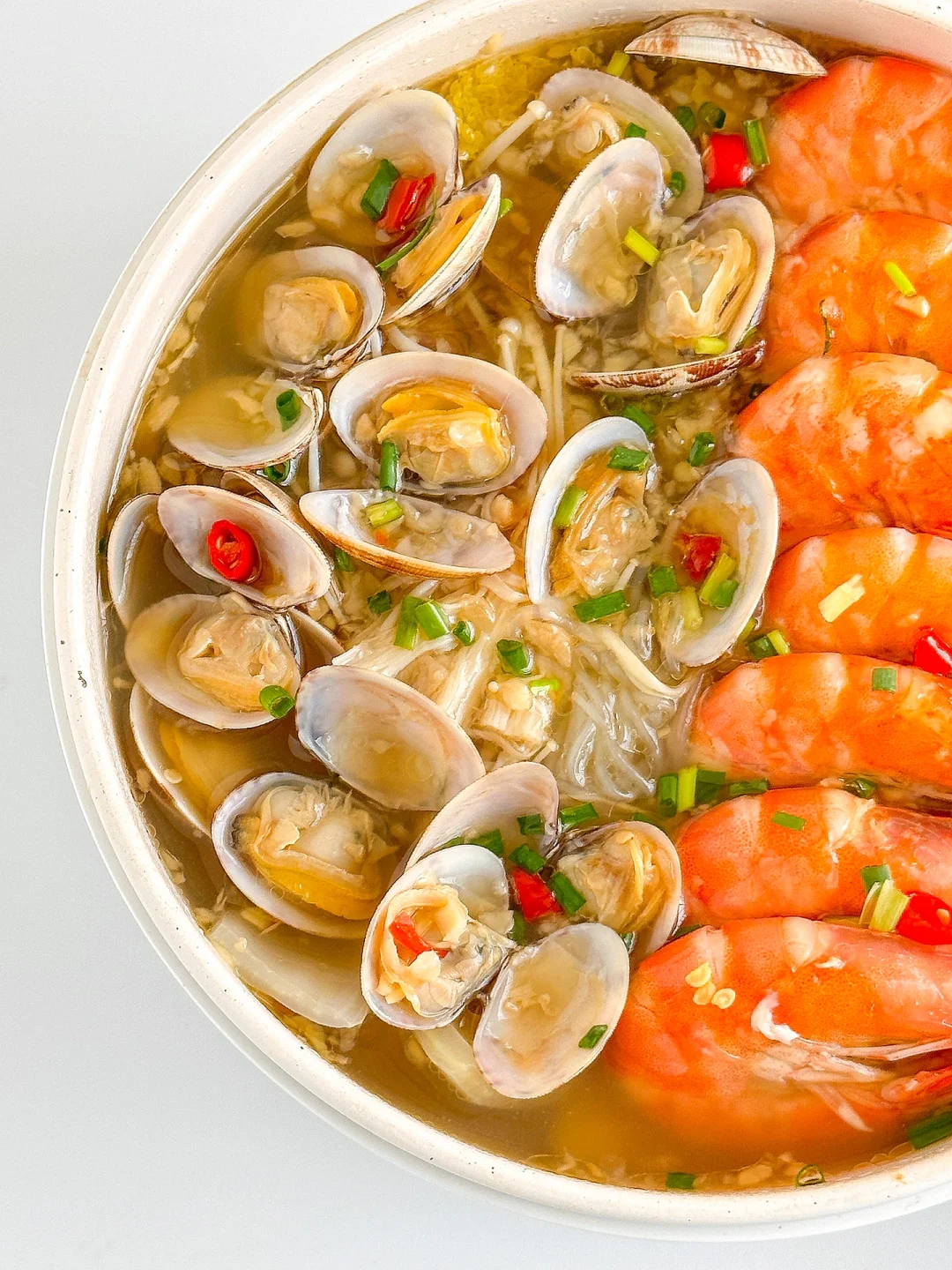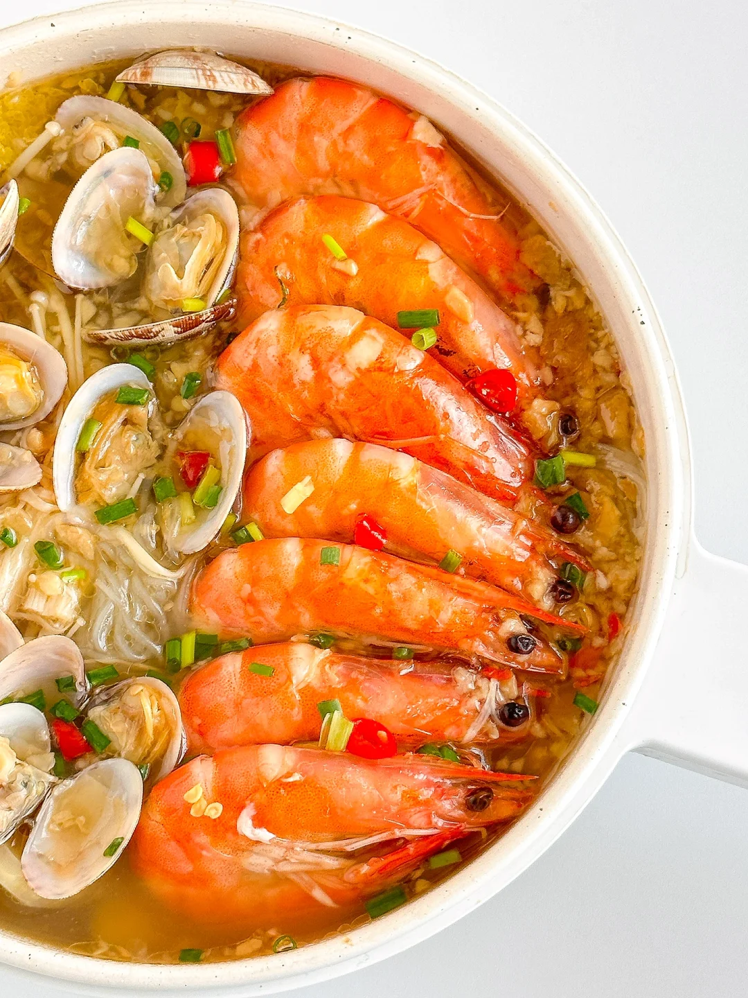 越吃越上瘾的蒜蓉花甲粉丝煲!香辣过瘾,一口一口鲜到掉毛!完爆夜市摊!做法简单又快手~厨房小白也可以轻松驾驭哦😋😋😋 ㅤ 🌟准备食材🌟 花蛤半斤 虾 娃娃菜 金针菇 家乐金银蒜蓉粉丝海鲜调味料 小米椒 葱 🌟做法🌟 1️⃣花甲加油和盐浸泡2小时让它吐沙,虾去虾线,粉丝加温水泡软,娃娃菜、金针菇清洗干净 2️⃣锅中依次铺上娃娃菜、金针菇、粉丝、花甲和虾,将蒜蓉调味料包均匀的淋在食材上,加水没过粉丝,大火焖煮8分钟左右 3️⃣淋上鲜汁调味料,撒上葱花小米椒即可 ㅤ 简单又好吃的蒜蓉花甲粉丝煲就完成啦!有条件的也可以用砂锅哦~朴朴超市App的海鲜也好新鲜!!😋 ㅤ 家乐私厨酱调味料真的好方便,也是朴朴超市App就有,不用自己剥蒜捣蒜炒蒜蓉,一包搞定!方便又省事,做出来的味道比店里的都好吃👏👏👏 ㅤ