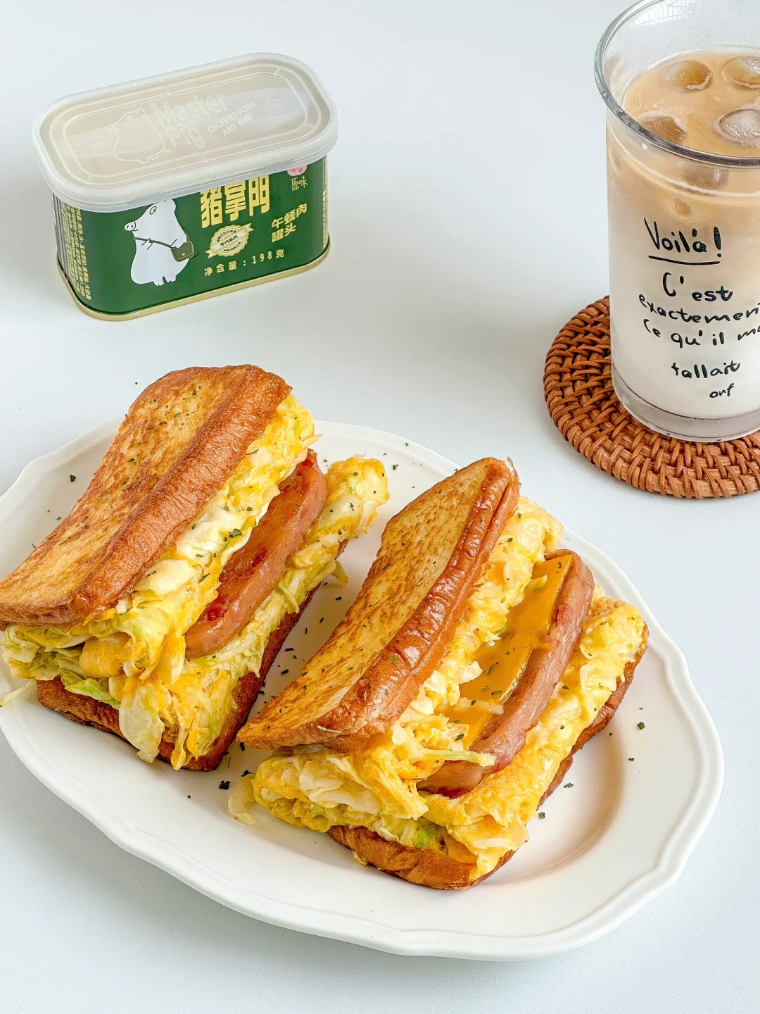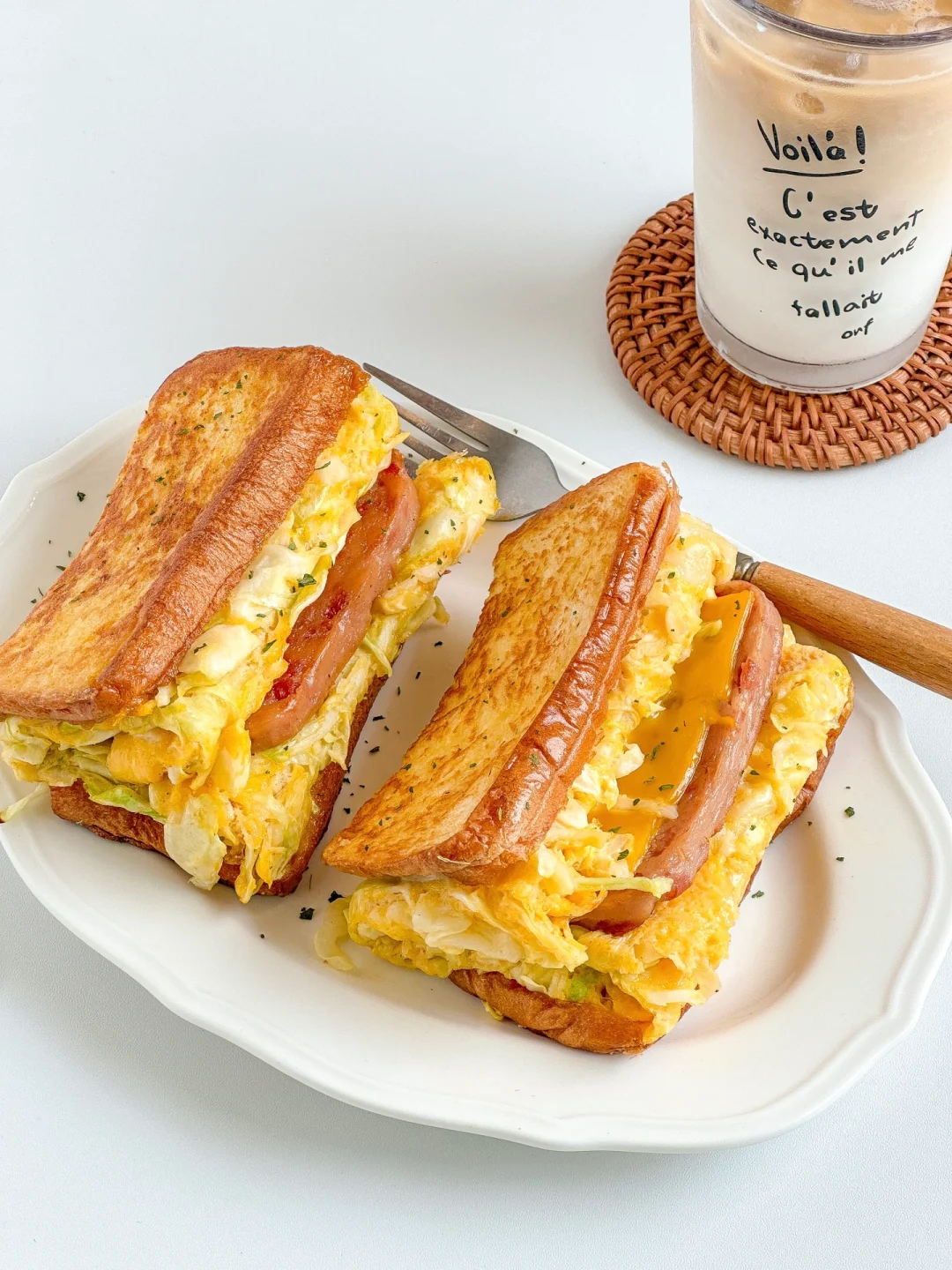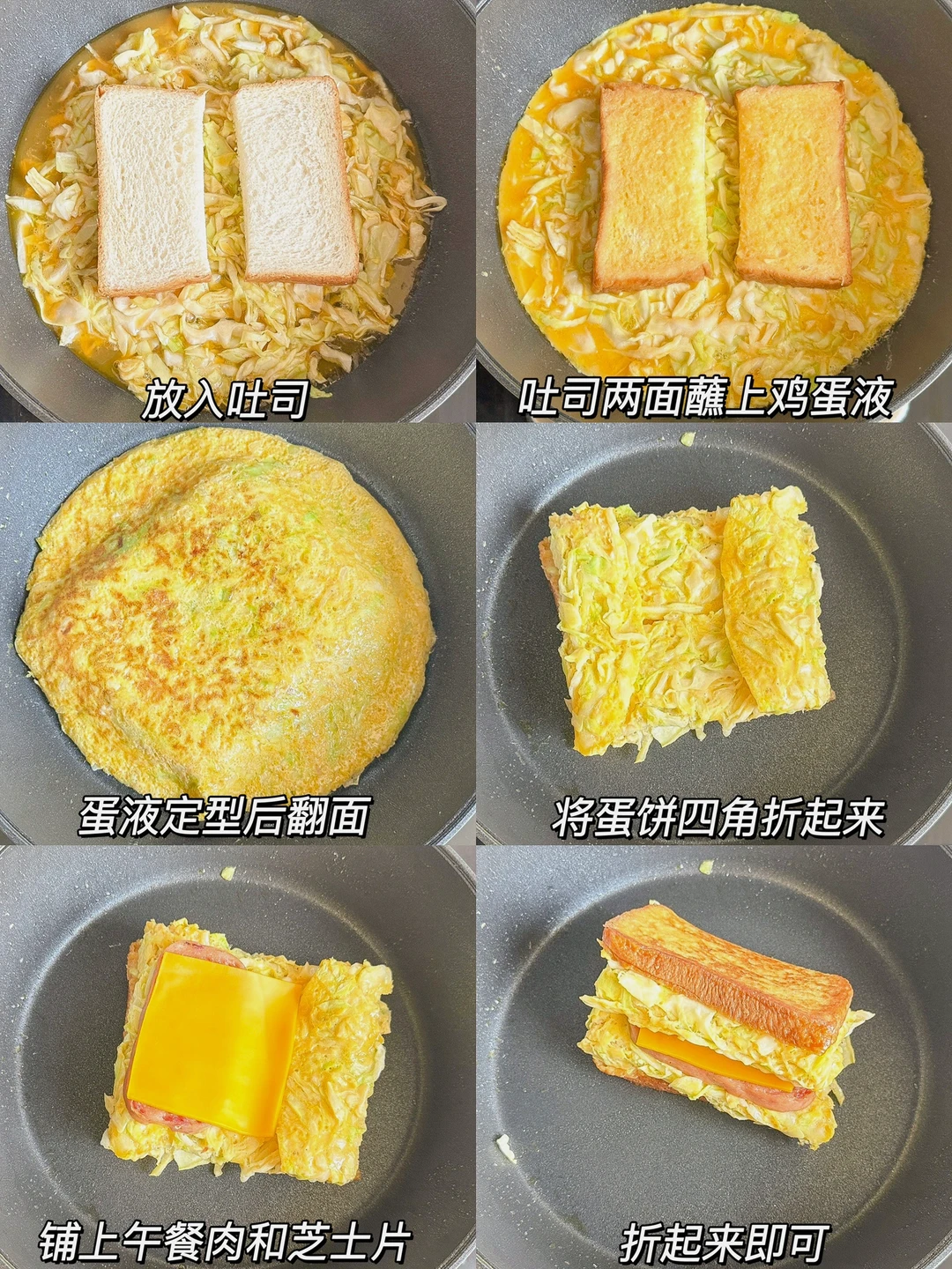 巨好吃的元气早餐三明治!!包菜➕蛋➕三明治这组合真的绝了~口感丰富!早餐来一份,营养又美味😋