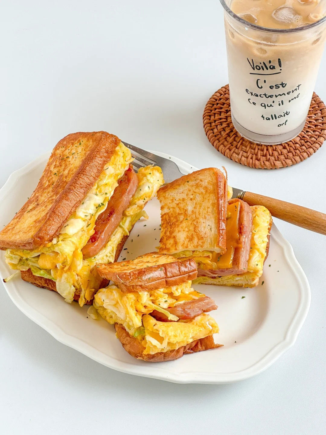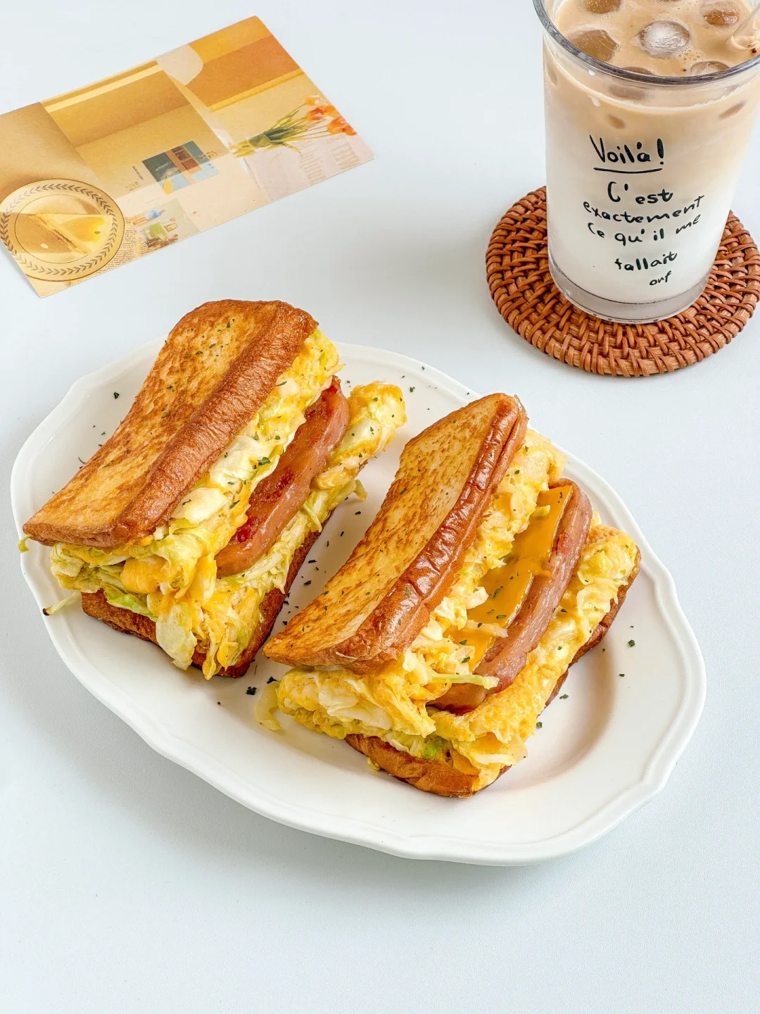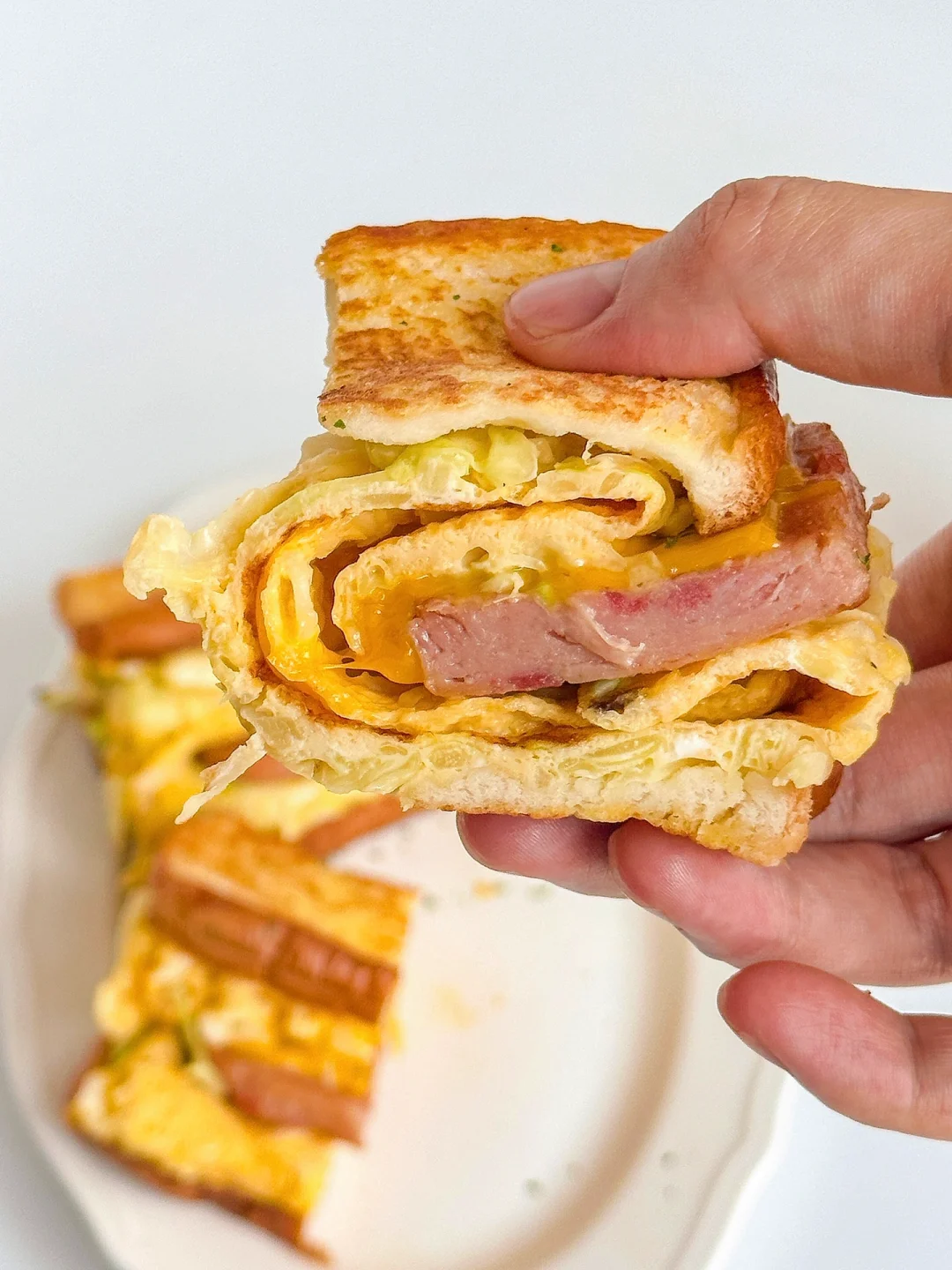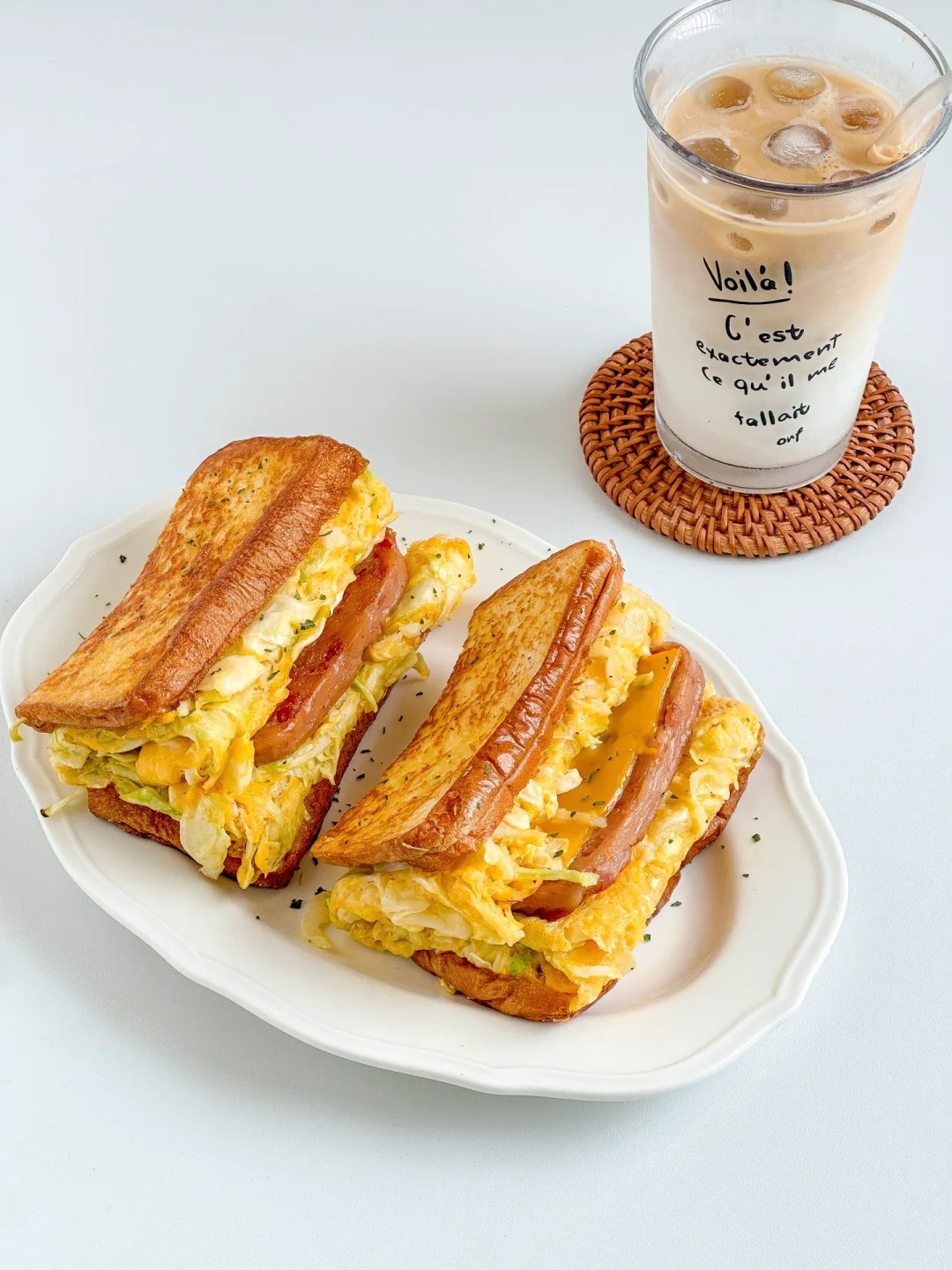 巨好吃的元气早餐三明治!!包菜➕蛋➕三明治这组合真的绝了~口感丰富!早餐来一份,营养又美味😋