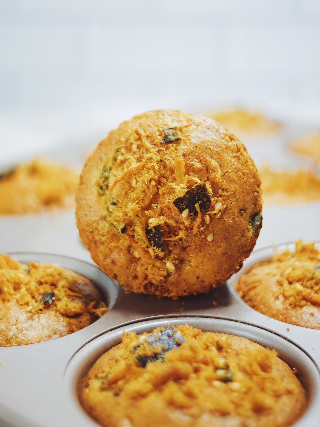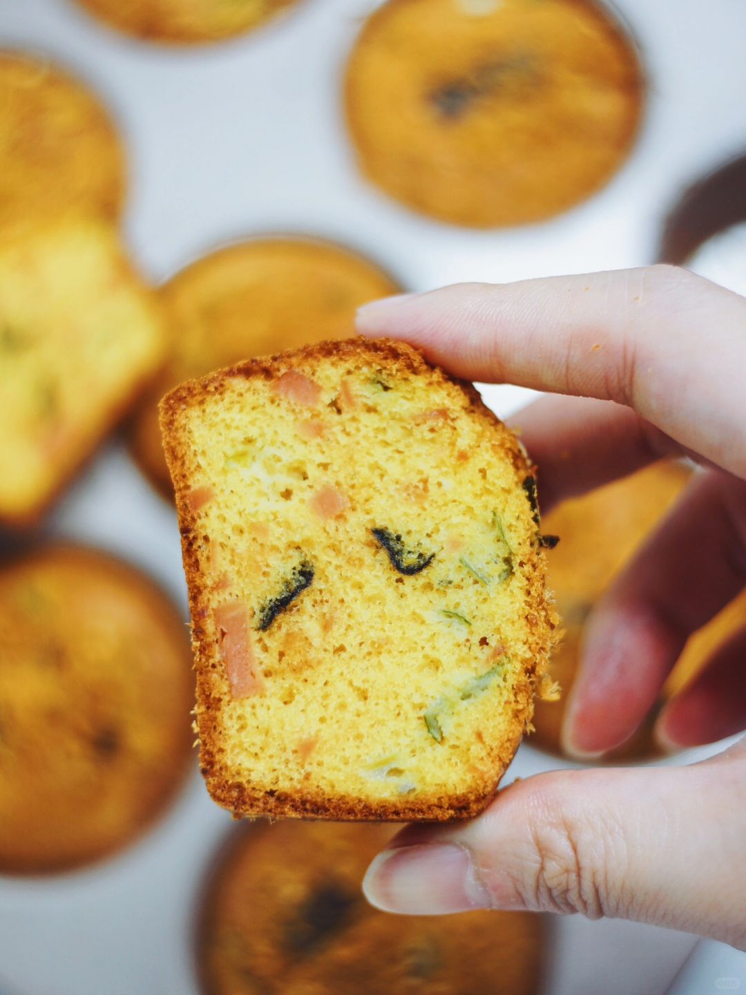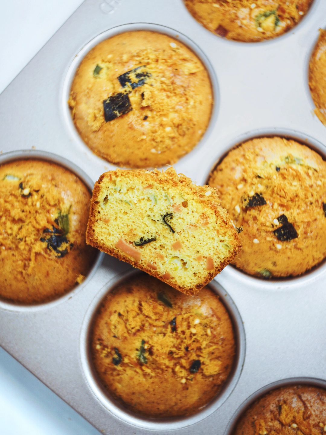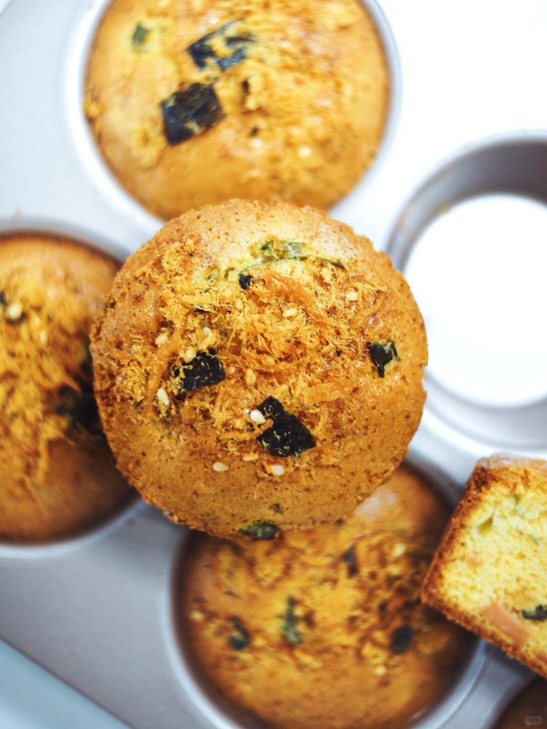 排队才能🛒肉松蛋糕,在家做起来灰常简单,不用打发蛋白,还可以加入自己爱吃的火腿肠和香葱。我愿意称它为咸口蛋糕的天花板[偷笑R]