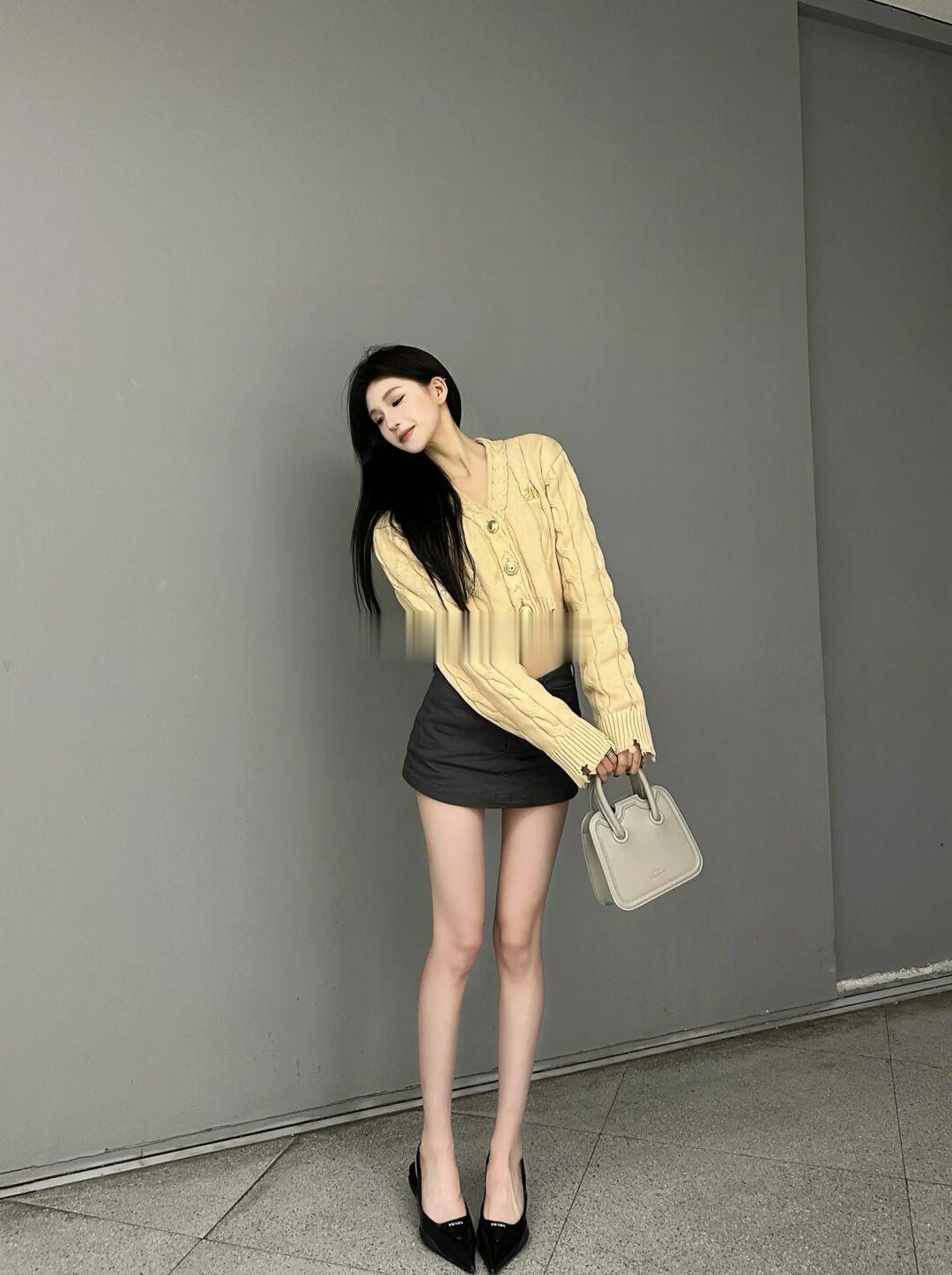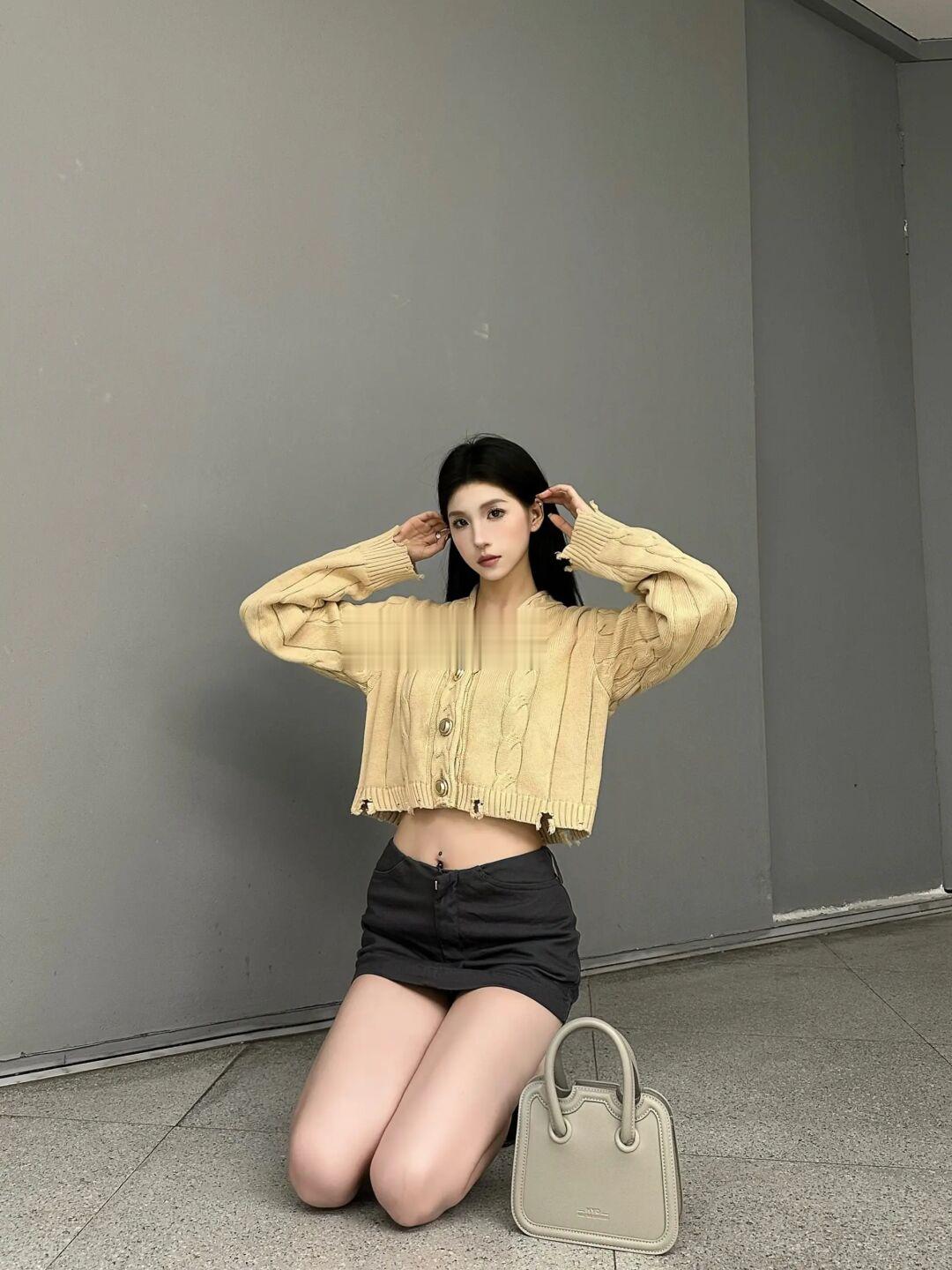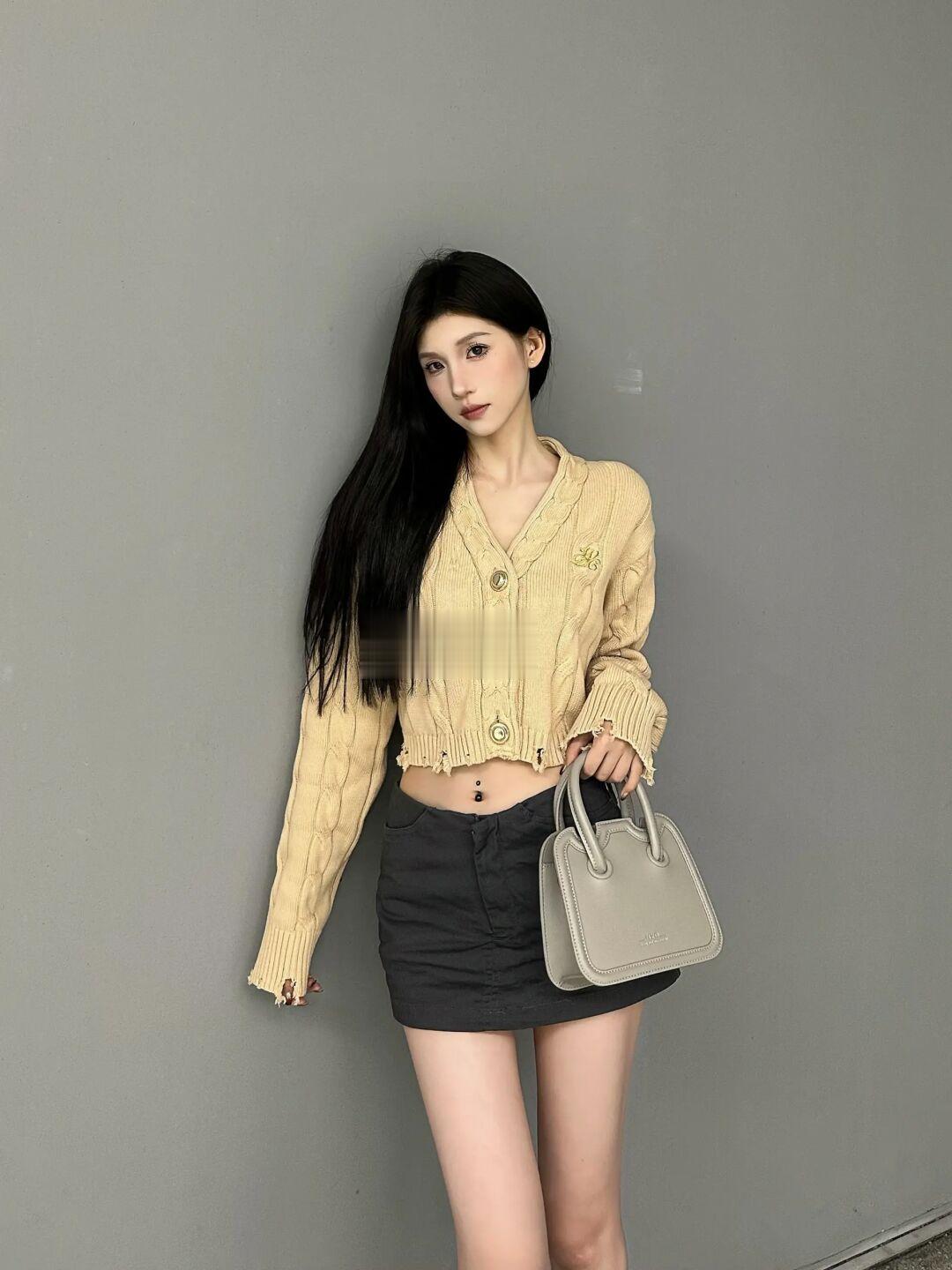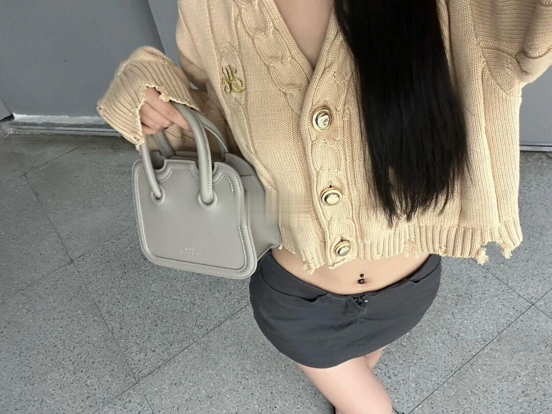 做旧感麻花开衫毛衣搭配烟灰色小方包 真的好看