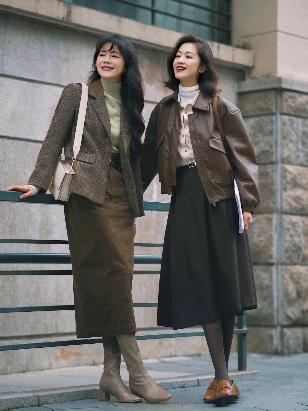 秋冬穿衣没头绪?基础款式、个性搭配,照搬照穿就对了! 这对姐妹花喜欢用基础款的服装尝试个性搭配,让简单的服装也能展现出不一样的时尚。她们擅长利用基础款搭配出更加时髦的造型,同时也提升了服装的利用率。例如,她们用小香风外套搭配缎面半身裙,或用皮衣外套搭配高腰牛仔裤等。喜欢复古风度穿搭的人可以选择复古风的皮衣外套或格纹西服,搭配高腰半身裙或高腰西裤。