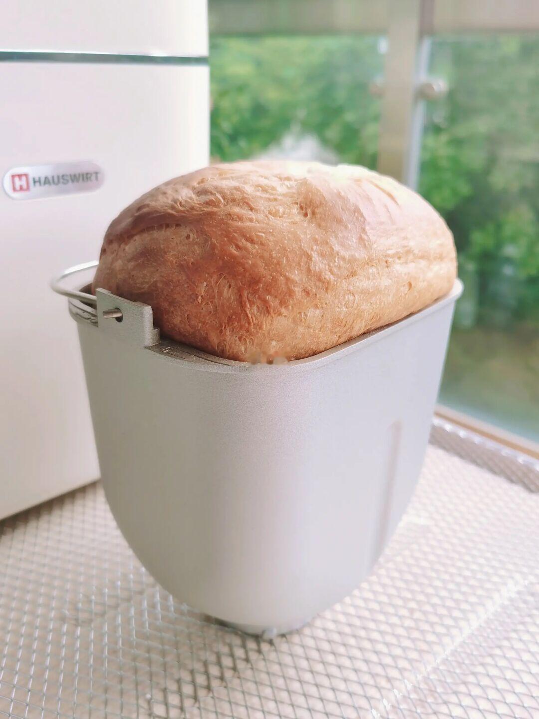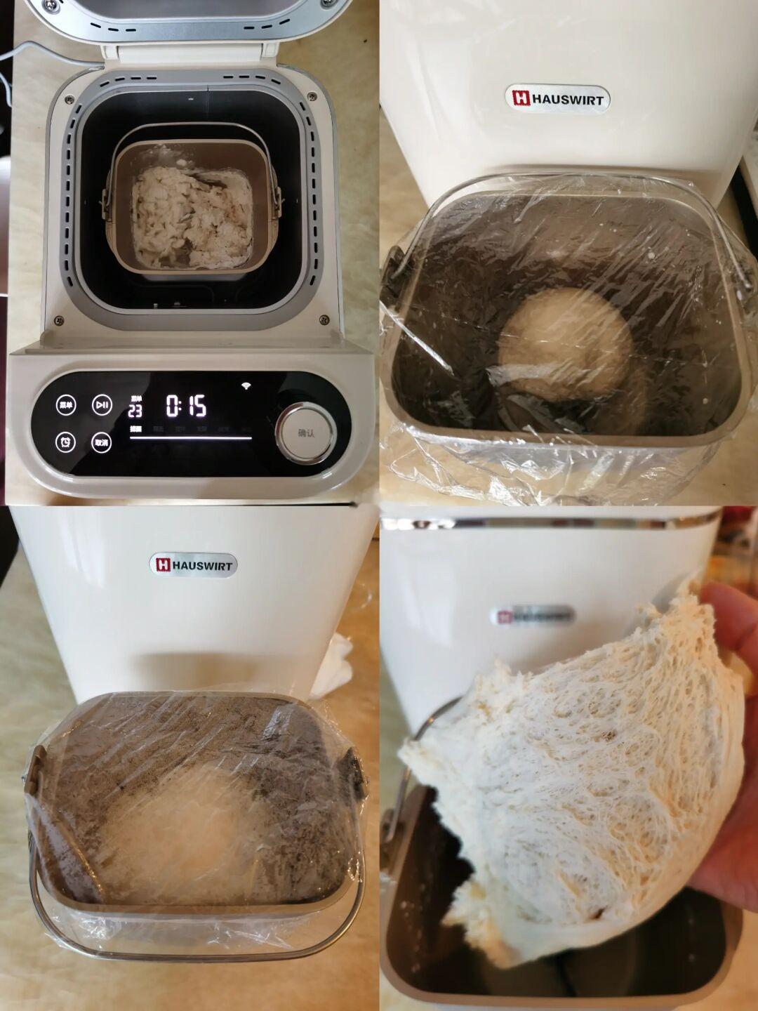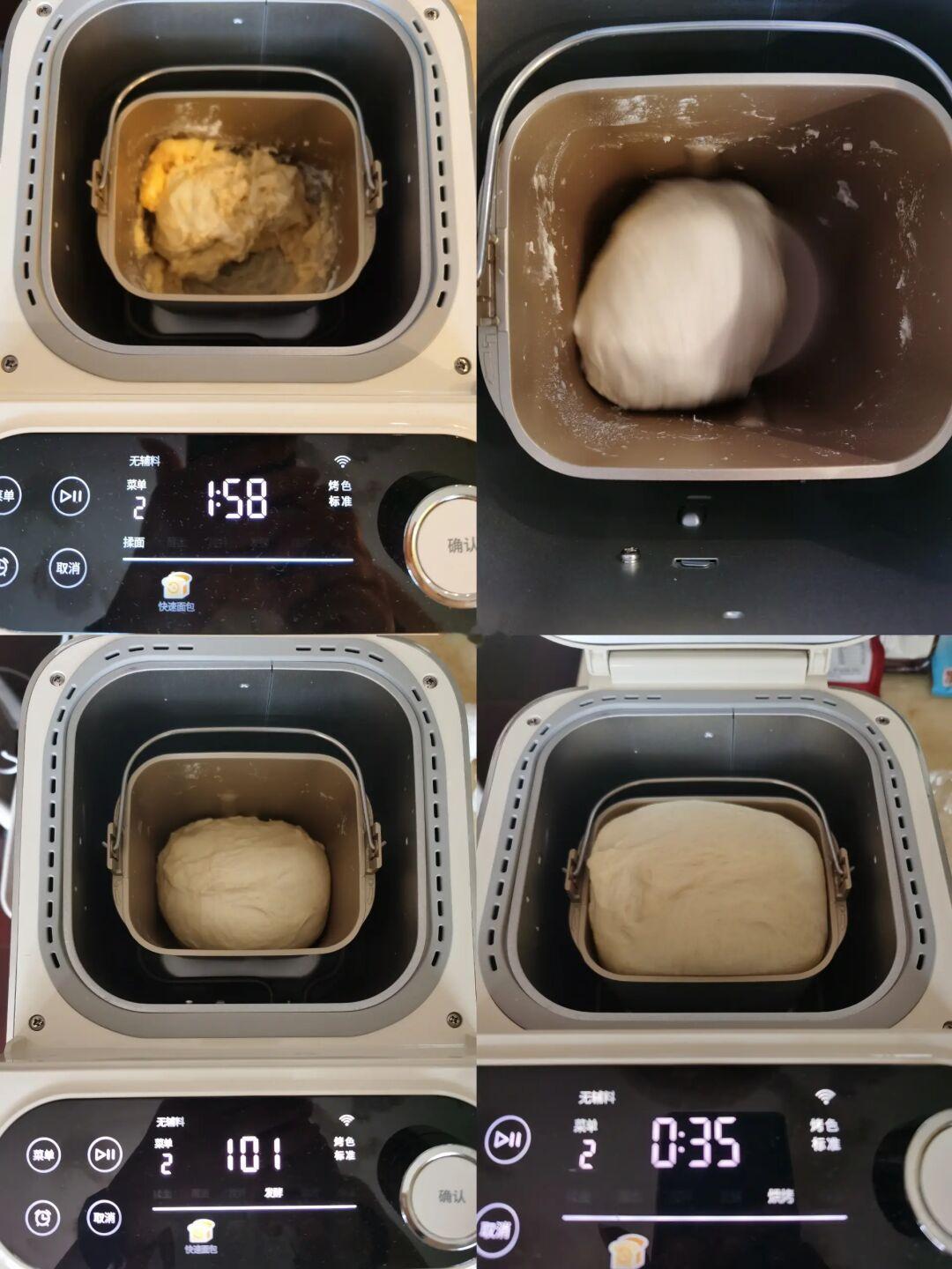 2. 用了中种面团后,一定选用“快速面包”菜单,我的海氏面包机的快速面包的时间为2小时,这就是用中种的好处之一,大大减少面包机操控时间。