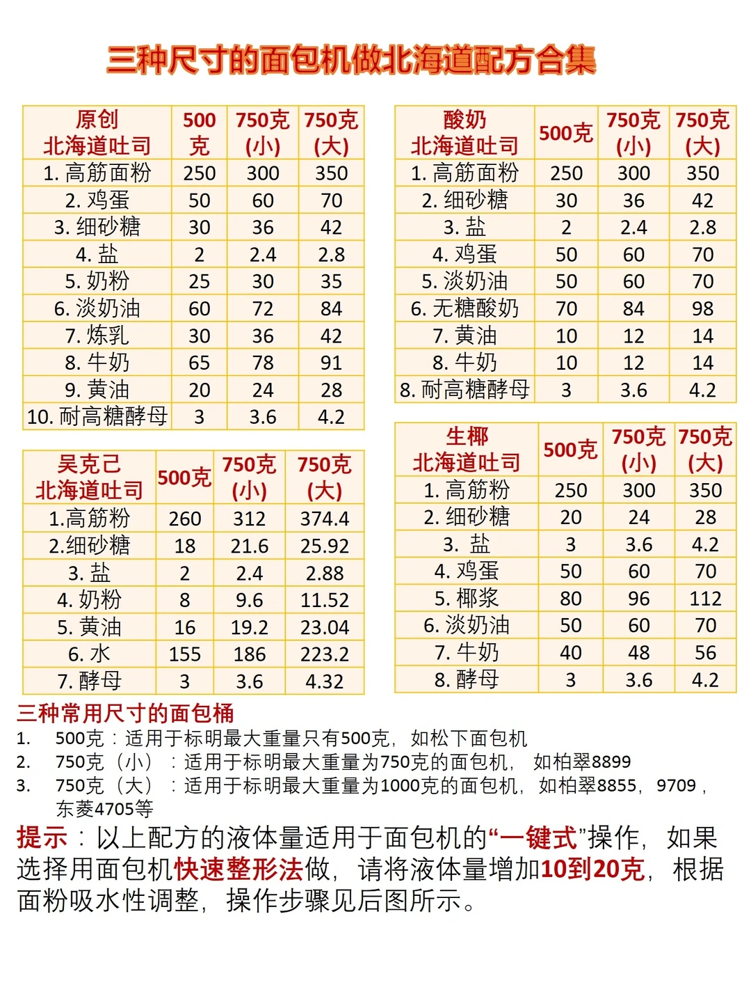 面包机做北海道吐司合集,适用各种面包机