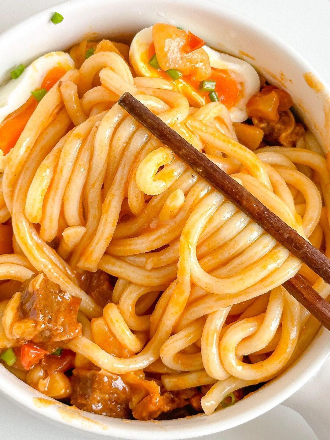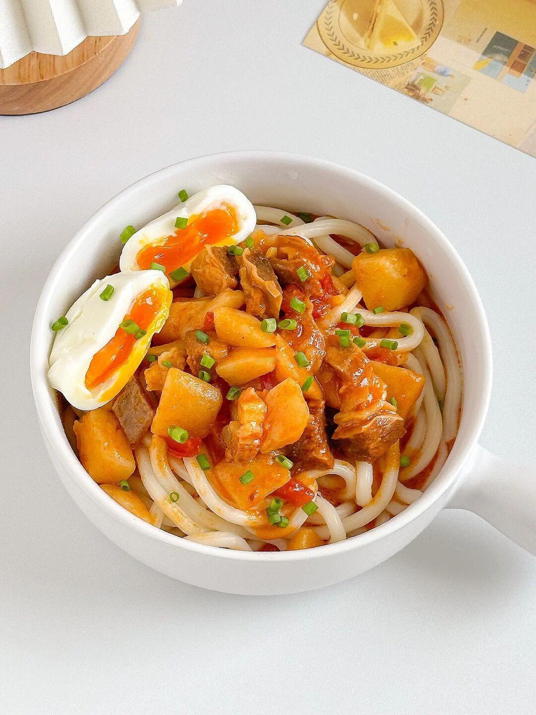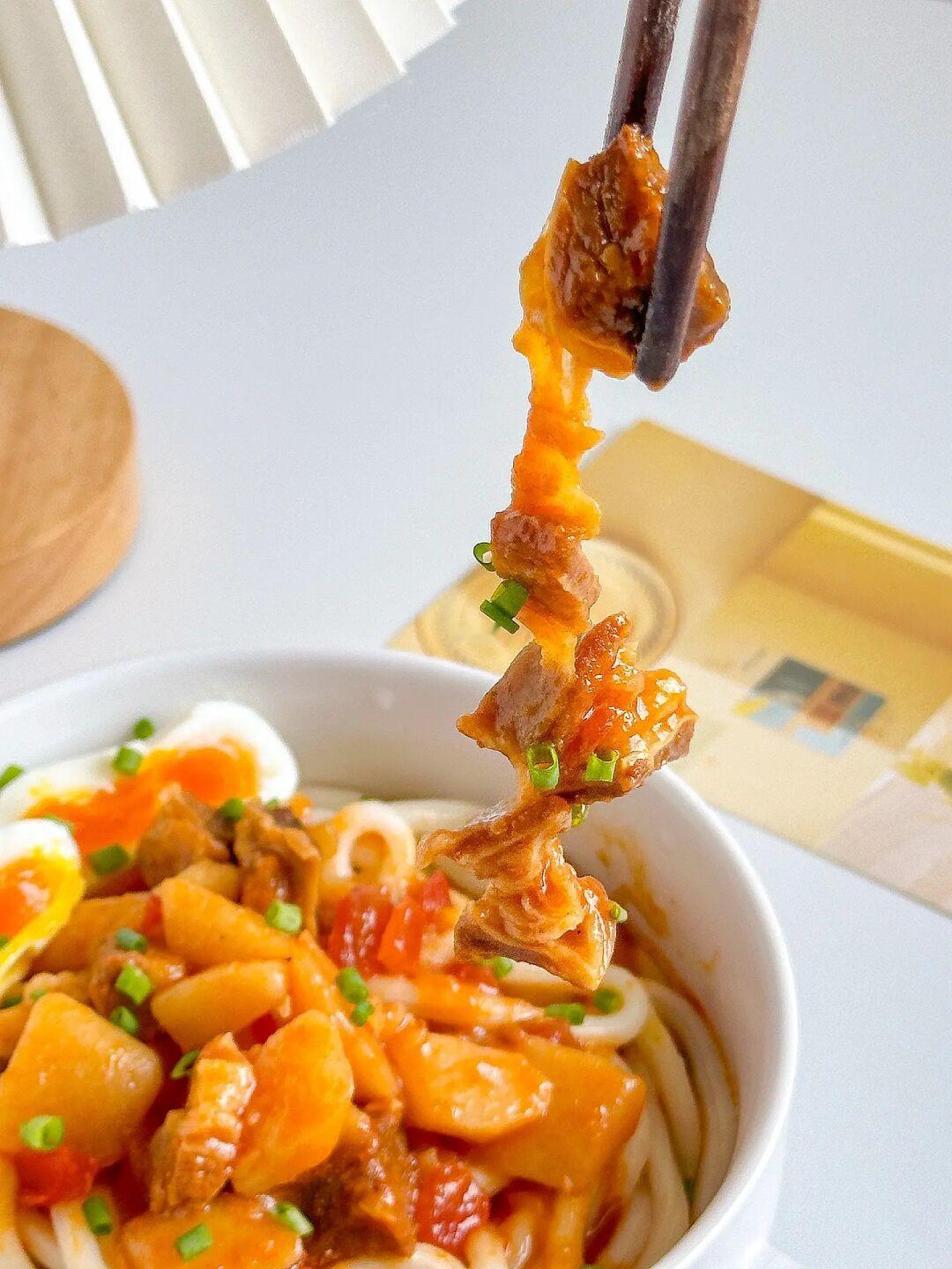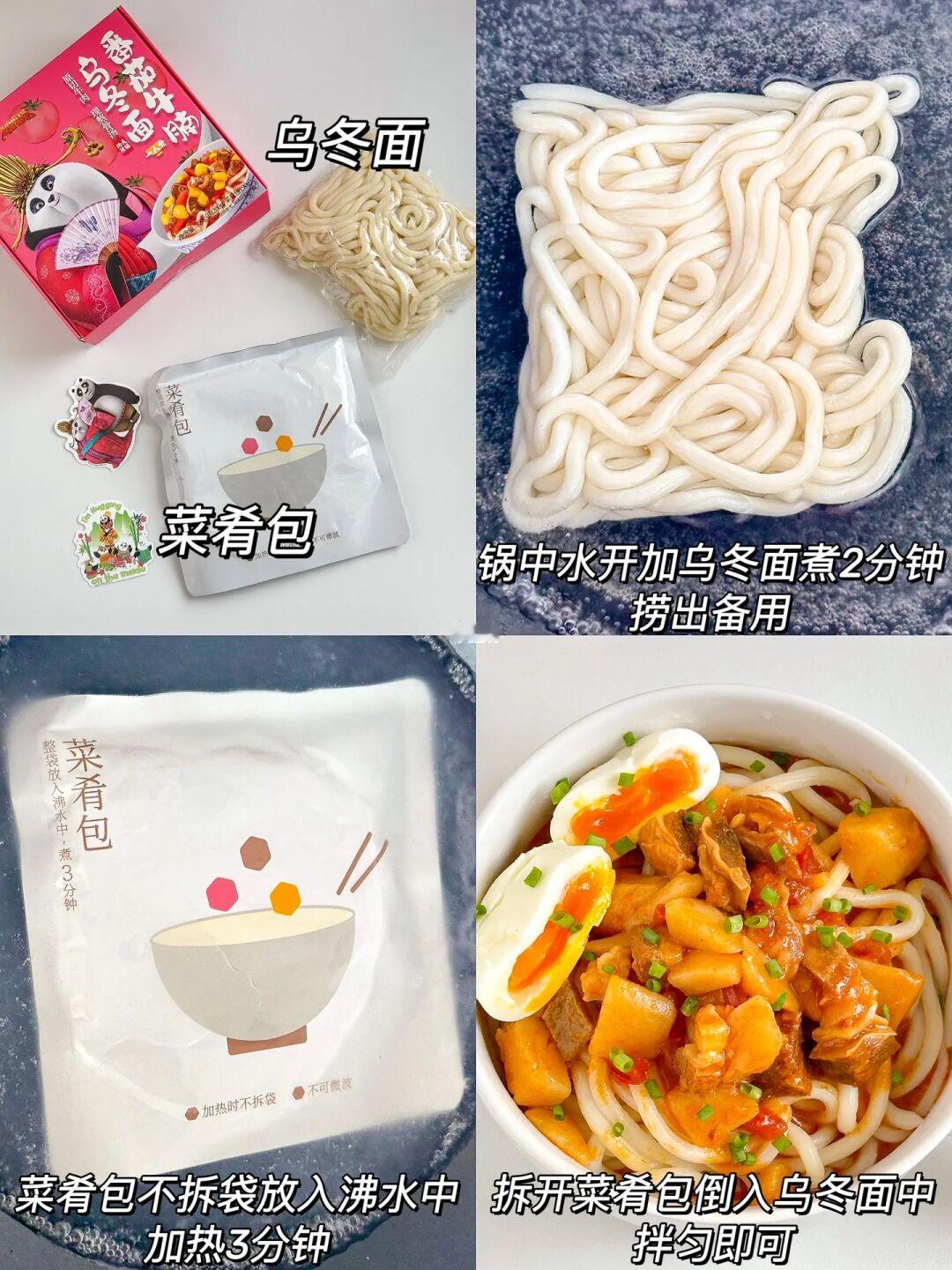 酸爽开胃的乌冬面大家一定要试试!!减脂期也可以吃~做法简单快手几分钟搞定😋 ㅤ 🌟做法🌟 1️⃣锅中水开加乌冬面煮2分钟捞出备用 2️⃣菜肴包不拆袋放入沸水中加热3分钟 3️⃣拆开菜肴包倒入乌冬面中,拌匀即可 ㅤ 我还加了个溏心蛋,陈克明的这两个口味都不错,酸笋肥牛乌冬面和番茄牛腩乌冬面!😋乌冬面筋道口感Q弹爽滑,而且还是低脂的!新西兰的原切牛肉口感也很棒!5分钟搞定一顿泰方便啦😘 ㅤ
