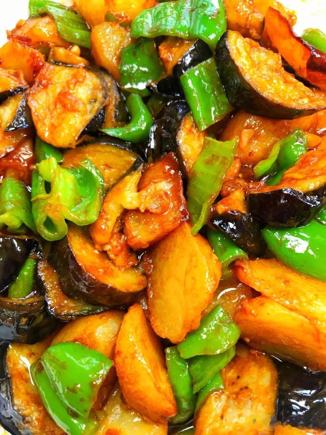 #记录我的2023# #十月美食录# 你是东北地三鲜,我是人间四月天。 地三鲜是用茄子、土豆、辣椒这三种食材制作而成,普通得不能再普通的食材,经过油炸再烧一烧,那色泽和香味就出来了,油亮油亮的颜色,鲜香鲜香的味道,让人吃一次就会爱上!