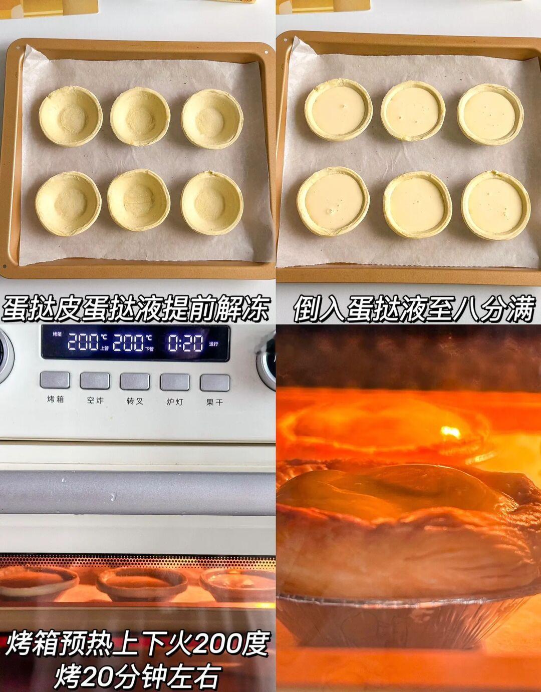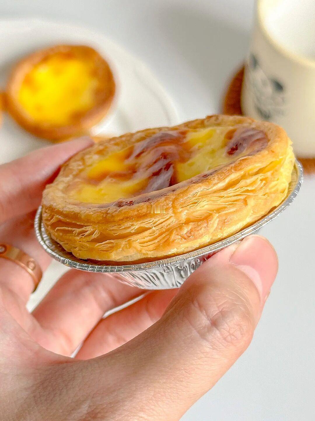 蛋挞爱好者的福音来了!!这个蛋挞真的外酥里嫩巨好吃啊!!不需要自己擀皮!也不用调蛋挞液!只需要三步get巨好吃的葡式蛋挞☺️ ㅤ 🌟做法🌟 1️⃣蛋挞皮蛋挞液液解冻20分钟 2️⃣将蛋挞液倒入蛋挞皮至八分满 2️⃣烤箱预热上下火200度烤20分钟左右即可 ㅤ 做出来的蛋挞奶香浓郁!而且蛋挞皮还是无蔗糖的!0反式脂肪酸的蛋挞液!吃得更安心~快去试试呀👍🏻 ㅤ