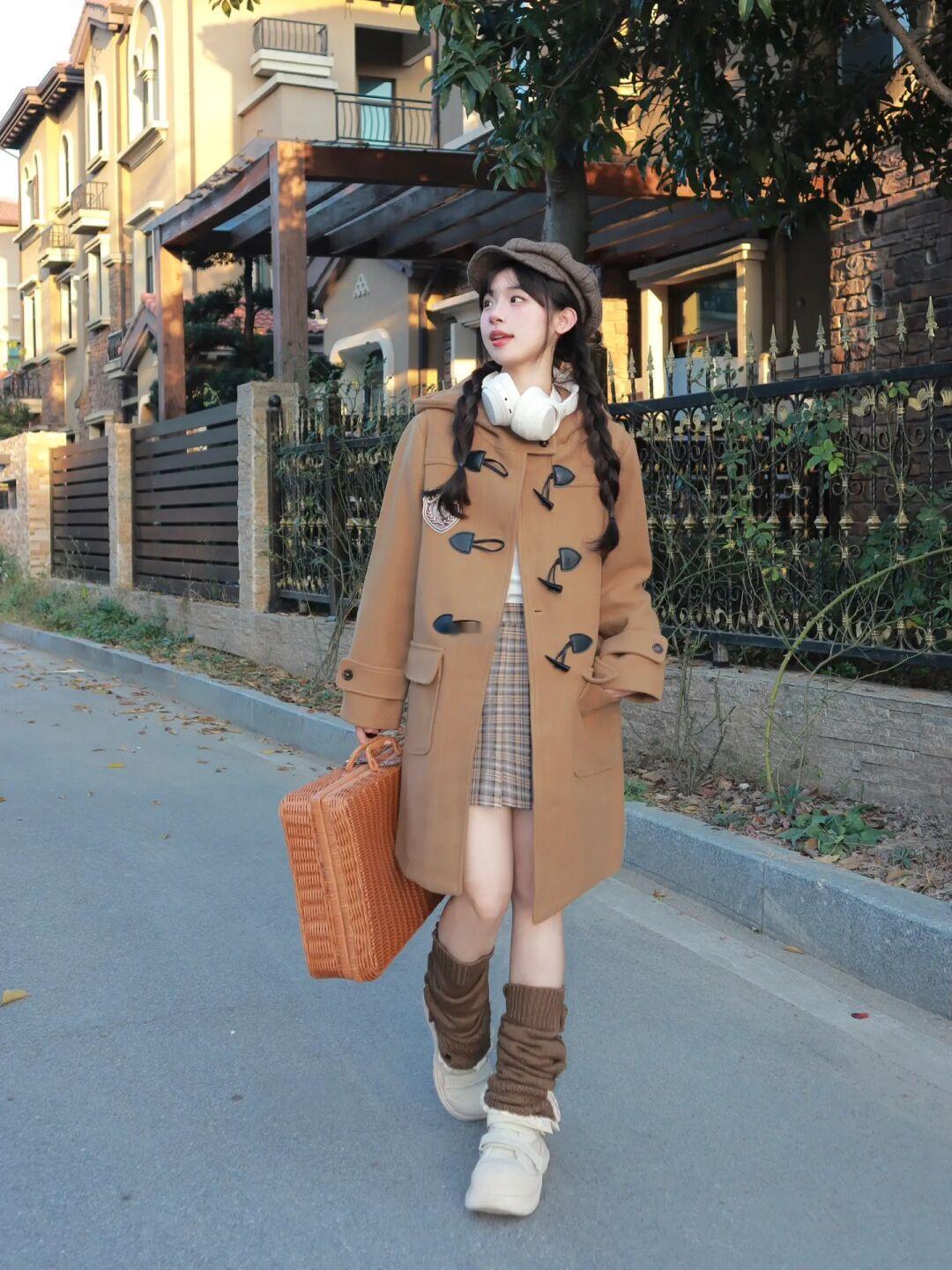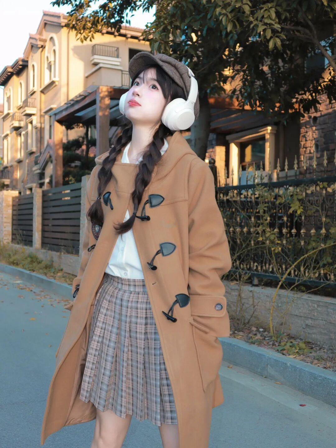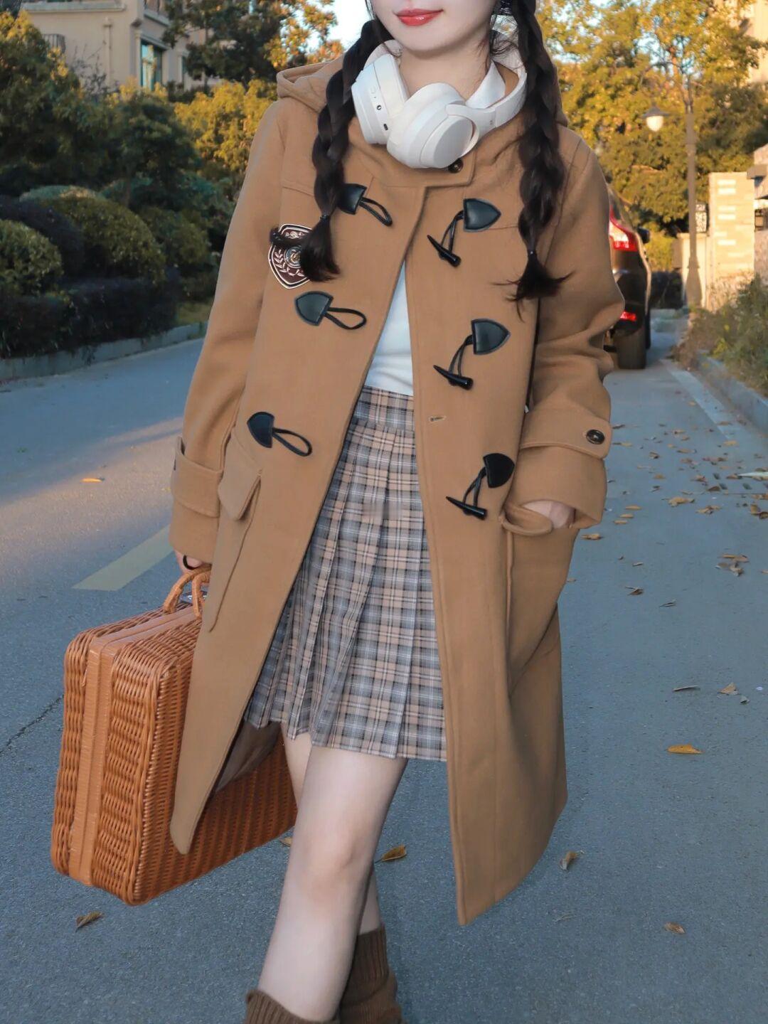 胶片日记🎞️: 用新买的牛角扣大衣🧸 + .* 搭配格子元素 满满复古感❕