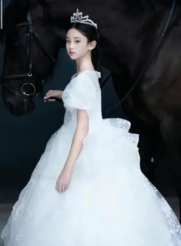 甜馨穿白色公主裙骑马,果然是越来越有气场了! 戴着皇冠、穿着白色公主裙的甜馨,越来越大方自信了! 高级感的妆容,掩盖了小女孩的青涩,看着成熟了许多。 不知不觉,那个说着“我们白着呢”的小女孩就长大了。 #从今天起记录我的2023#