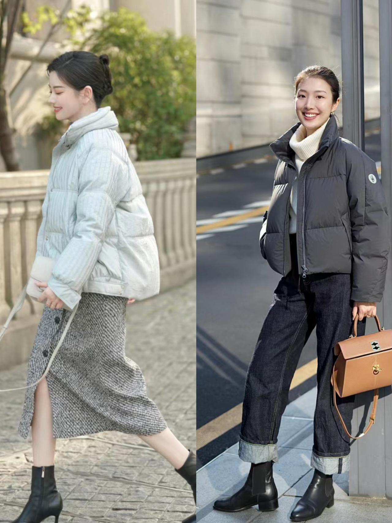 冬天最耐穿的“短款羽绒服”,利落大方又显高,配裙子裤子都好看 短款羽绒服是秋冬季节的首选,长度及腰最好,选择蓬松度高的面料保暖度更好。搭配格纹半身裙、牛仔半身裙、百褶半身裙、直筒裤、锥形裤等,都可以呈现出利落大方、减龄俏皮的效果。