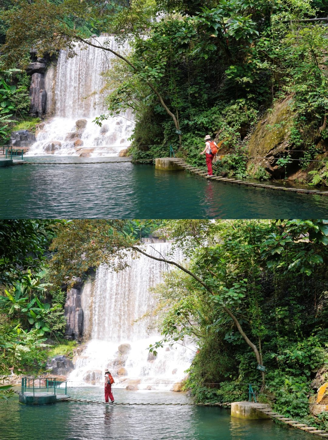 ✓ 悬空栈桥:站到悬空的玻璃栈道上,脚下是奔腾而下的瀑布,心跳也在加速
