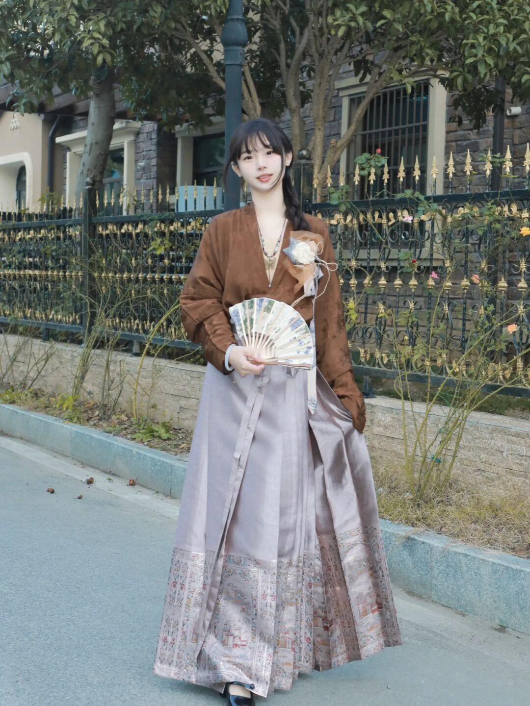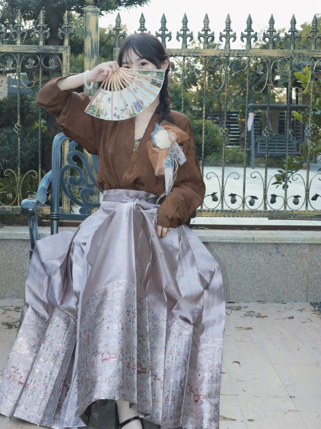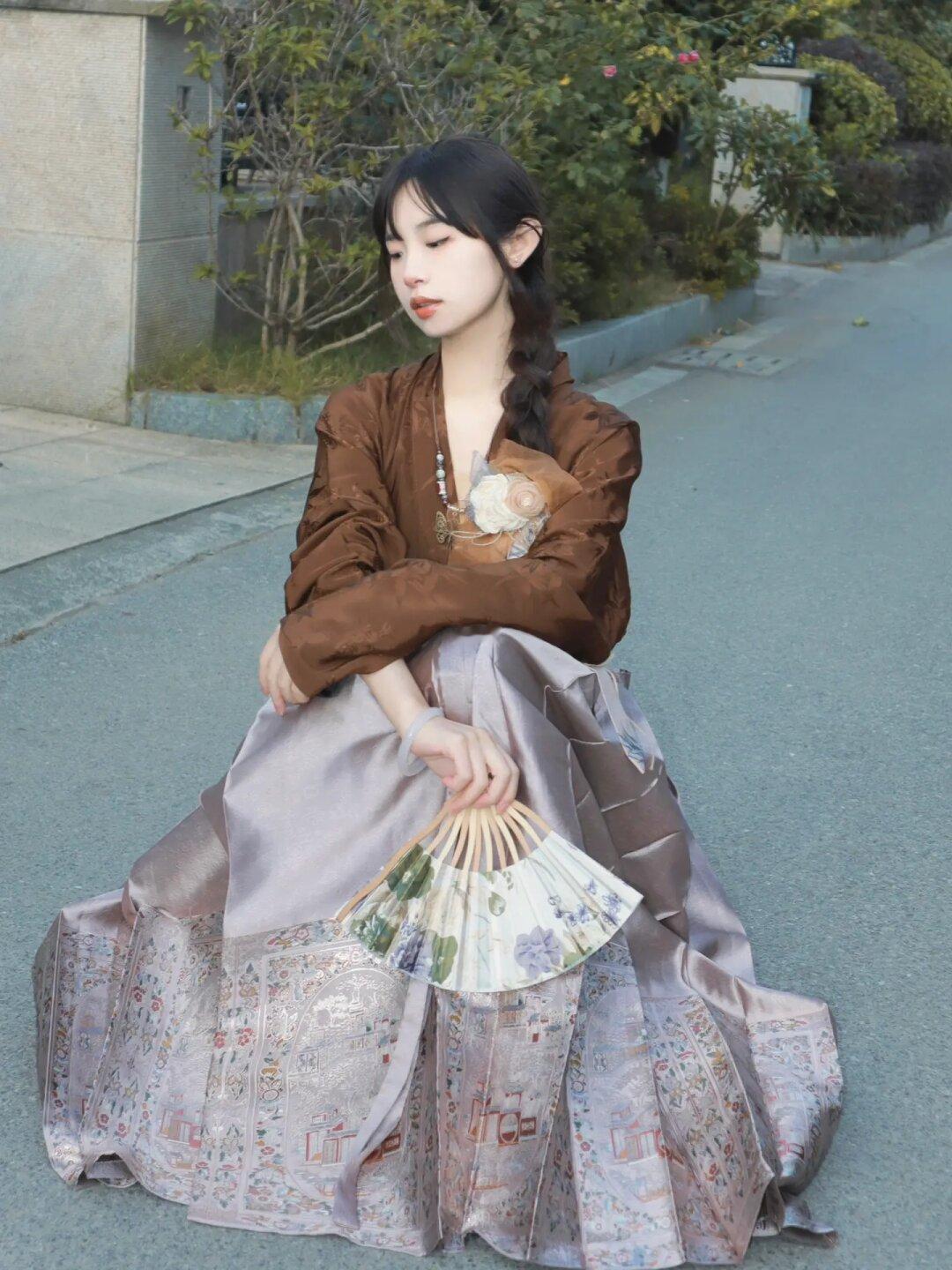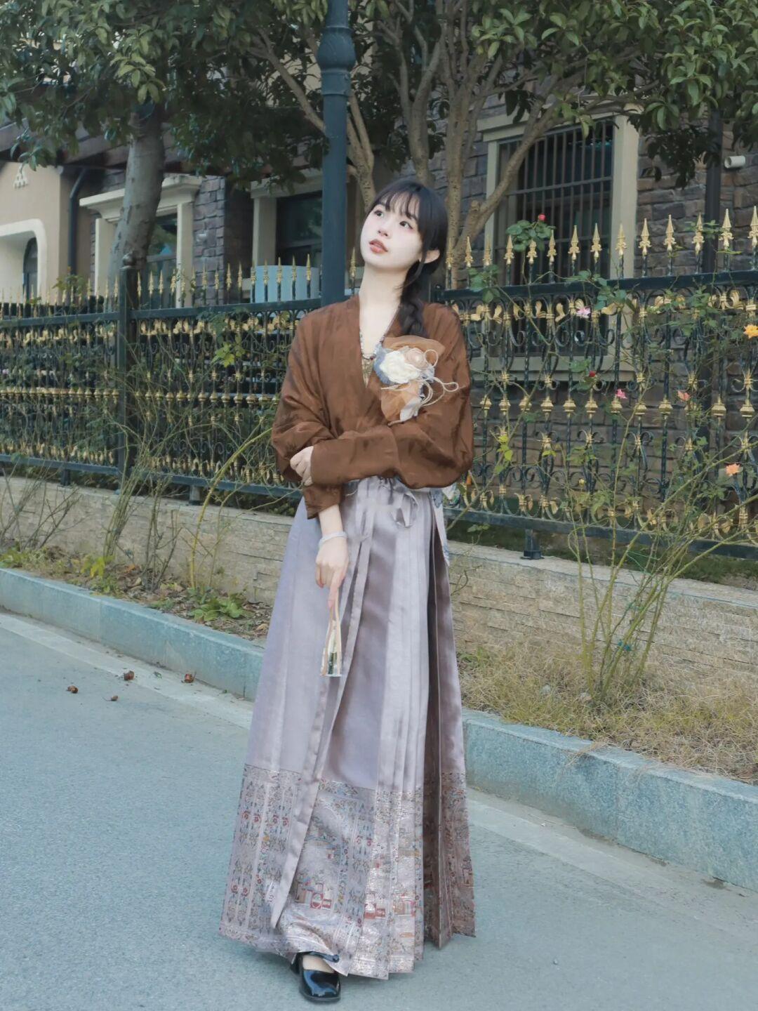 胶片日记🎞️: 新买的马面裙搭配咖色暗纹飞机袖 妥妥中式美拉德~ 复古感满满🀄️