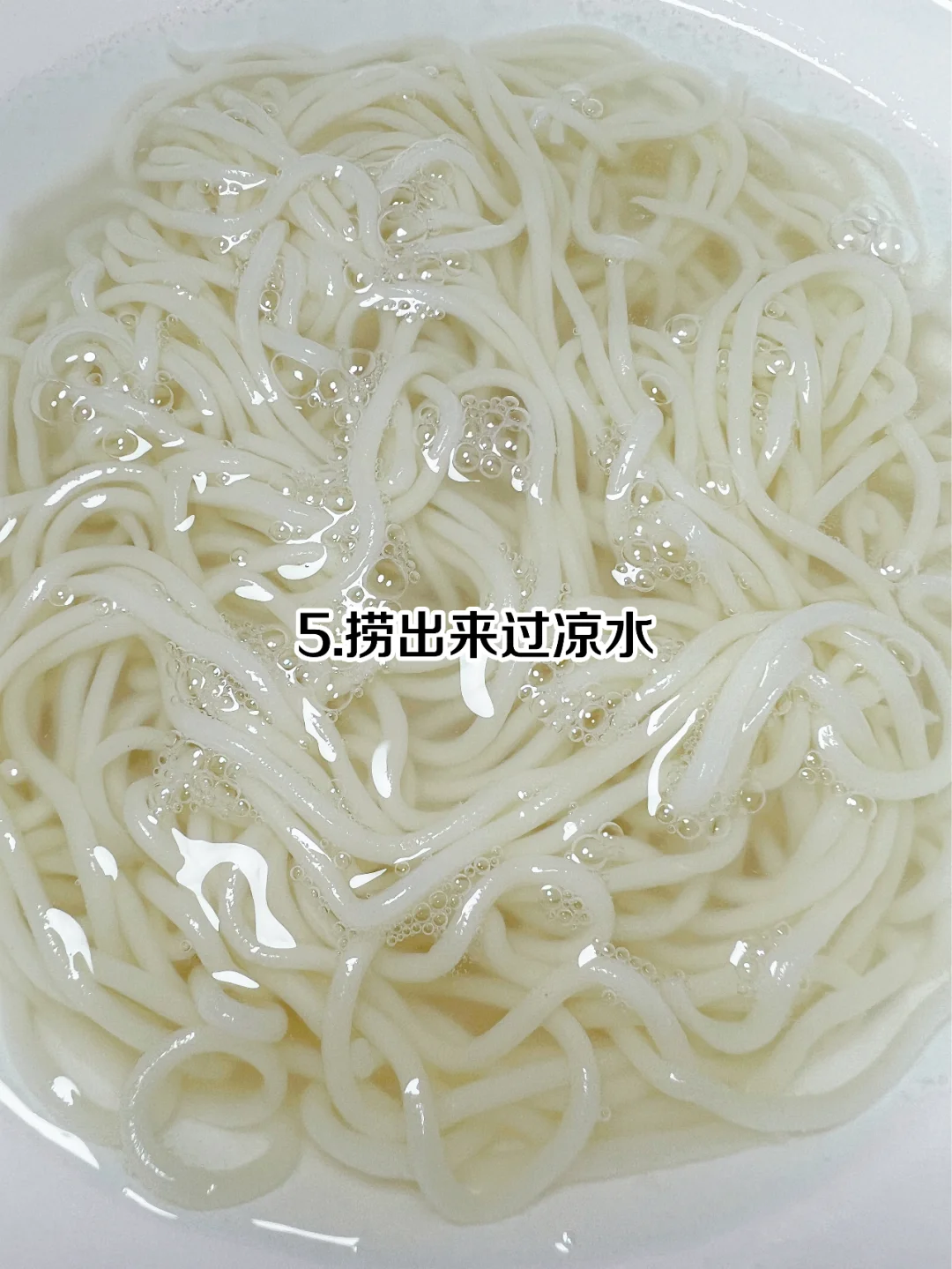 5️⃣ 捞出来过凉水,这样可以让面条更加爽滑。💦