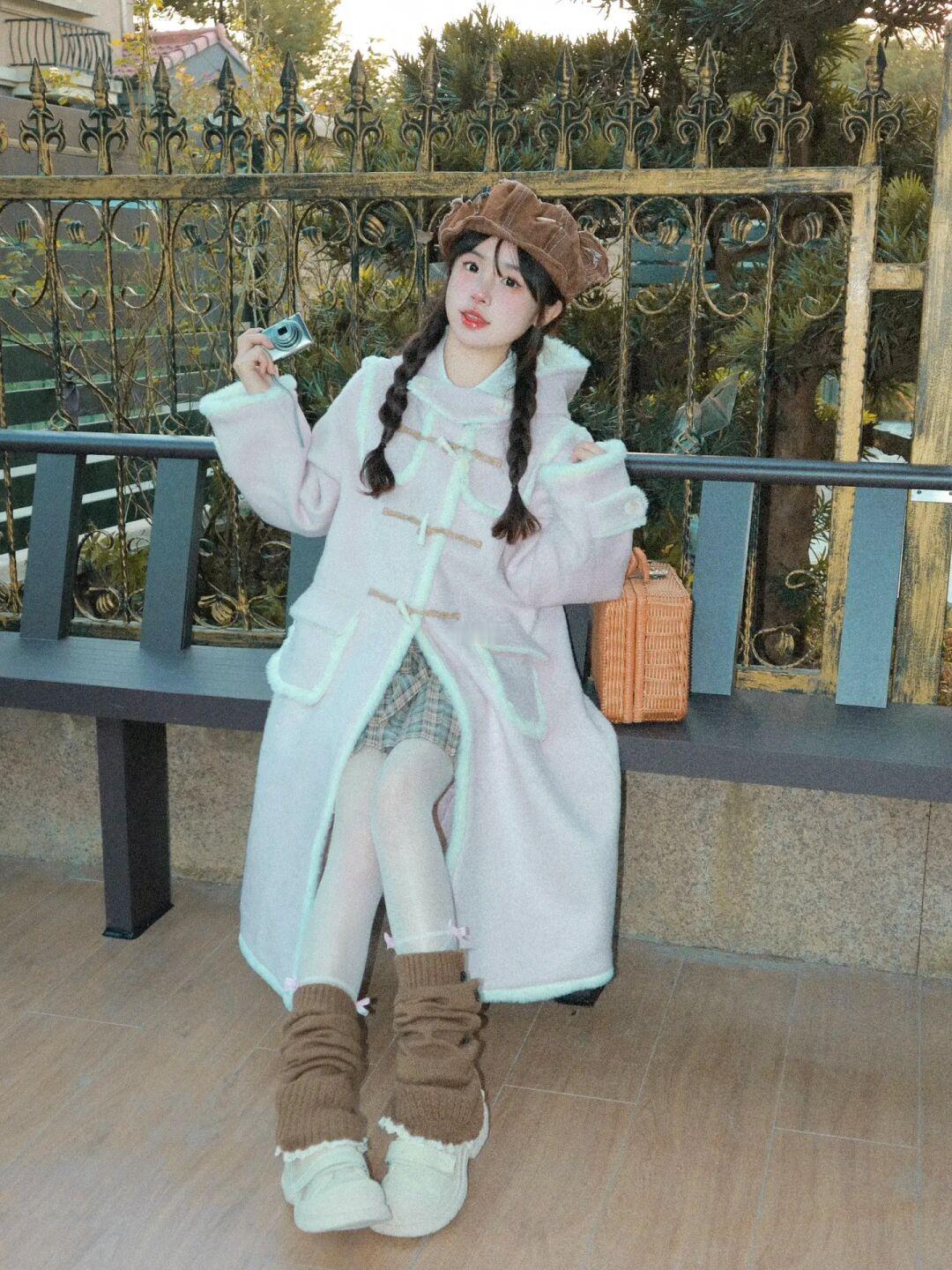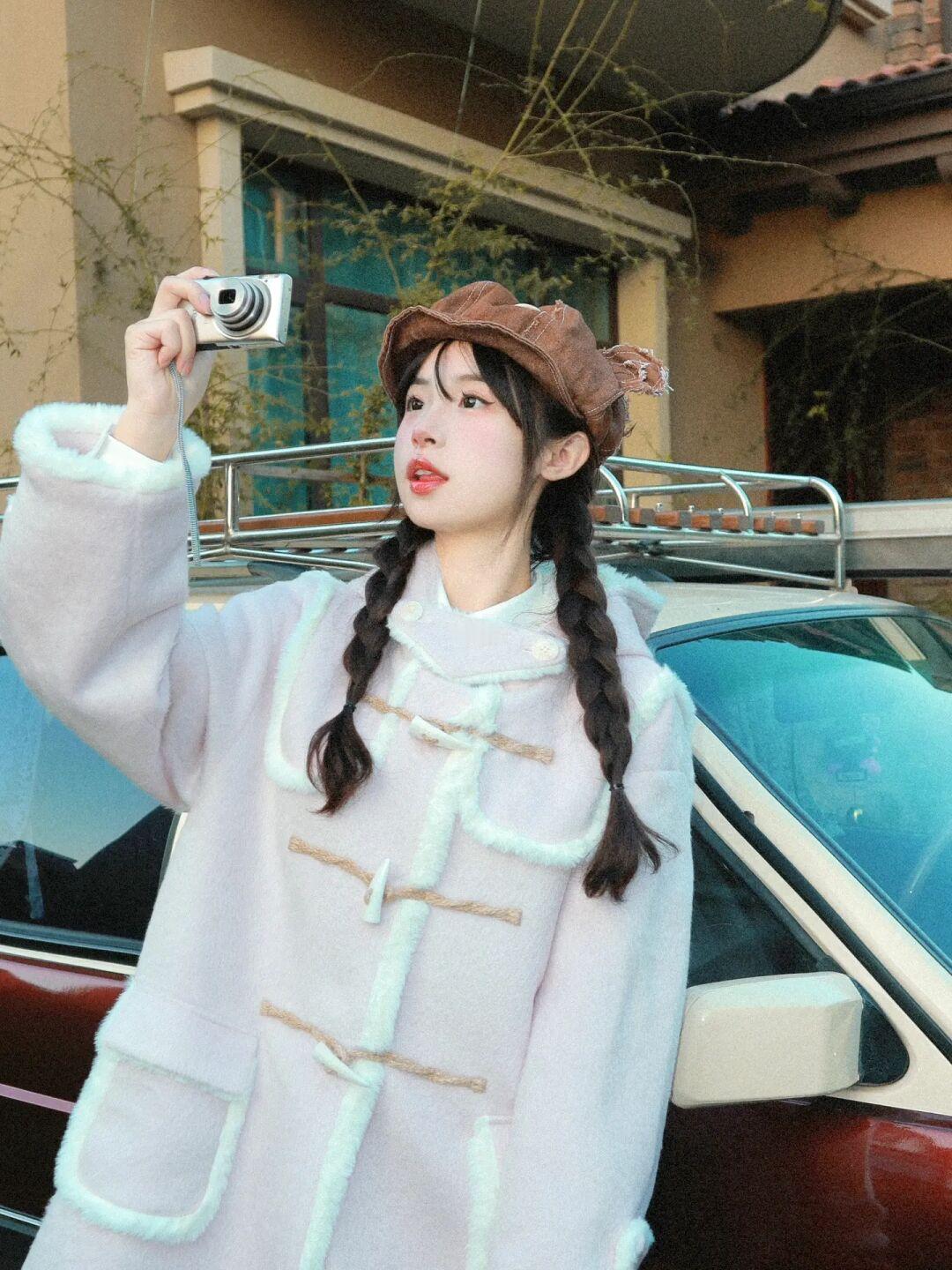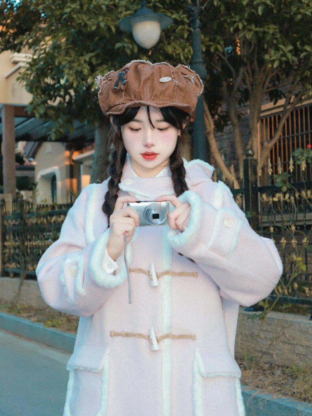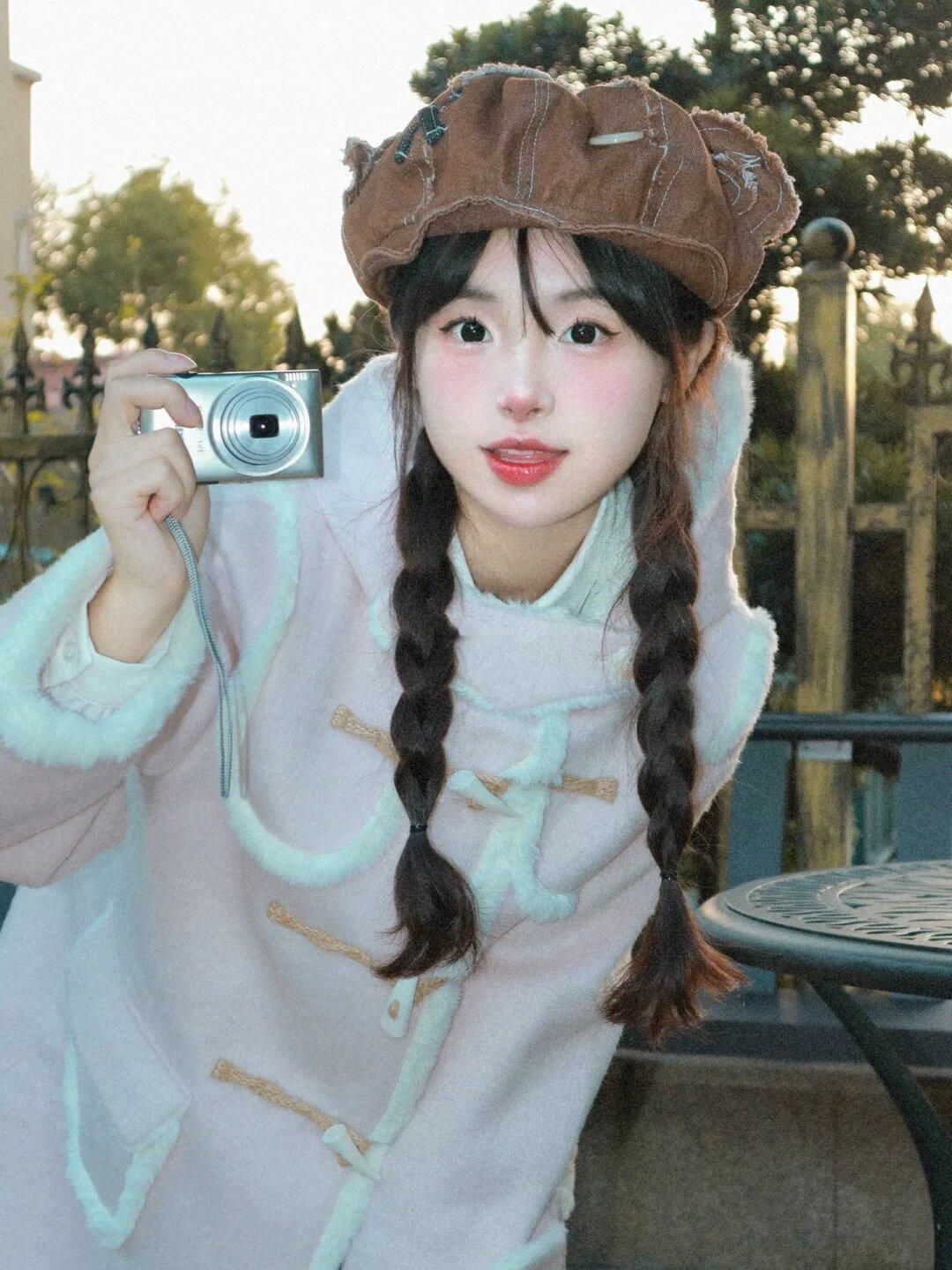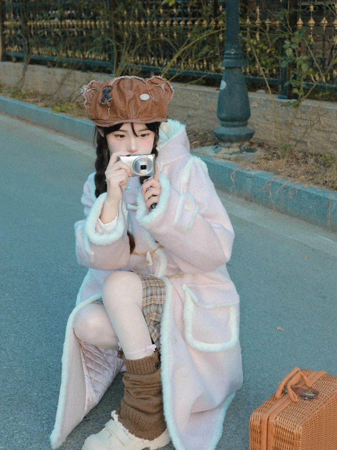 胶片日记🎞️: 复古做旧小熊帽✖️粉色翻毛皮大衣~ 今日份甜酷甜酷的Ootd💕