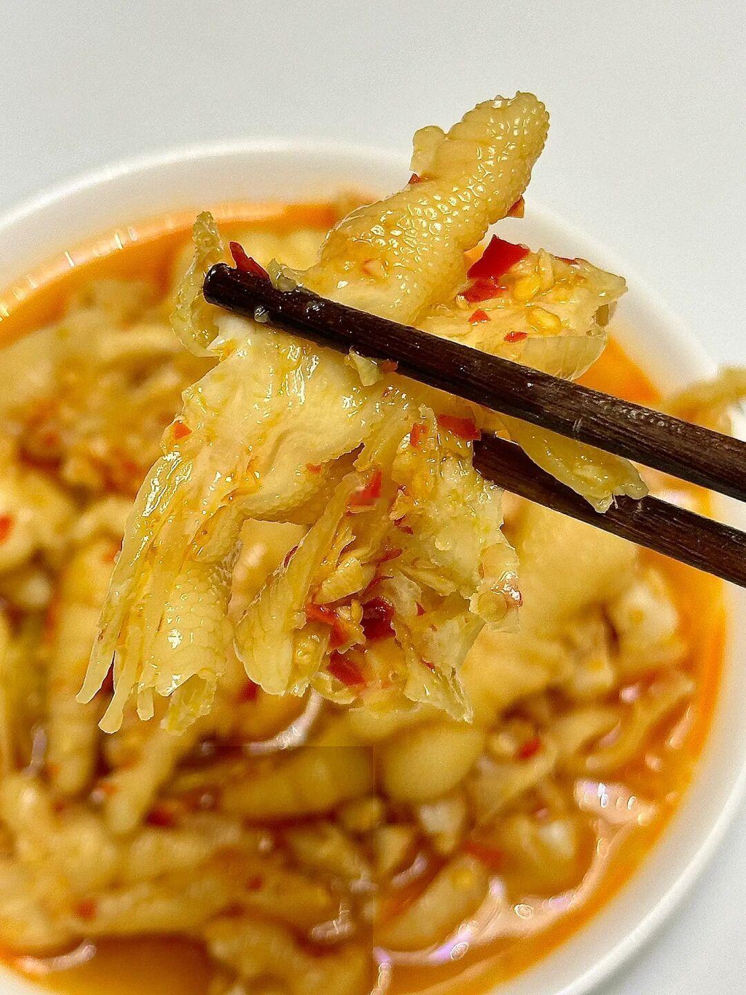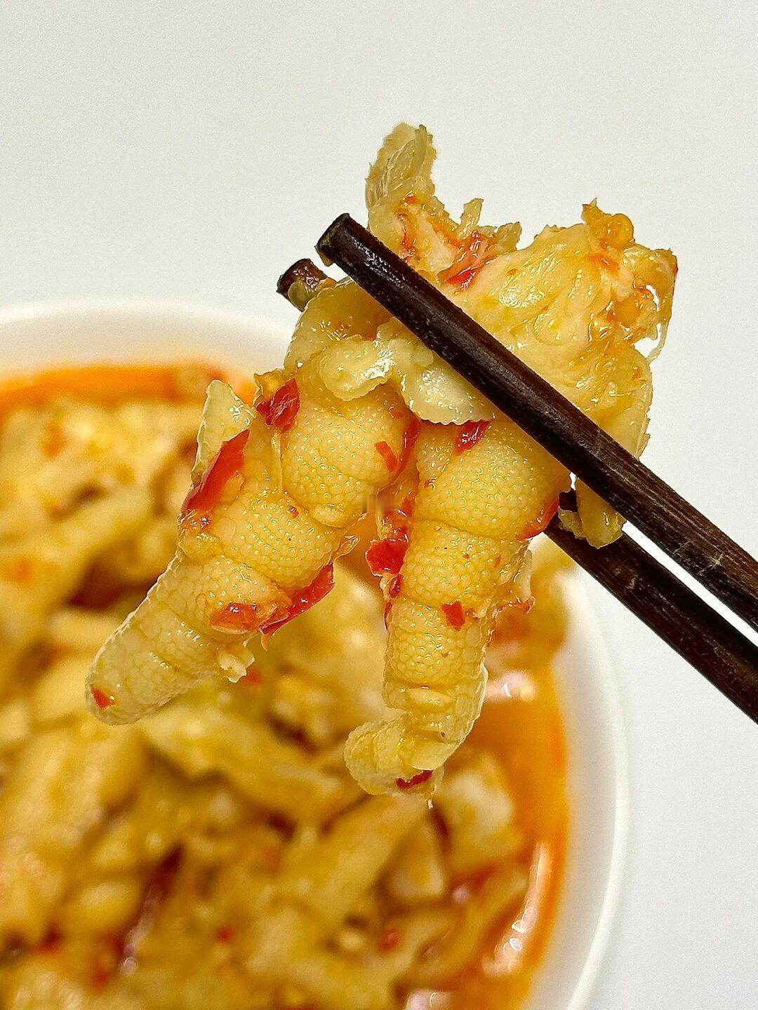谁能不爱无骨鸡爪啊!! 尊滴泰好吃泰下饭了啊!! 酸酸辣辣的没有一个骨头!! 一个这个我可以干两碗饭!! 脆爽又有嚼劲~每一只鸡爪都很肥美! 蒜香味十足!汤汁还可以拿来拌面真绝了啊!!