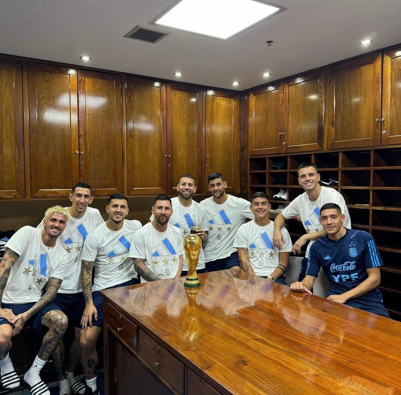 接着奏乐接着舞,梅西再次和老伙计们合影大力神杯,真是太爱秀了![what][笑哭][捂脸]这让中国球迷情何以堪?我们的球队进不去,甚至连门都摸不着。