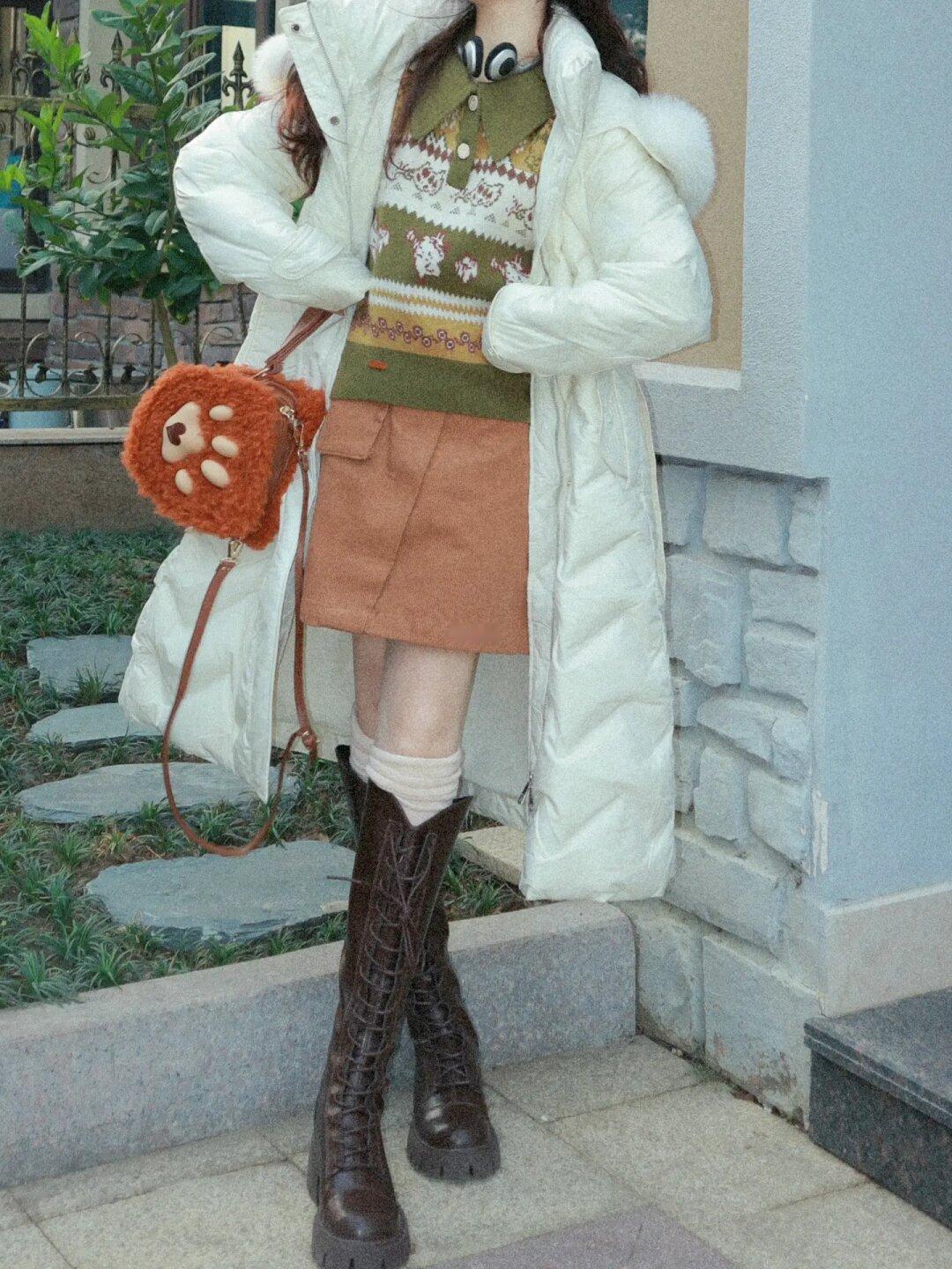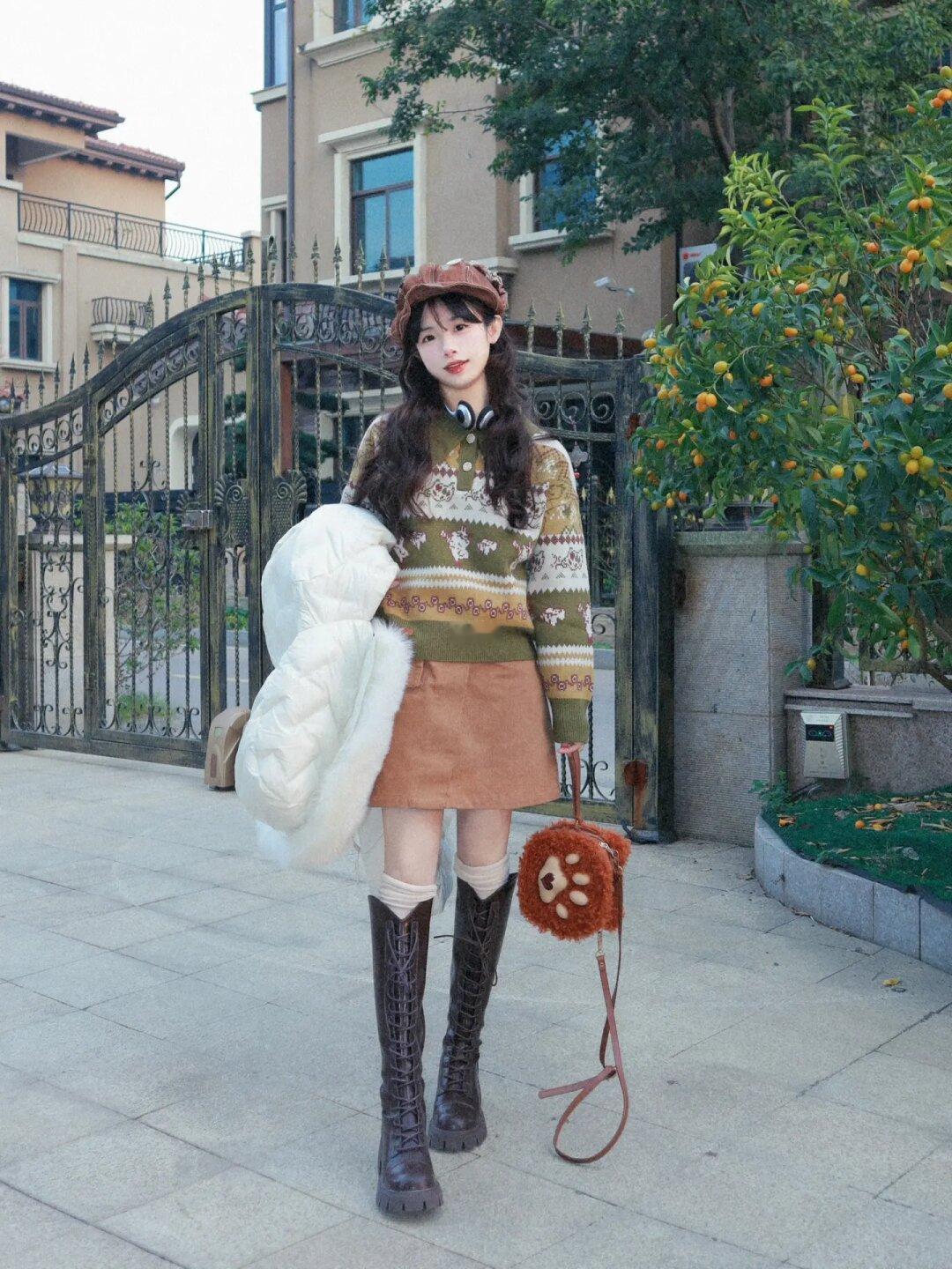 耶!又是复古穿搭: 做旧牛仔帽✖️咖色灯芯绒💿 外面叠加羽绒大衣❄️ 这样穿好看又保暖❕