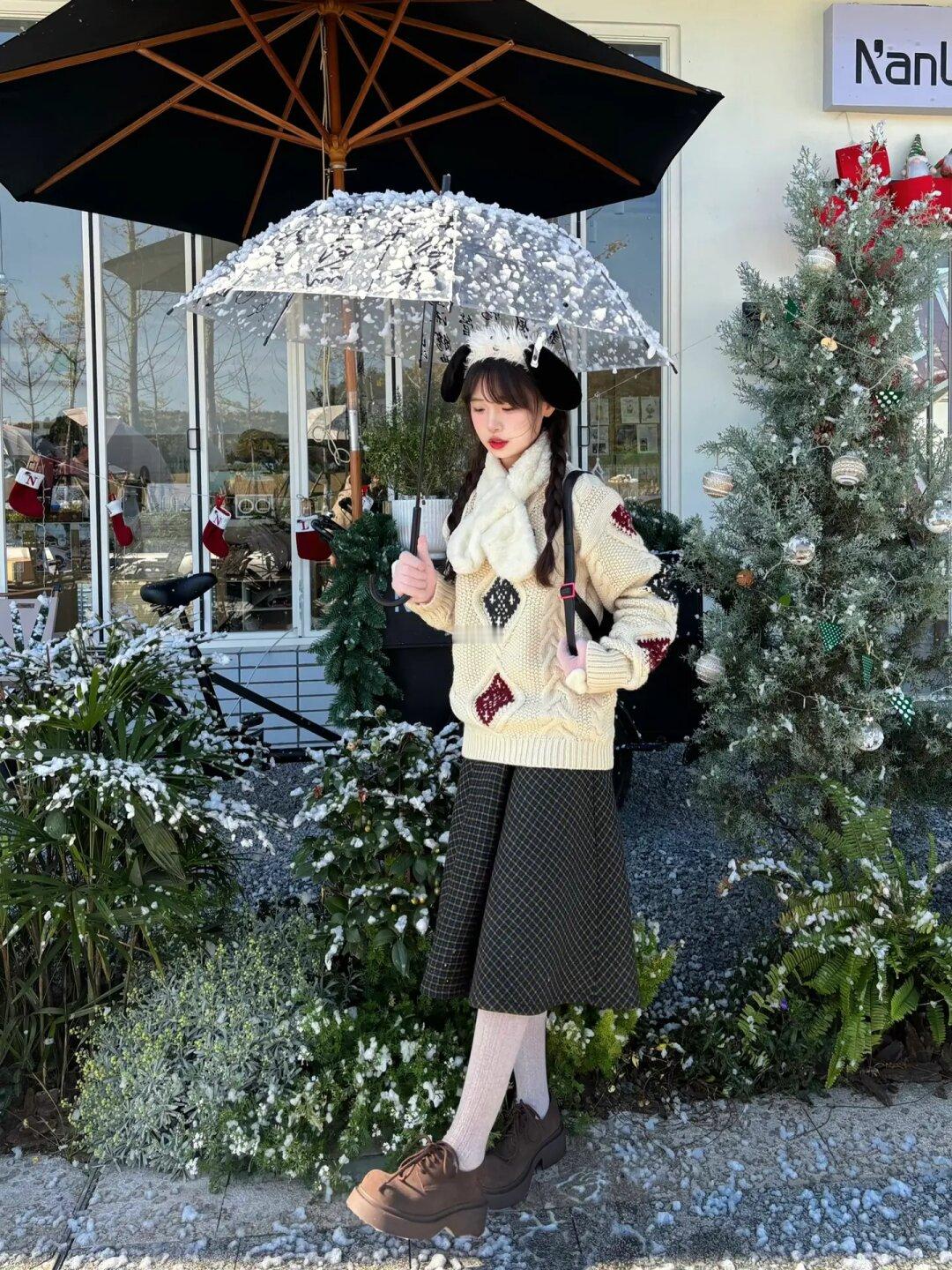 🎞️胶片日记: 复古毛呢伞裙➕重工麻花毛衣 有种怀旧氛围感~💿