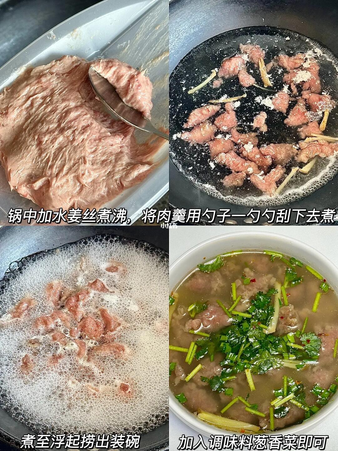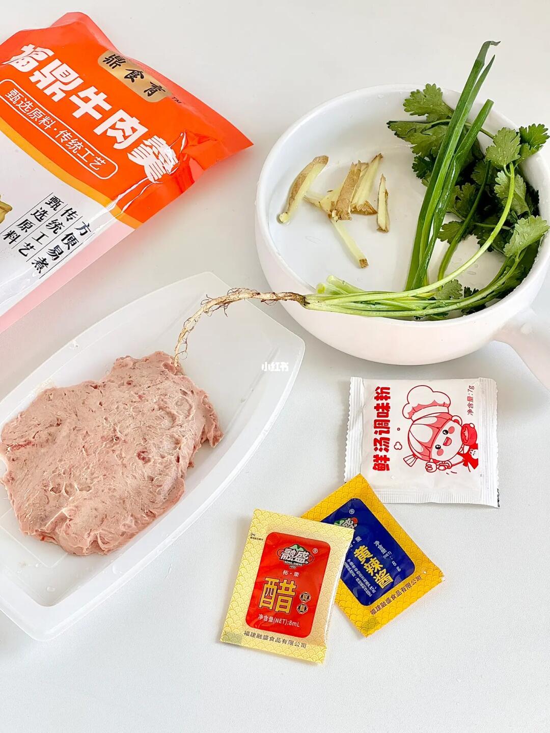 这个牛肉羹比我们这店里的还好吃!!调料包、辣醋都已经搭配好了!真的可方便了~[飞吻R][飞吻R][飞吻R] ㅤ 🌟做法🌟 1️⃣锅中加水姜丝煮沸,将肉羹用勺子一勺勺刮下去煮 2️⃣煮至浮起捞出装碗,加入调味料葱香菜即可 ㅤ 再也不用出门买了在家里就可以轻松get!吃起来很有嚼劲!肉感Q弹~汤都超好喝!喜欢吃面条的还可以加点面条泡面也很绝😊一盒的量刚好一份,囤冰箱里想吃的时候拿一盒出来可方便啦[赞R][赞R][赞R]