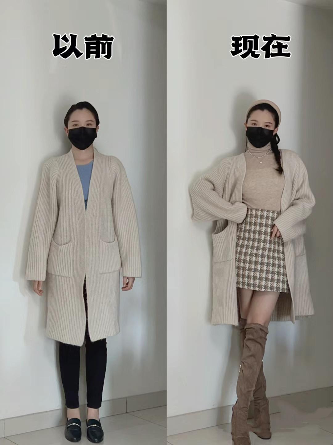 从“小土妞”变成“时髦精”,同一件衣服的不同穿法,差别这么大 要实现从小土妞到时髦精的蜕变,不需要买很多新衣服,而是学会在原有服装上进行全新的组合搭配。同一件衣服的不同穿搭方式会带来不同的效果,高领毛衣的下摆可以塞衣角,营造出优越的线条感;红色毛衣可以搭配宽松半身裙,优雅又可爱;短款羽绒服可以搭配高腰百褶裙,更加时髦俏皮;基础款针织马甲可以搭配短裤,拉高腰线又秀出双腿线条;黑色大衣可以搭配灰色卫衣,撞色搭配更加醒目;针织衫可以作为小开衫来穿着,搭配哈伦裤显瘦又帅气。