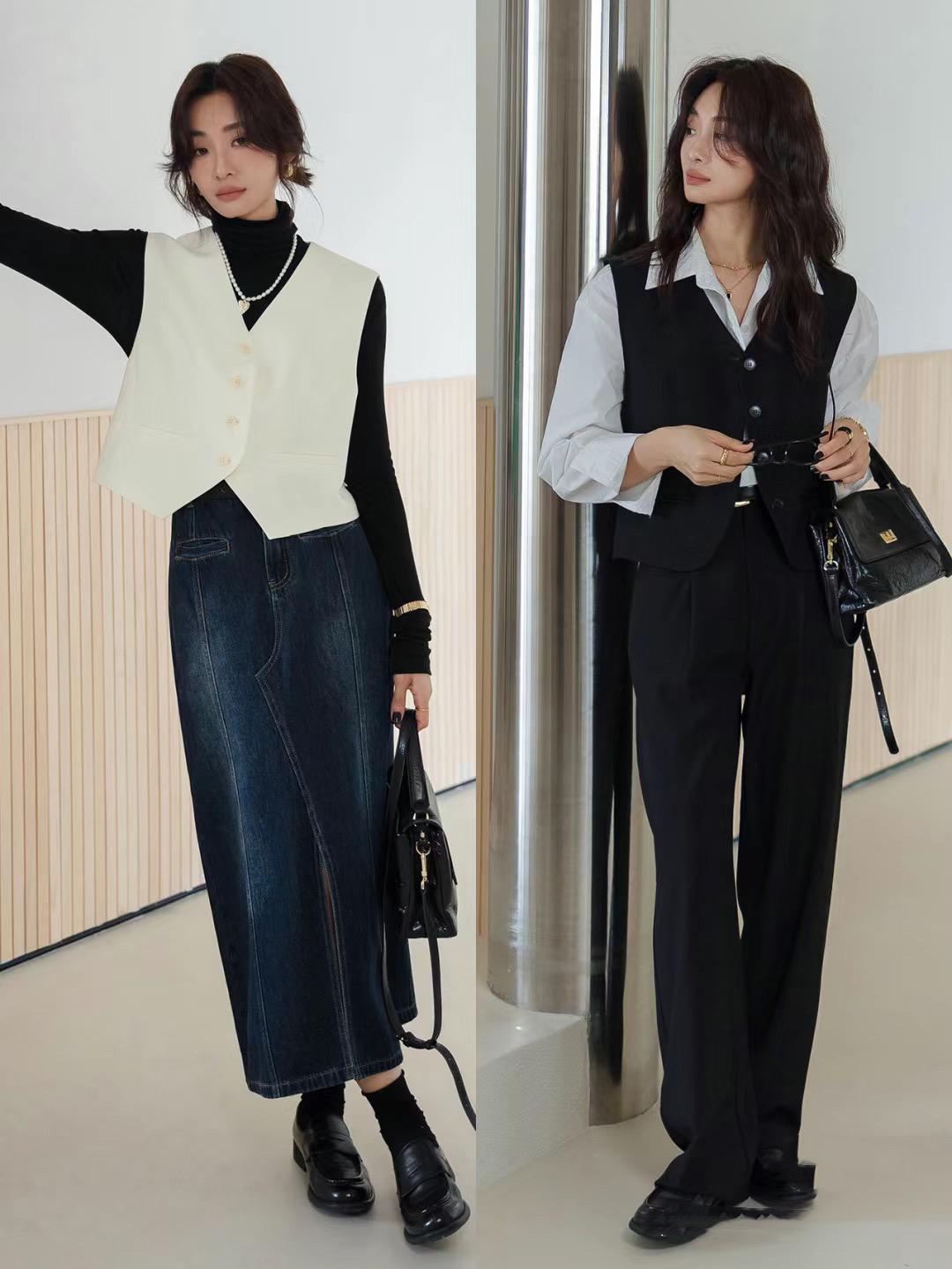秋冬玩转层次感叠穿,“西装马甲”才是灵魂单品,照着穿精致时髦 西装马甲在冬天穿搭中扮演着重要角色,不仅利落修身,自带精致感,还可以作为点缀、更加耐看。它可以搭配白色衬衫、同色系长裤、半高领打底衫等,造型百变、时髦又耐穿,一点不挑人。搭配小配饰如丝巾、胸针、贝雷帽、腰带等,可以提升整体时尚感。