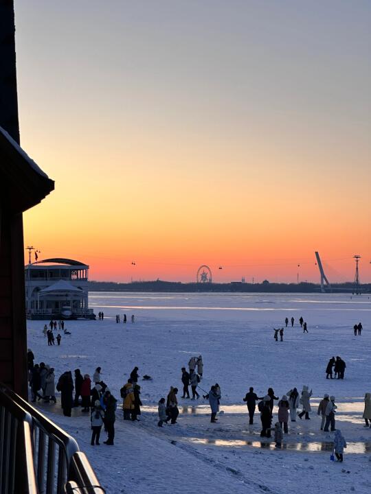 松花江铁路大桥🌉 早早就在打卡🧾上 傍晚去的时候 遇上了日落 一切都美的那么合理