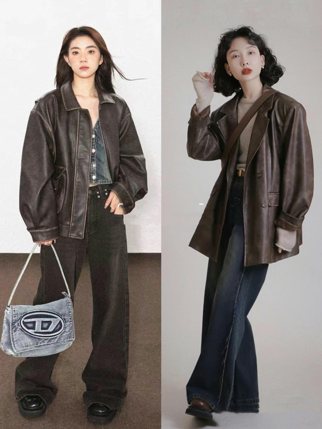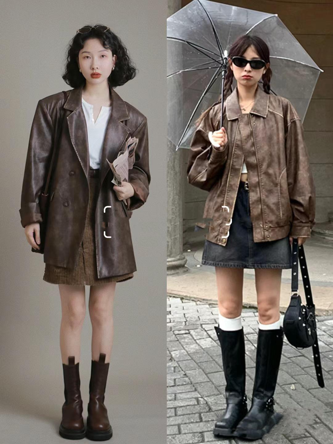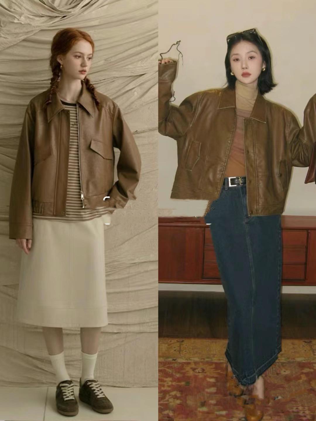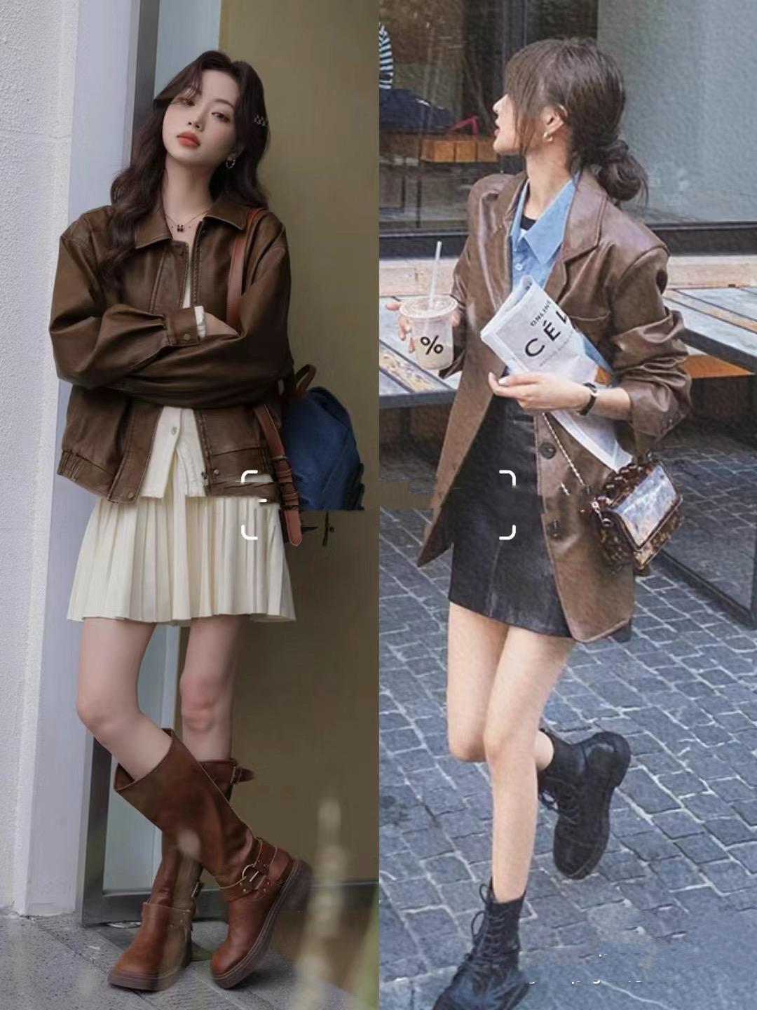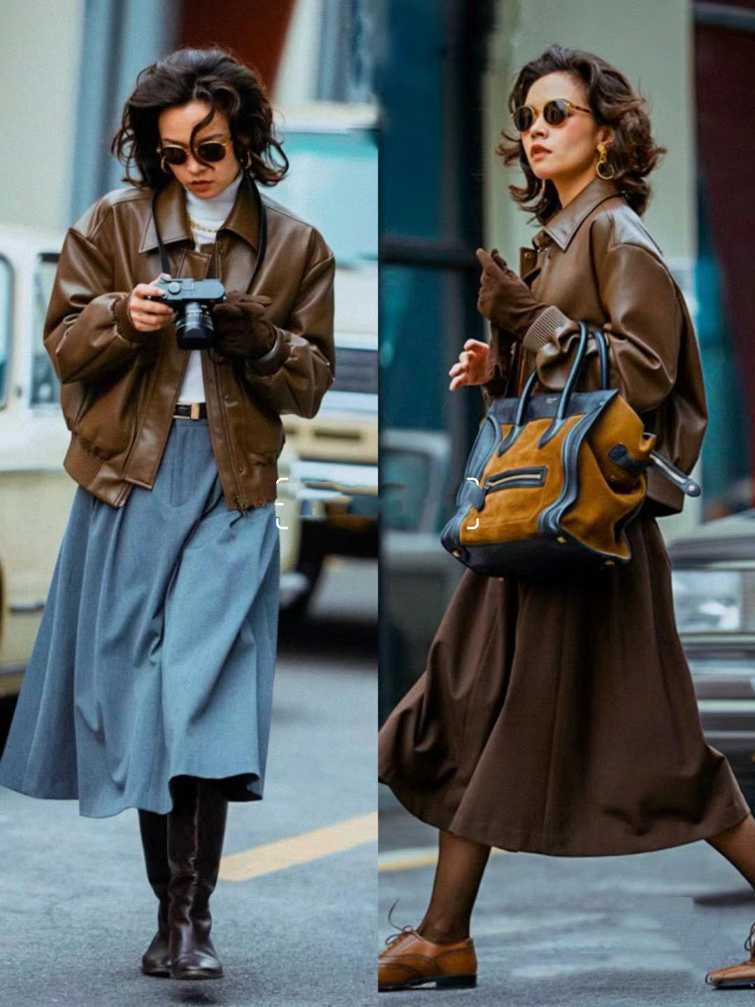 个性飒酷的“皮衣外套”,冬天凹造型就选它,配裙子、裤子都好看 冬天别总是穿大衣、棉服、羽绒服,皮衣外套保暖性和防风性都不错,又个性又飒酷。可以配高腰的直筒裤、锥形裤、西装裤、毛呢裤、阔腿裤。配裙子时,可以选择温柔浪漫的碎花连衣裙,或者高腰的A字形半身裙。小个子女生可以用宽松的皮衣外套来搭配高腰的A字形半身裙,既能修饰腰胯线条,又显高显腿长。棕色系的皮衣外套自带复古氛围,搭配高腰的直筒牛仔裙或毛呢半身裙,也特别雅致大方。