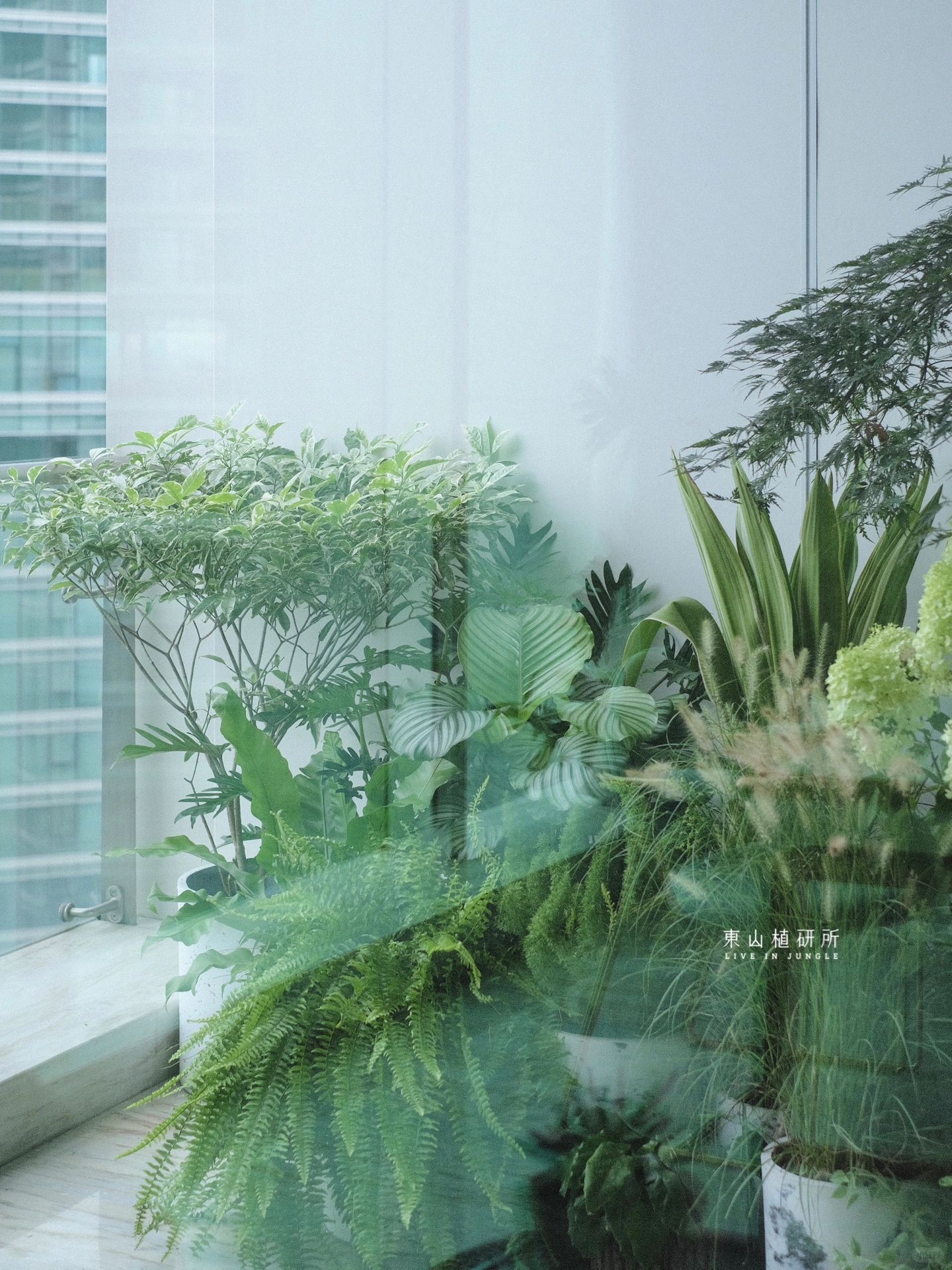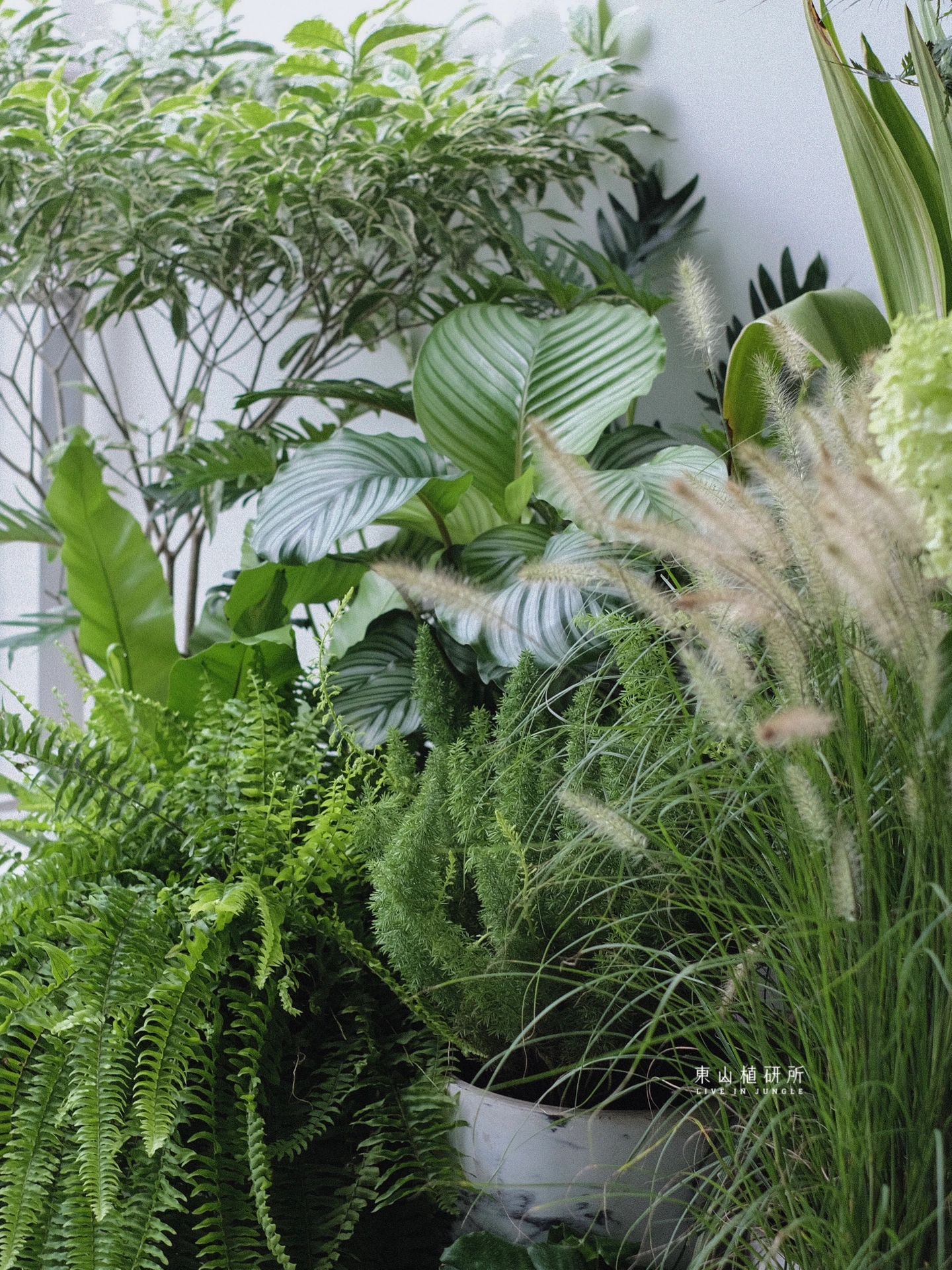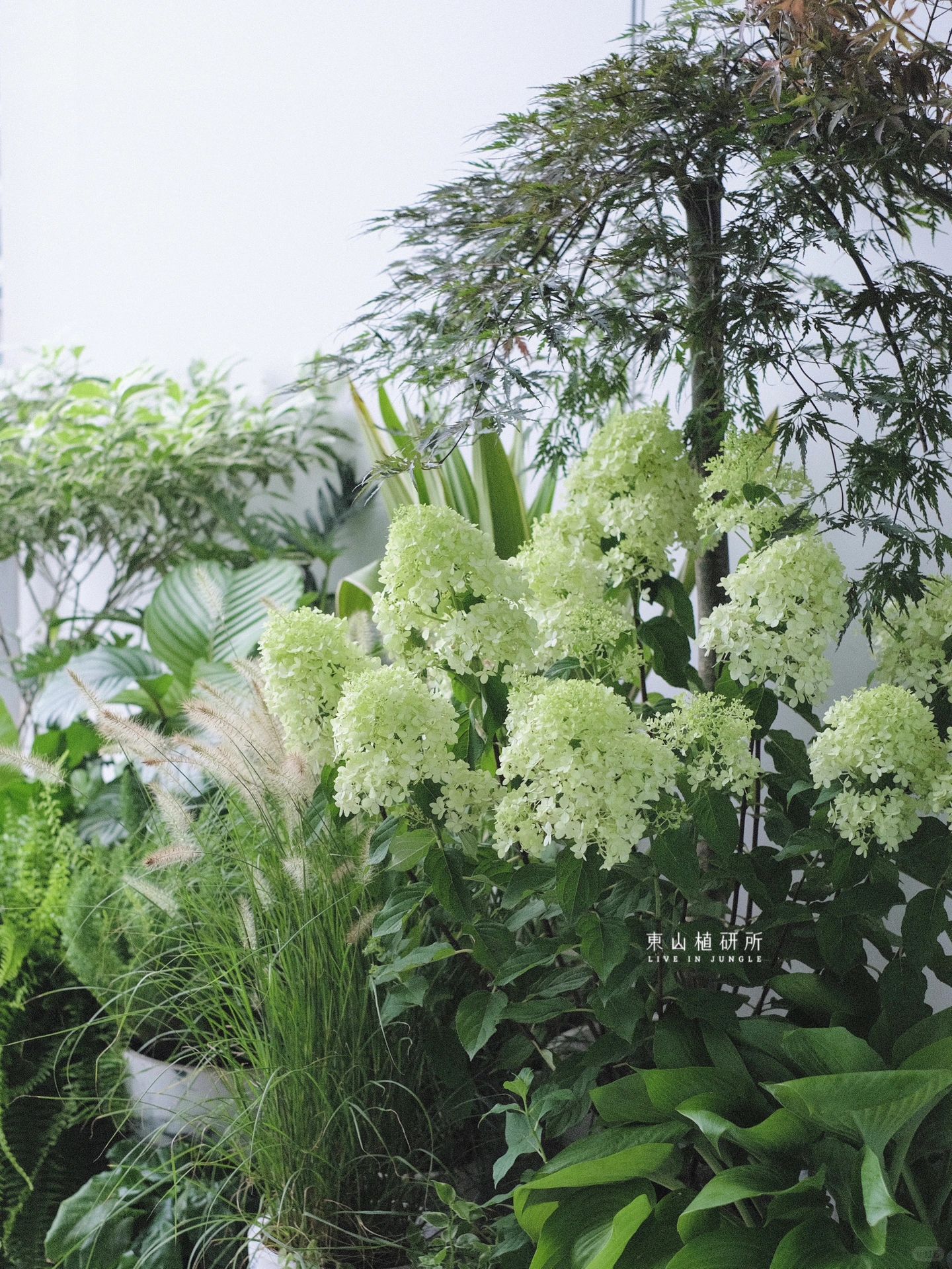 错落有序的植物 清爽的绿色 阳光洒在木绣球的花瓣上 郁郁葱葱的绿意治愈心灵 植物清单:木绣球/羽毛枫/红枫/狗牙花/小春雨/鸟巢蕨/苹果竹芋/剑麻等 ——————