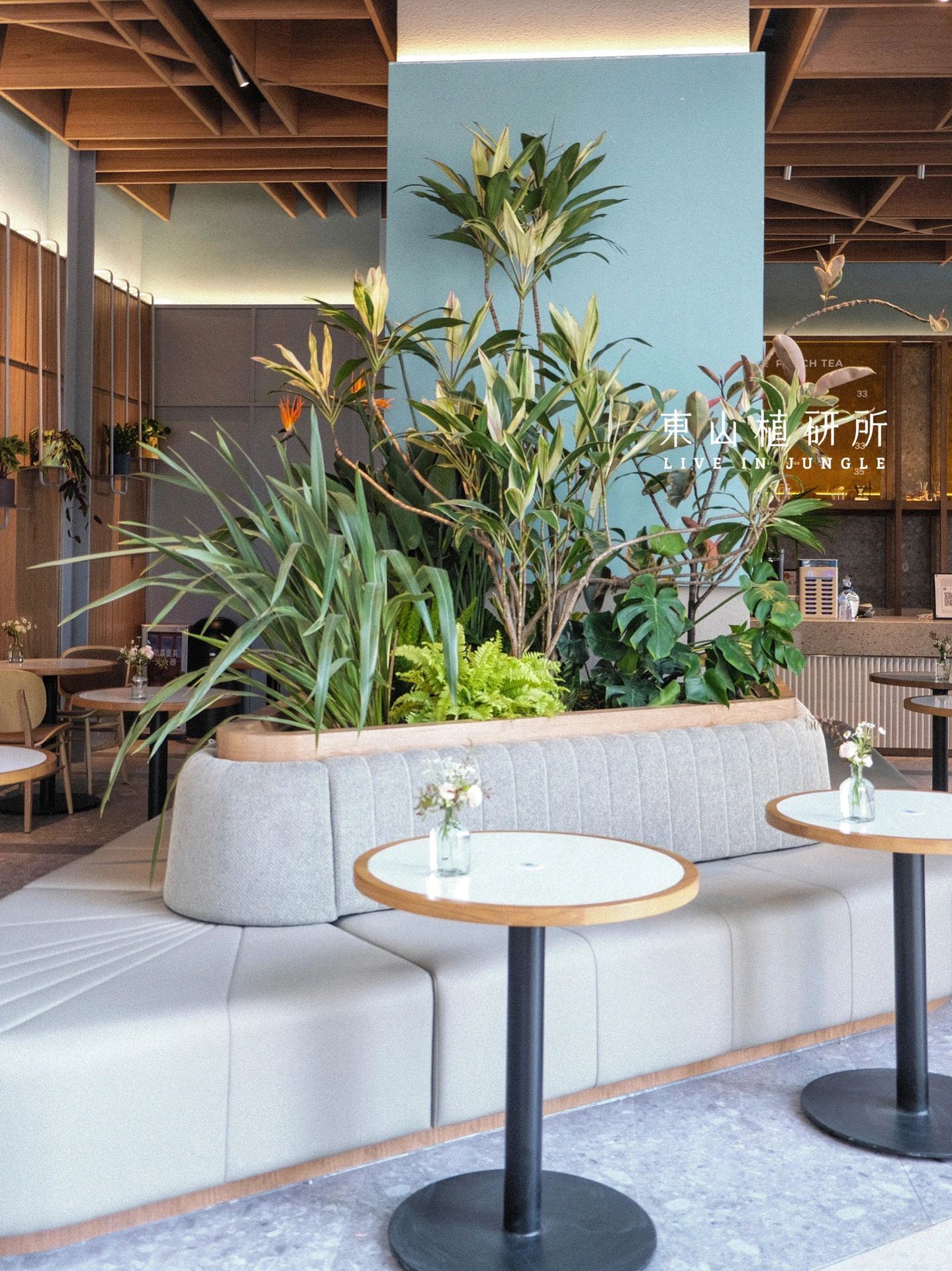 挺立型的绿植于卡座背面 以竖直姿态生长,造型优雅 占用空间少 不会干扰顾客的用餐体验 绿意点缀 轻松、惬意的氛围 绿植簇拥下有独特的用餐感受 ——————