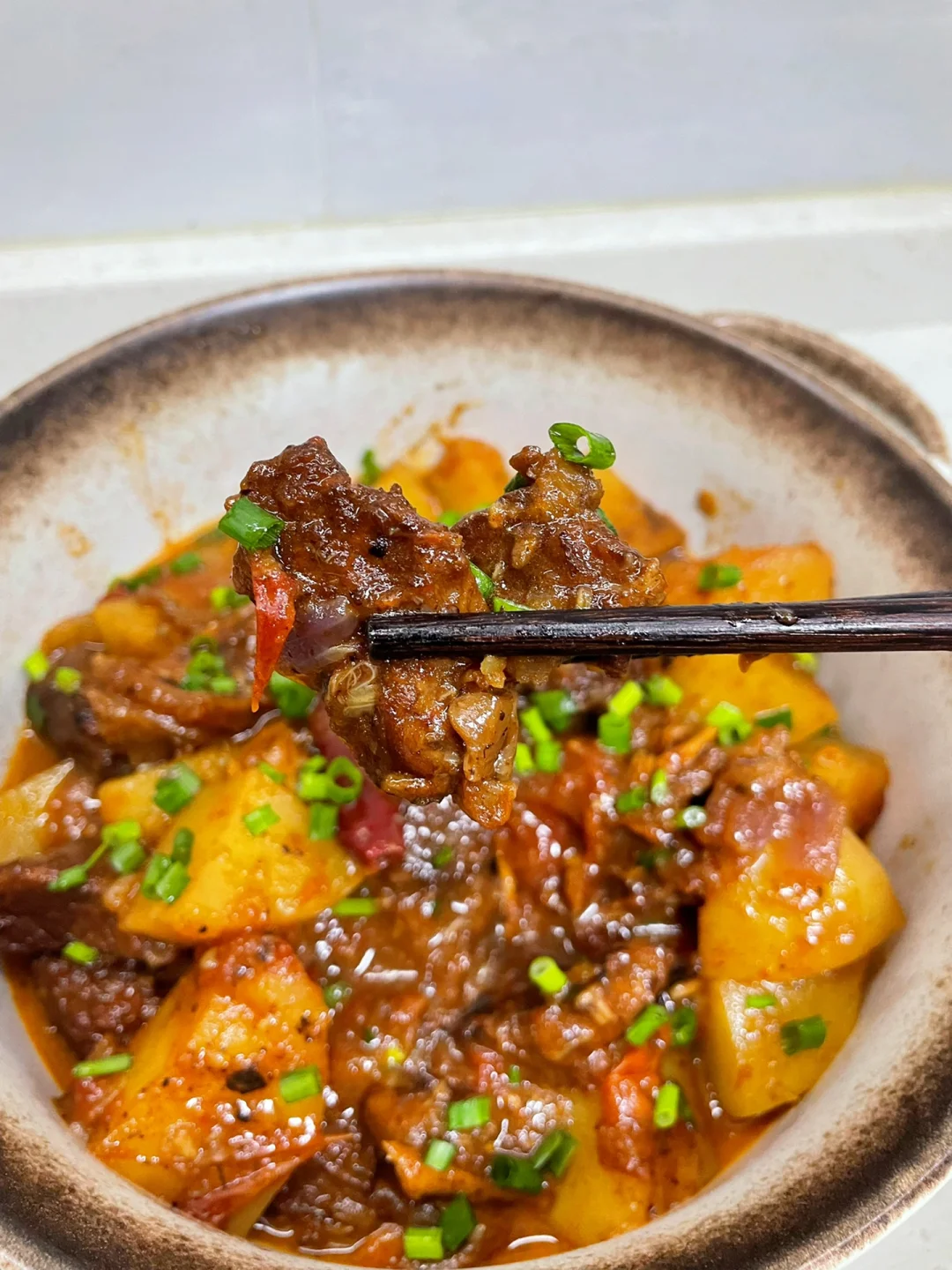 今天的番茄土豆炖牛腩也太好吃了,铁锅炖出来深得我心!