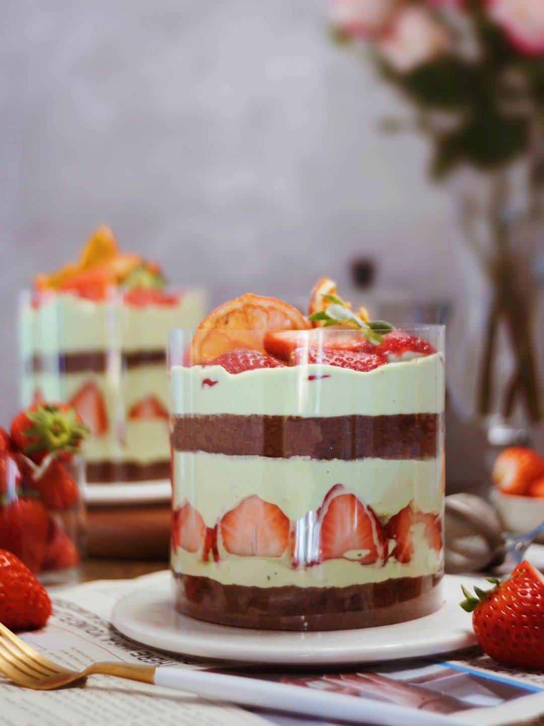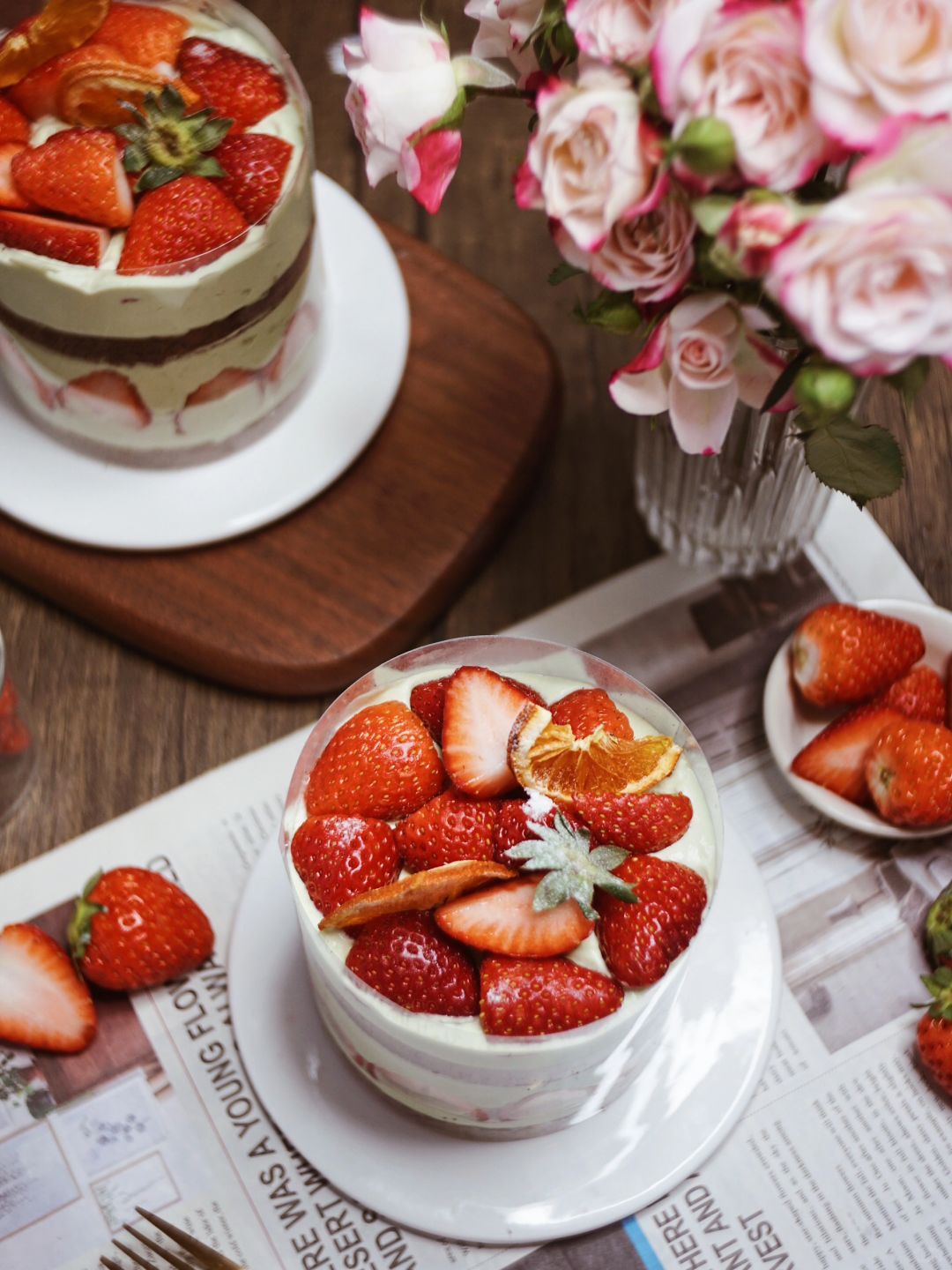 当草莓🍓恋上奶油,再用抹茶粉调味🍃一口就能吃出3种风味🍁