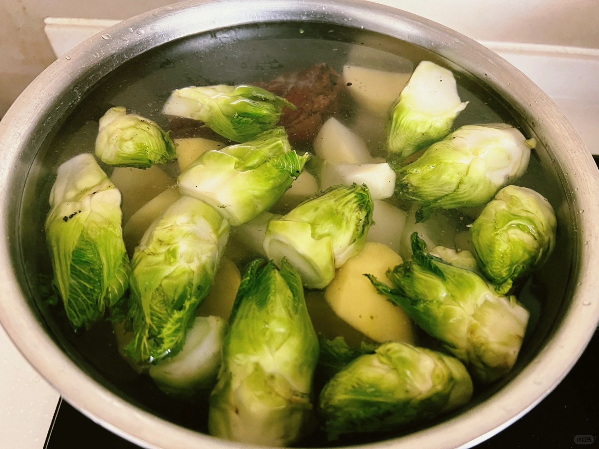 2⃣️把腊肉、土豆、儿菜放在一个锅里,加盖住食材的水量(可以多一点点)。其他什么都不要放⚠️