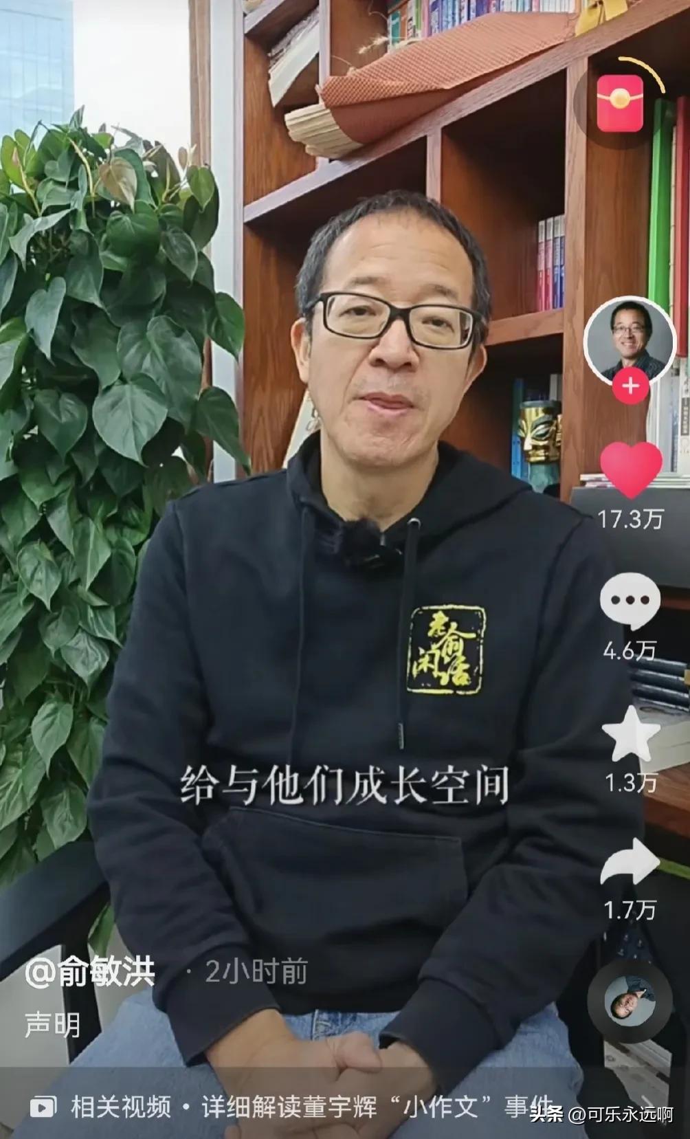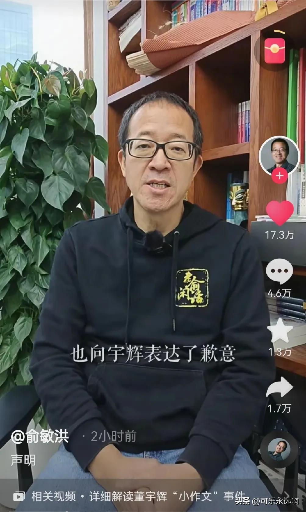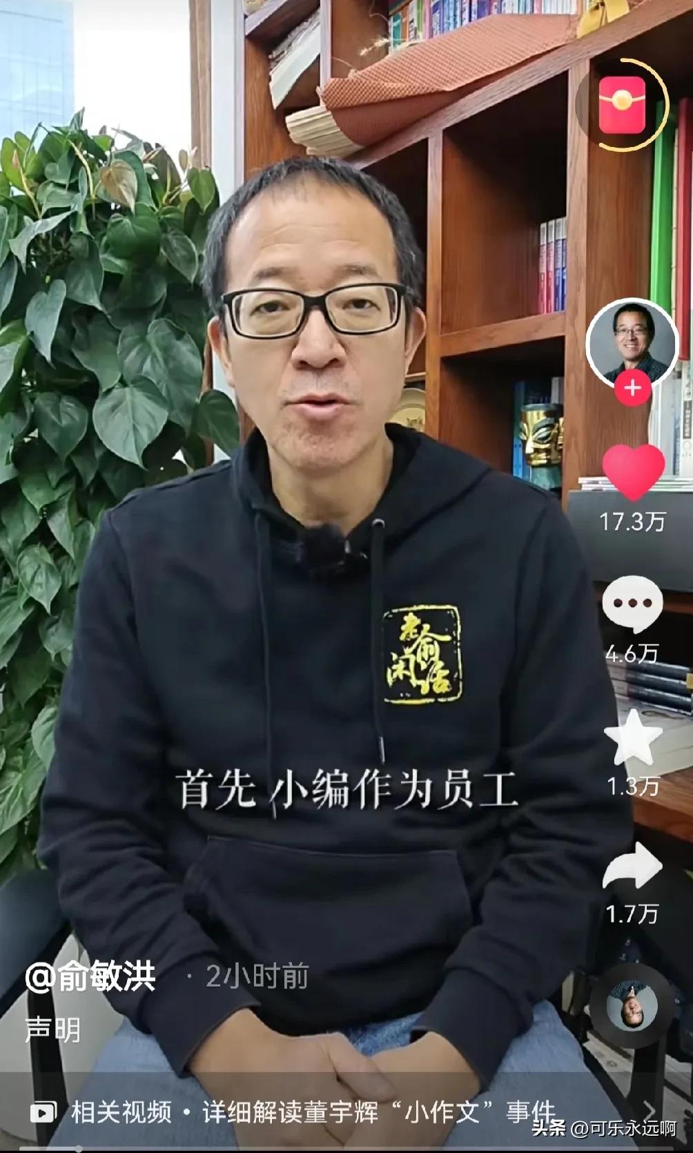 东方甄选的“小作文”事件闹得沸沸扬扬,股价下跌,粉丝骤减。 今天中午俞老师更新视频,发言很中肯: 1、说了小编不对; 2、说了小孙发言不当; 3、他向宇辉表达了歉意。 4、感谢广大粉丝朋友的爱护; 5、希望理性发言,接受大家的批评。 希望宇辉早点上播[比心][比心][比心] #2023年度创作挑战#