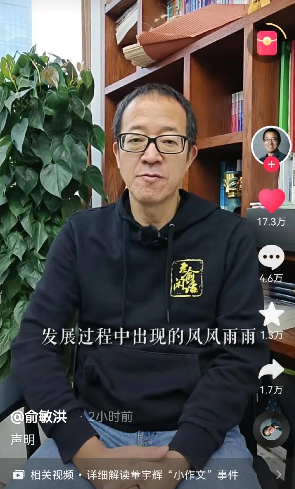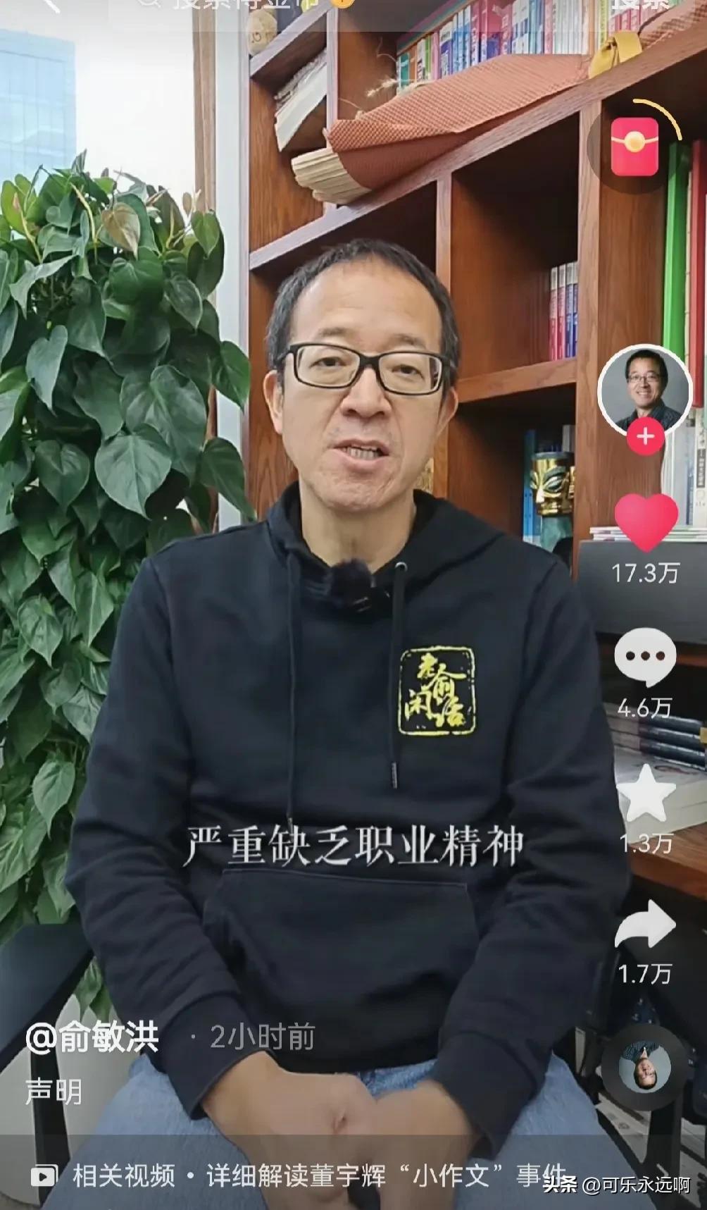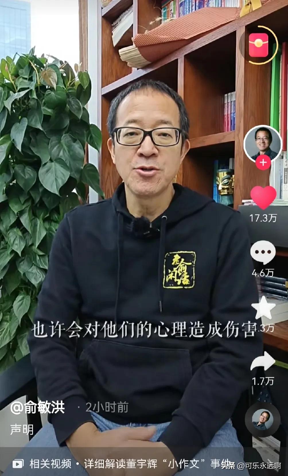 东方甄选的“小作文”事件闹得沸沸扬扬,股价下跌,粉丝骤减。 今天中午俞老师更新视频,发言很中肯: 1、说了小编不对; 2、说了小孙发言不当; 3、他向宇辉表达了歉意。 4、感谢广大粉丝朋友的爱护; 5、希望理性发言,接受大家的批评。 希望宇辉早点上播[比心][比心][比心] #2023年度创作挑战#
