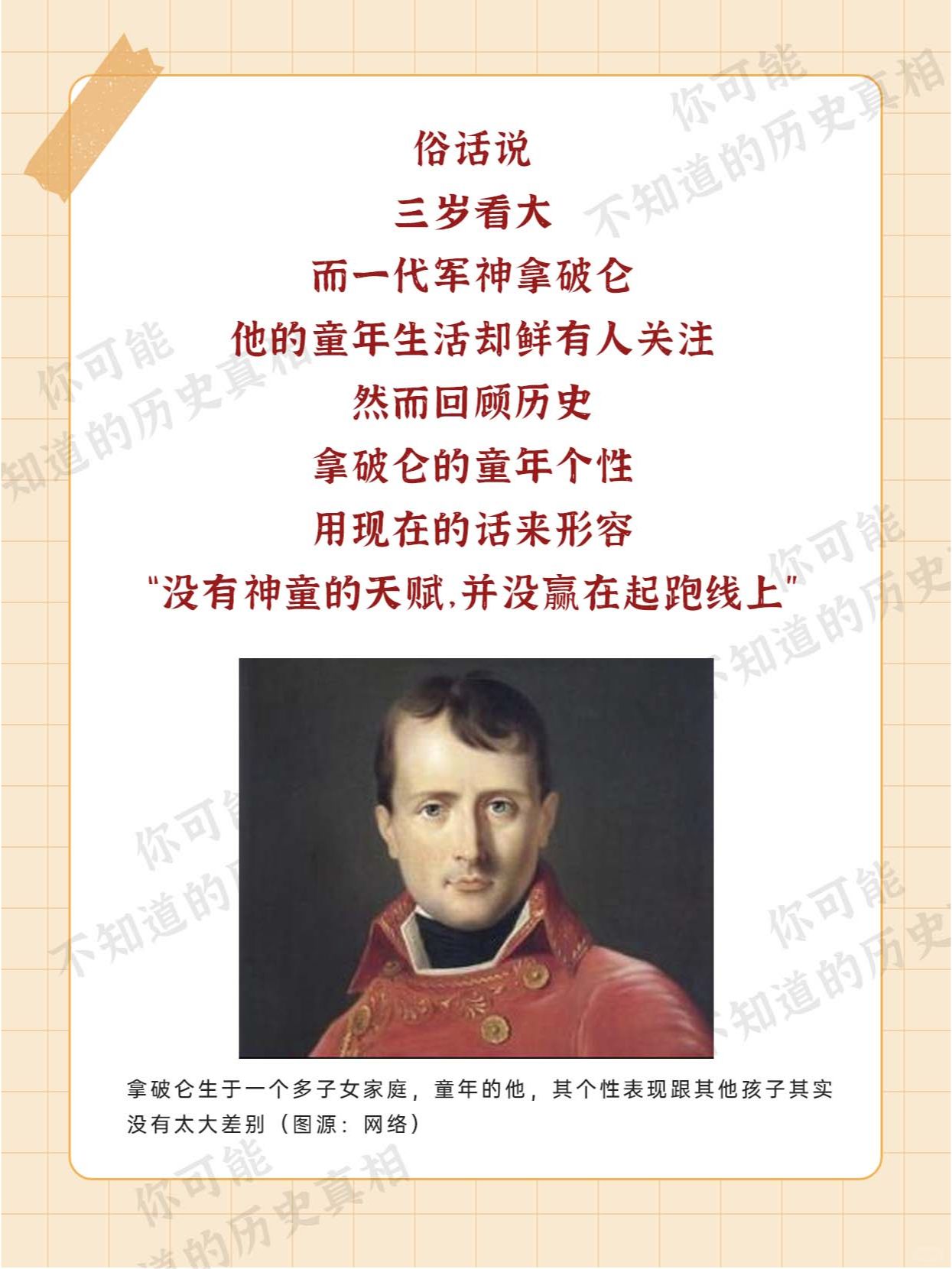 [微笑R][微笑R][微笑R] 每个人都有自己的他童年 那么 [doge][doge][doge] 一代军神拿破仑 他的童年 又是怎样的个性呢? [再见R][再见R][再见R]
