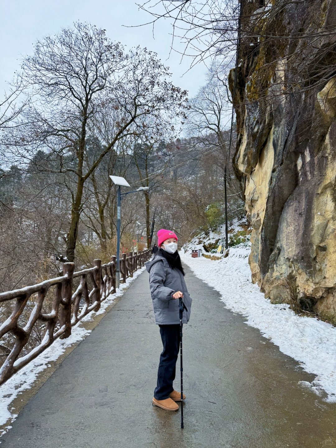 ✅景区把道路上的雪❄️已经清扫🧹到两边啦,徒步比较好一些~