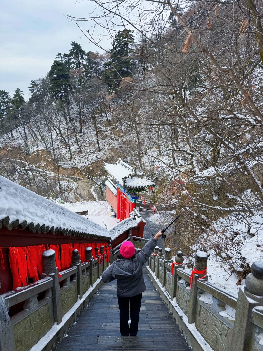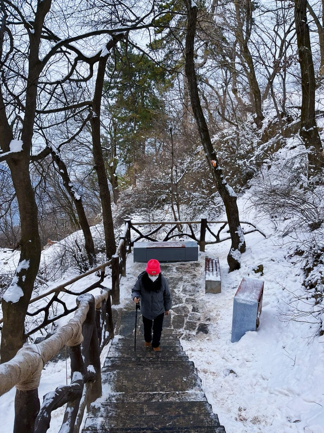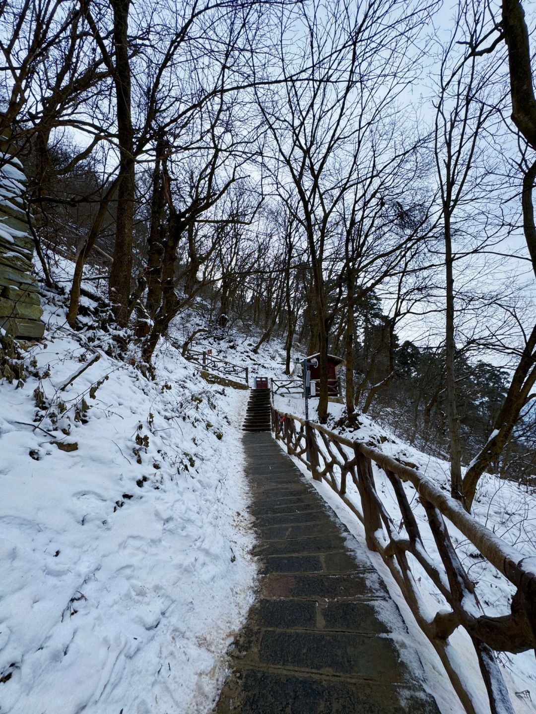 2、下山要小心一些,有些地方的台阶窄一些,走中间,旁边的地方还有积雪,小心脚下湿滑~