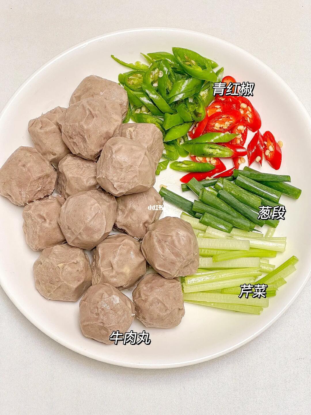 牛肉丸、青红、芹菜、葱段
