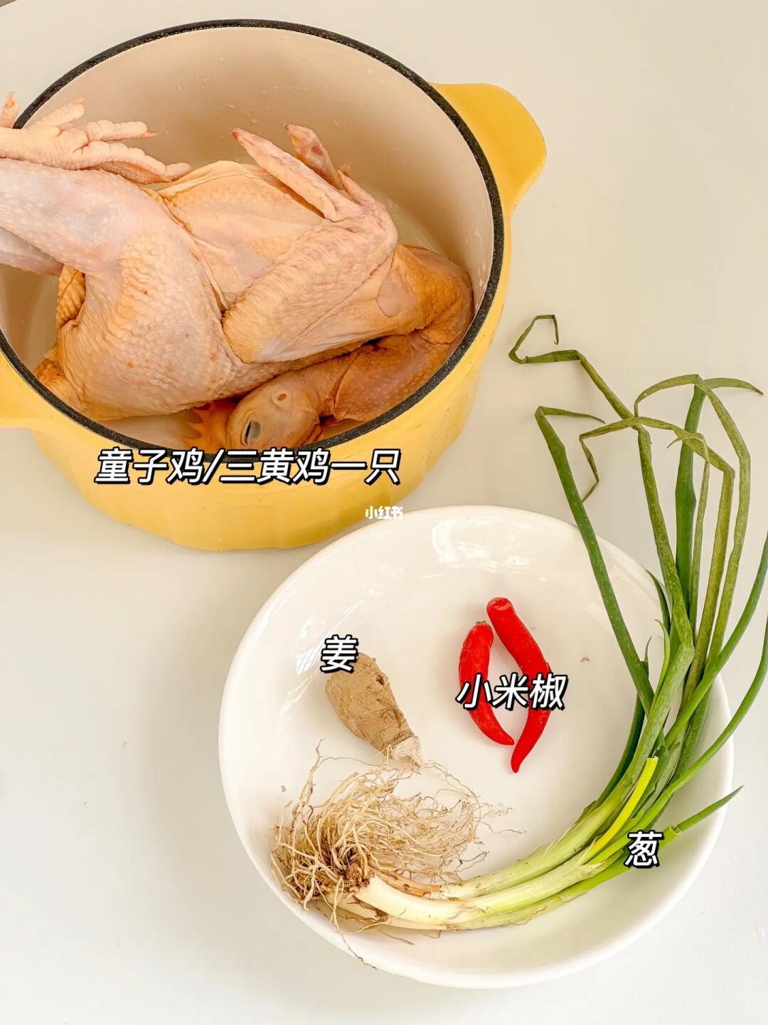 童子鸡/三黄鸡1只、葱、姜、小米辣