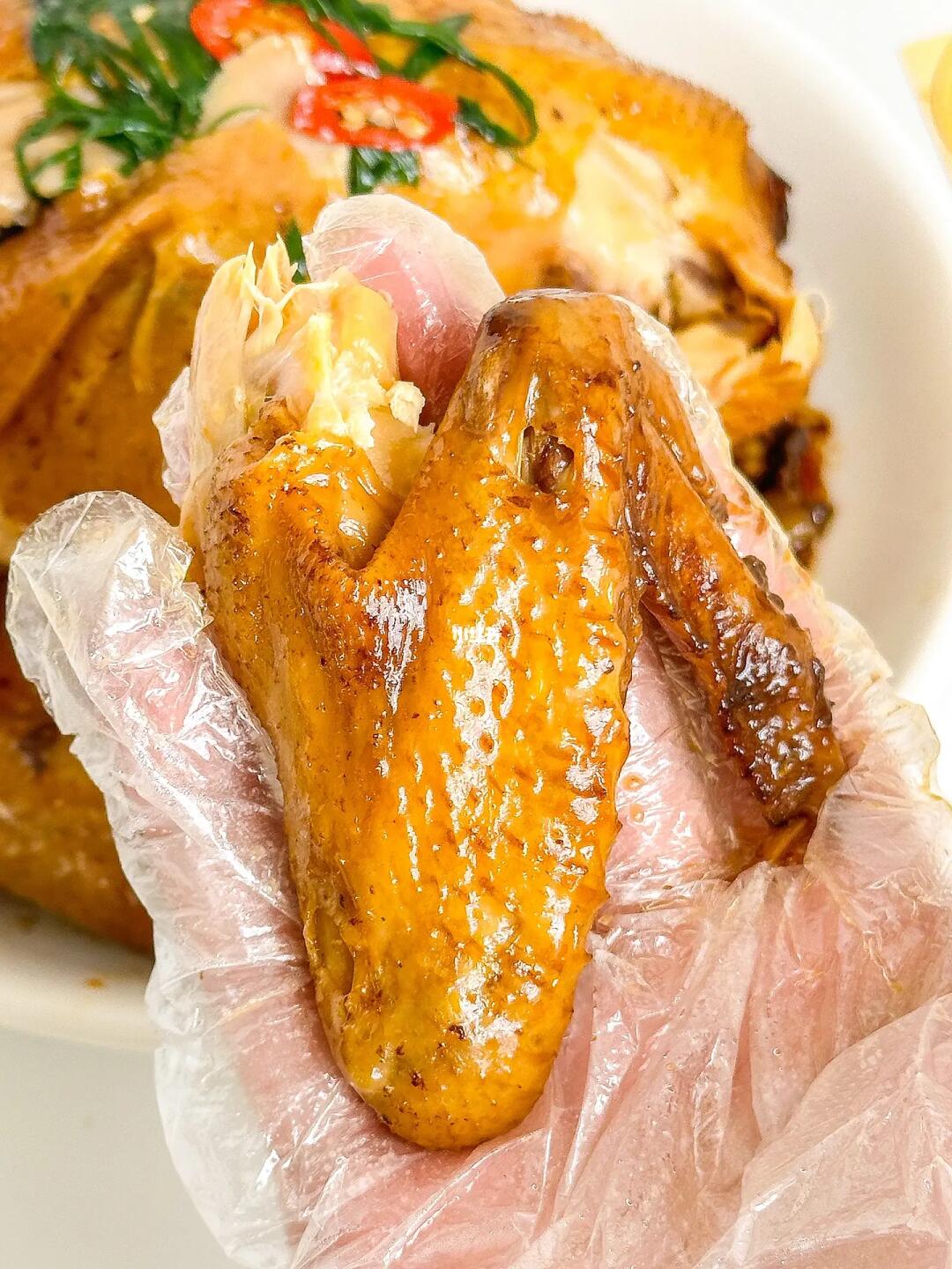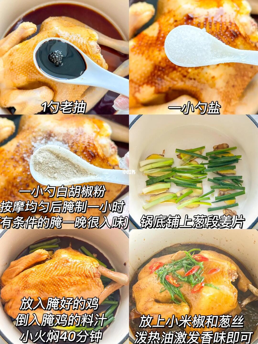 2、鸡加3勺料酒、3勺生抽、1勺老抽、一小勺盐和一小勺白胡椒粉,深度按摩后腌制一小时(有时间的腌一晚更入味)
