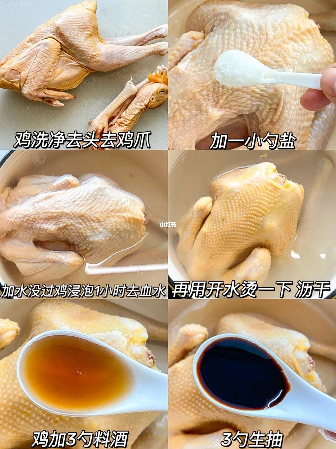 1、鸡洗净去头去鸡爪,加一小勺盐,加水没过鸡浸泡1小时去血水,再用开水烫一下