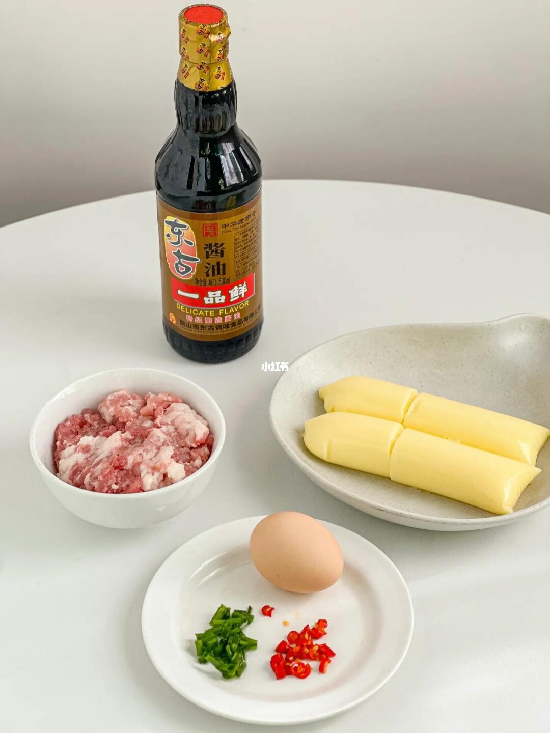猪肉末、玉子豆腐、鸡蛋、葱、小米椒