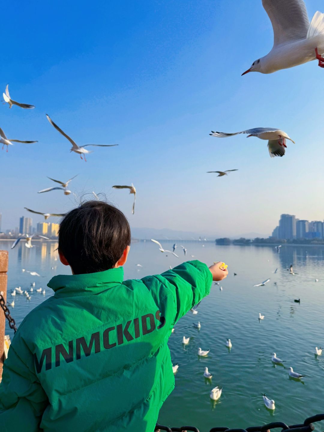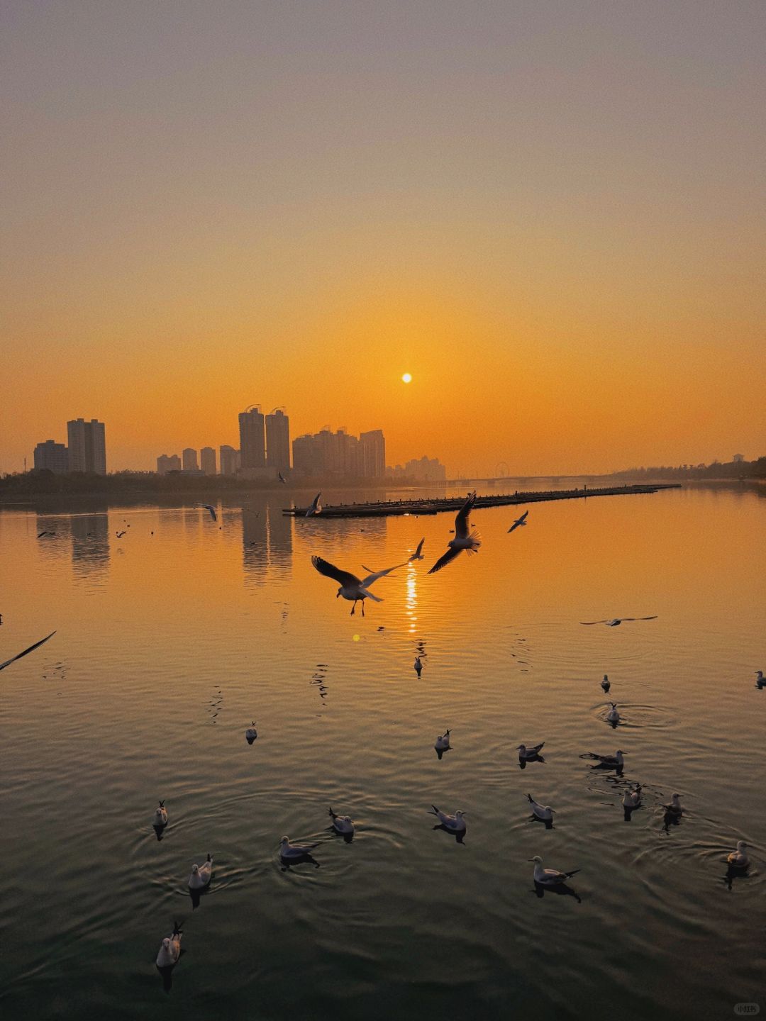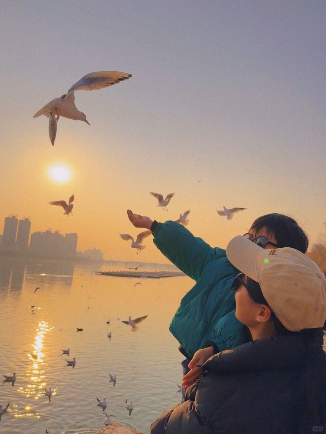 不用去威海喂海鸥,陕西也可以喂海鸥啦! 每年冬天❄️,来自西伯利亚的海鸥都会在此过冬,场面很是壮观! 📍汉江音乐喷泉 (打车🚖或开车🚗都可,目的地有停车位) ✅喂海鸥的边上就有卖面包🍞点心🥧之类的 (3r/份)很方便~ ✅我们到达目的地是下午4点左右,海鸥很多~ 还碰上了美美的日落🌄~ ✅江边有志愿者专门为游客吸引海鸥~ ✔️带娃去吃了番茄🍅鱼,逛了前进路夜市~逃离西安有了不一样的体验~ 今天的分享就到这里,㊗️大家玩的开心…… 注意‼️这边天气比西安暖和,要想拍照📷好看可以穿大衣哈~