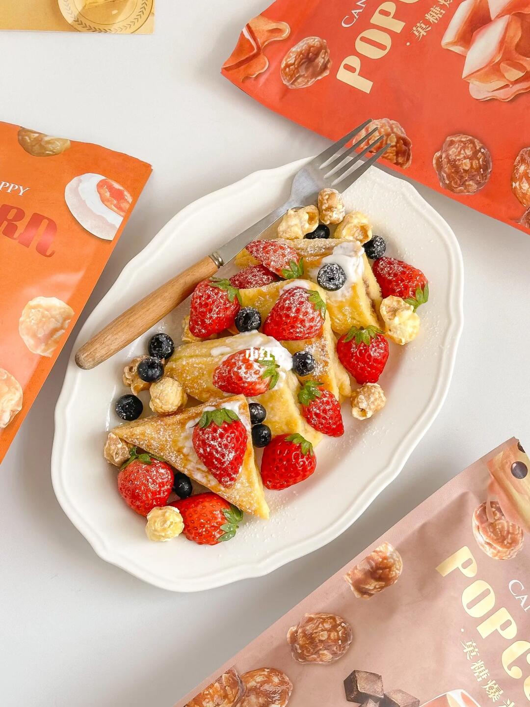 今天这份早餐真的是高颜值!!黄油煎出来的吐司奶香浓郁,松软香甜!搭配上草莓、蓝莓、爆米花和酸奶真的太满足了,营养美味还低卡‼️