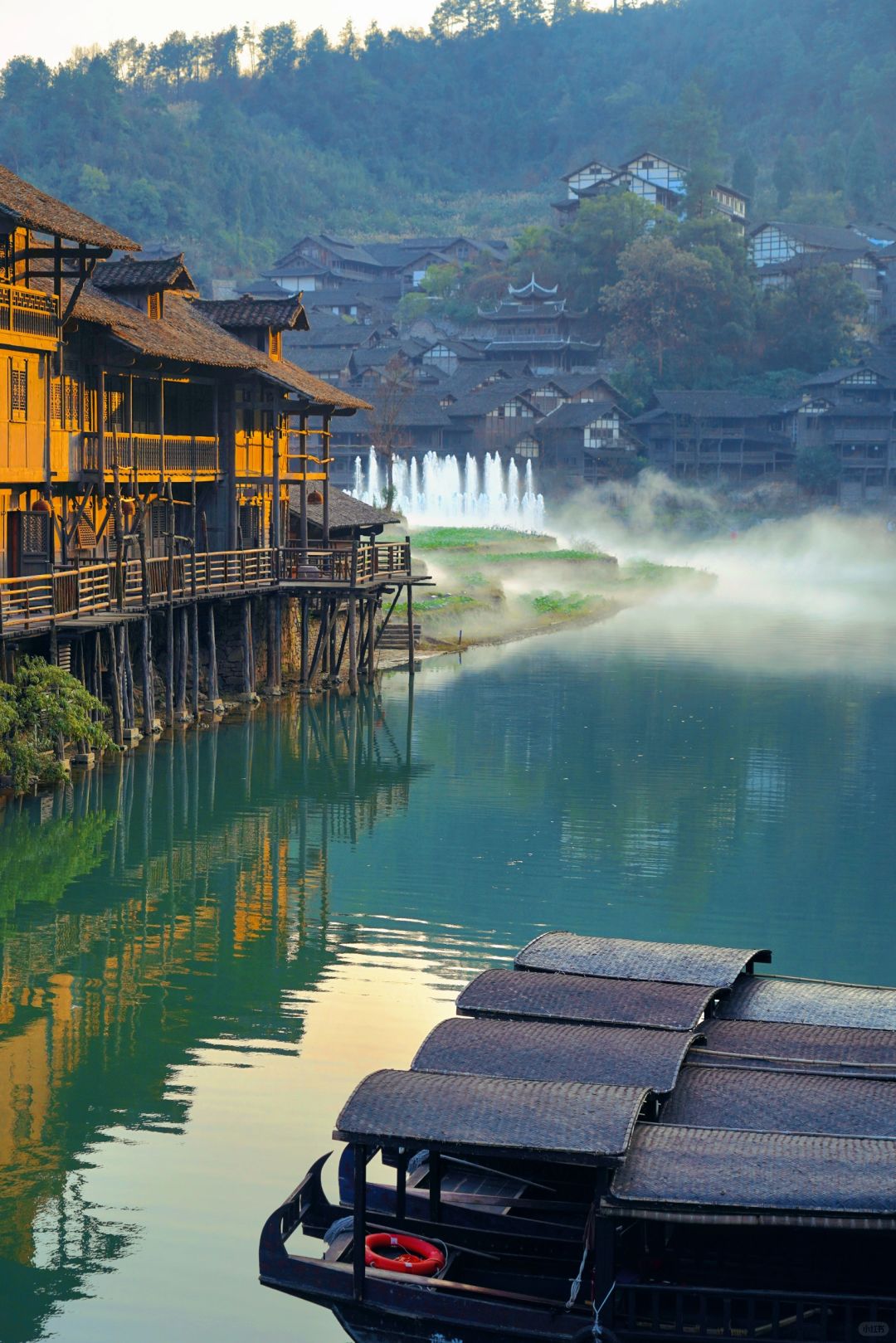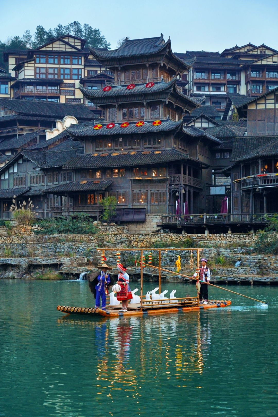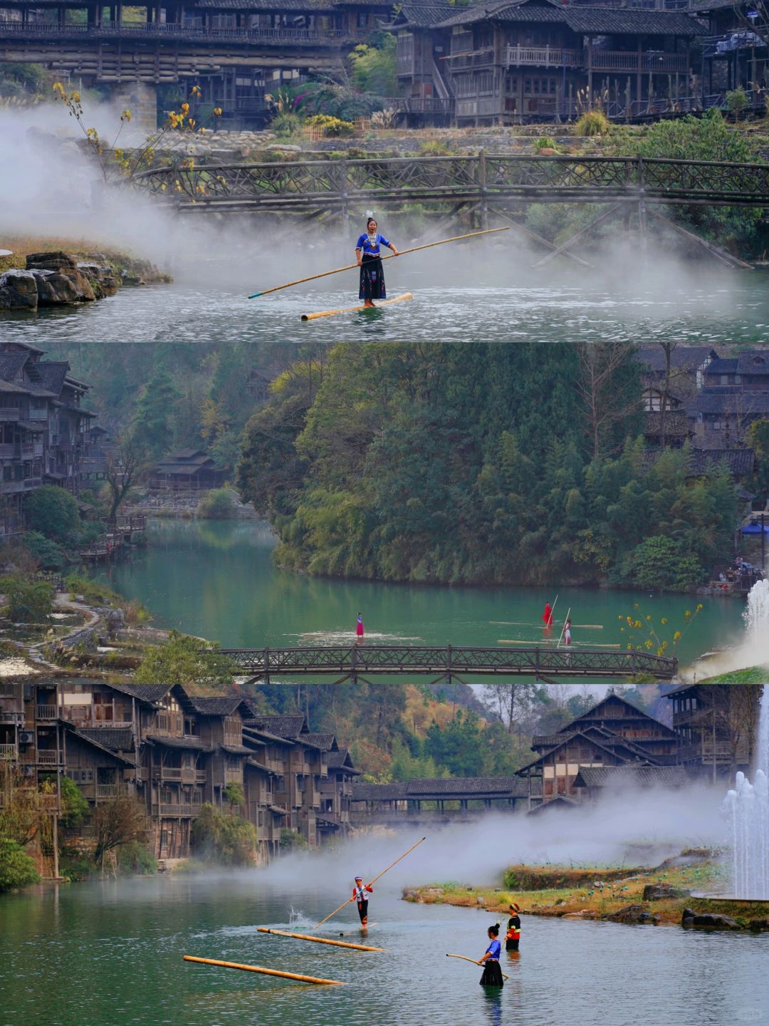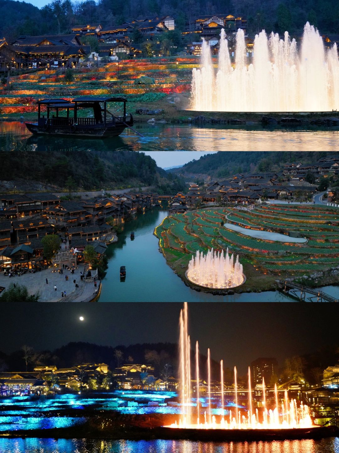 清晨,乘一叶扁舟从水路开始丈量 随着船夫摇橹推出的水波阵阵涟漪 我也渐次翻开了乌江寨这副画卷 远处江面上,是踏波而行的独竹漂 冬日里的乌江寨,虽有几分寒冷 却因围炉冬歌而有了不一样的热情 非洲鼓巡游、民族打击乐、乐队演出…… 当爵士电音,遇上少数民族山歌 又会碰撞出怎样的音乐灵感呢? - 【2天1夜这样玩】 Day1:遵义➠ 乌江寨➠ 独竹漂表演➠ 廻龙岛围炉冬歌大舞台看节目➠ 吊锅宴➠ 掌灯仪式➠ 音乐水舞秀和无人机表演➠ 火舞秀➠ 篝火电音派对 Day 2:游船➠ 体验花草纸、扎染、竹编花灯、通草堆画➠ 围炉煮茶➠ 返程 - 【冬季限定游玩项目】 🫖陶罐烤奶茶:一群朋友围着炉火,煮上一壶暖暖的奶茶,一边喝奶茶一边听脱口秀演员讲段子,幸运的话还能遇上民族弹唱,那就更有趣啦! 🎶 乐队演出:不同风格的乐队,带来了不同的音乐。逛到廻龙岛,围炉煮茶听听歌,感受一下音乐带来的热情。 【冬季限定特色餐饮】 🔸吊锅宴: 古戏台前的吊锅宴,一排排吊锅煮着的酸汤火锅沸腾着。四方游客齐聚在此,一边享受着美食,一边参与着少数民族的竹竿舞、和那独具特色的饮酒习俗,感受着少数民族的热情 🔸龙虎斗茶艺:夜幕降临,民谣酒吧前的空地上,围炉煮茶聊着趣事,还能将乌江寨的夜景一览无遗。 在这儿还能看到纳西族的龙虎斗,当冷酒与热茶相遇时,那悦耳的响声寓意着吉祥,一口酒、一口茶…迷醉在这朦胧夜色里 - 【景区指引】 📍贵州省遵义市播州区尚嵇镇乌江寨国际旅游度假区 🎟日游票(9:00-16:00)80r;夜游票(16:00-22:00)120r tips:入住景区旗下酒店/民宿可免门票哦