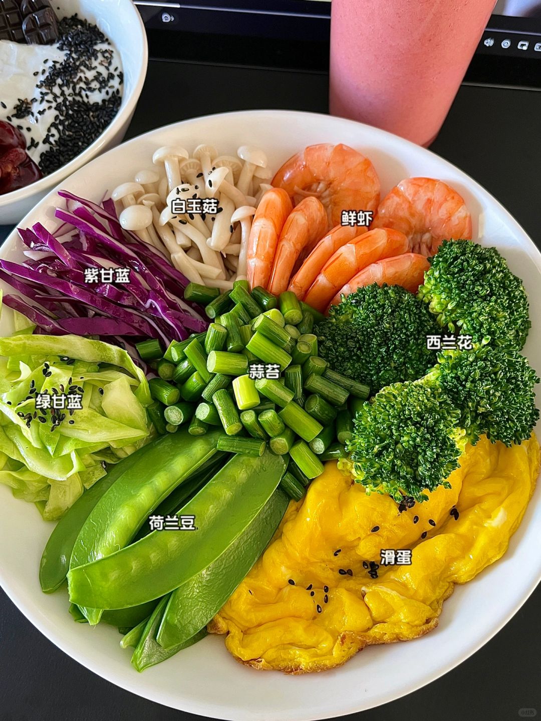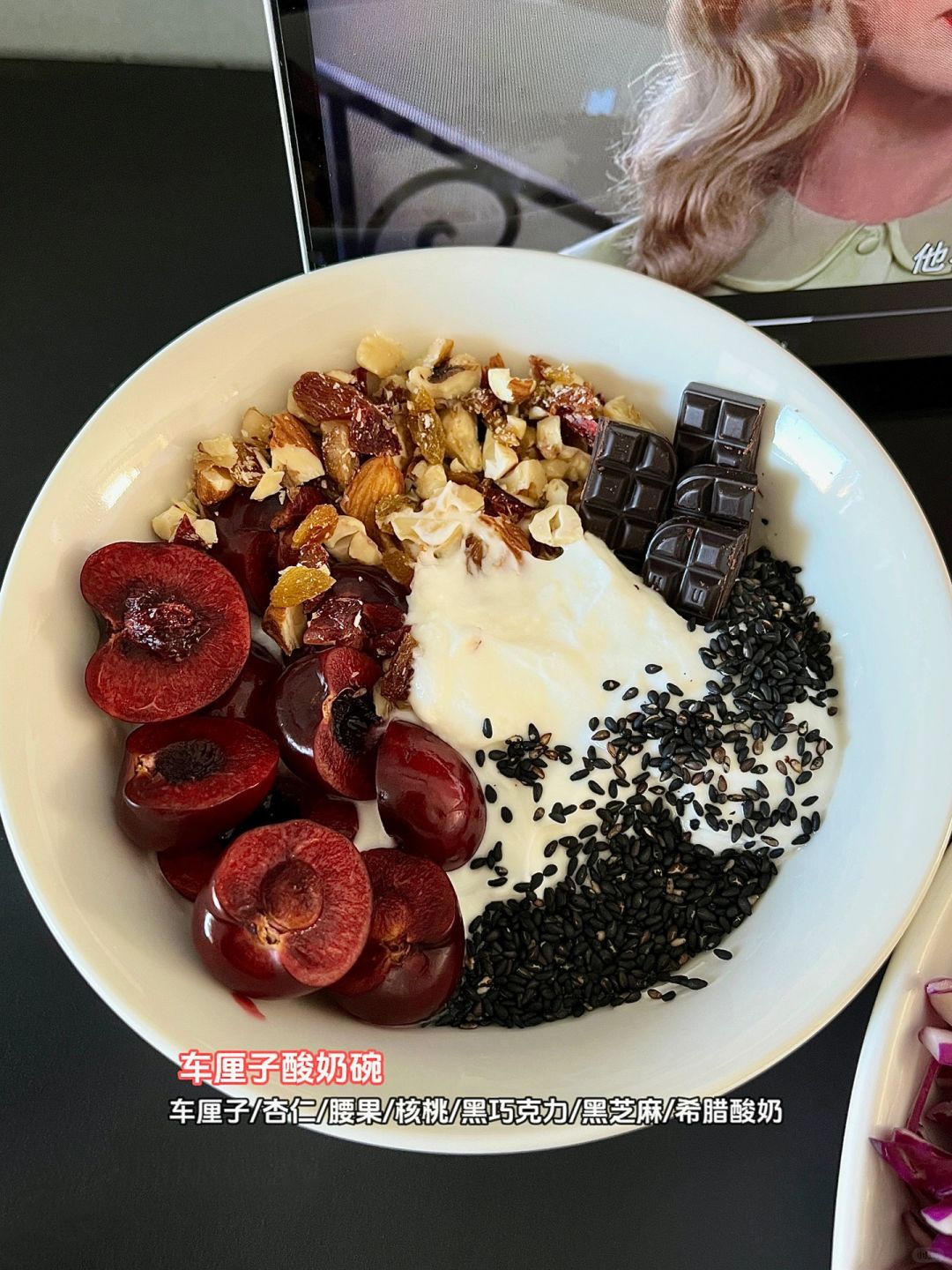 又到了吃车厘子🍒的时令啦! 快来看看车厘子除了酸甜 多汁可口😋之外还有哪些 益处和禁忌吧!👀图6 - 🏷今天早餐食物合集 🦐鲜虾/白玉菇/紫甘蓝🍳滑蛋🥦西兰花 绿甘蓝🍒车厘子/荷兰豆🍎苹果🍍菠萝 🥣希腊酸奶🍫黑巧克力/黑芝麻🌰综合坚果 -
